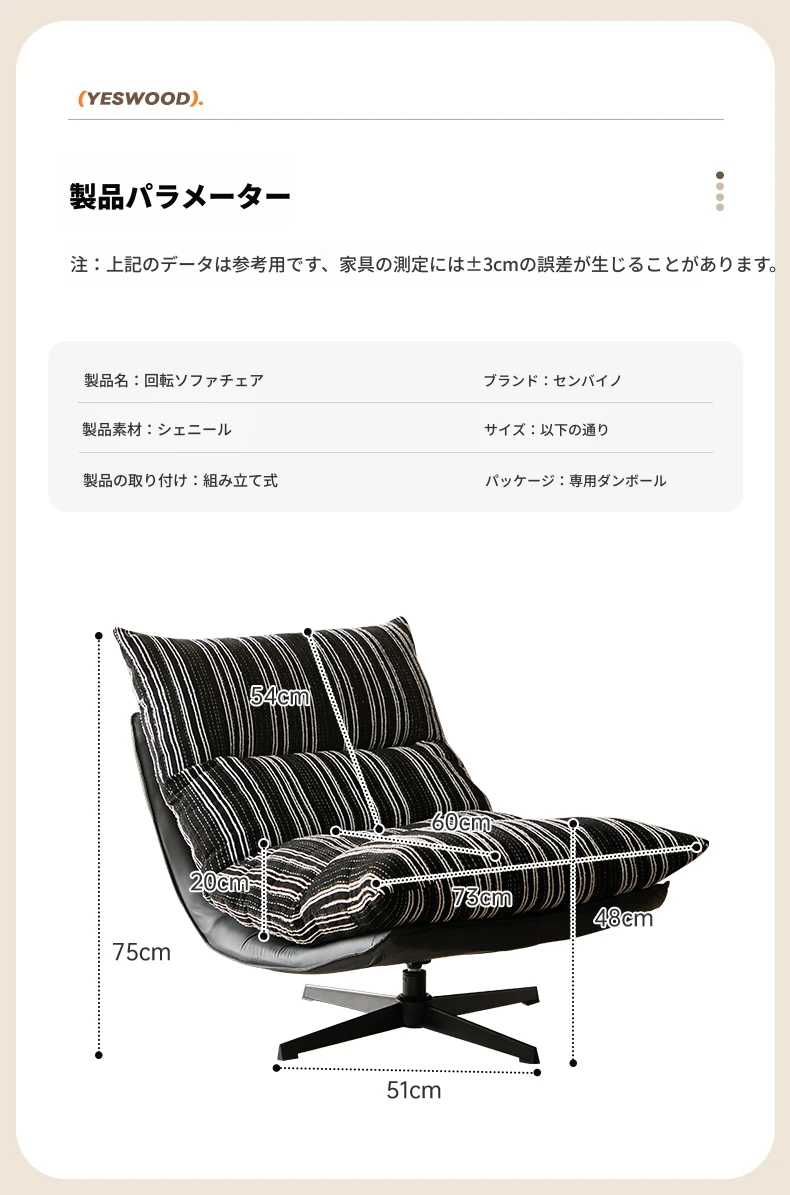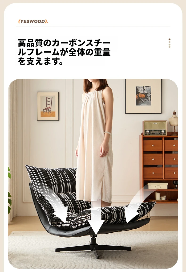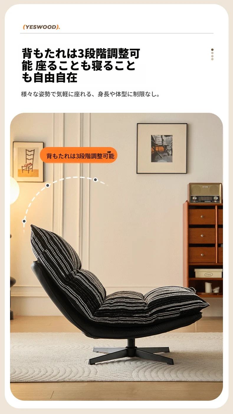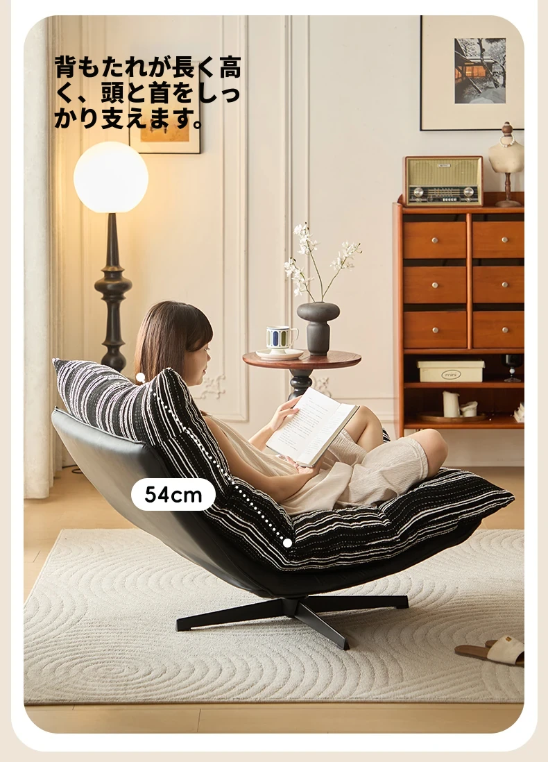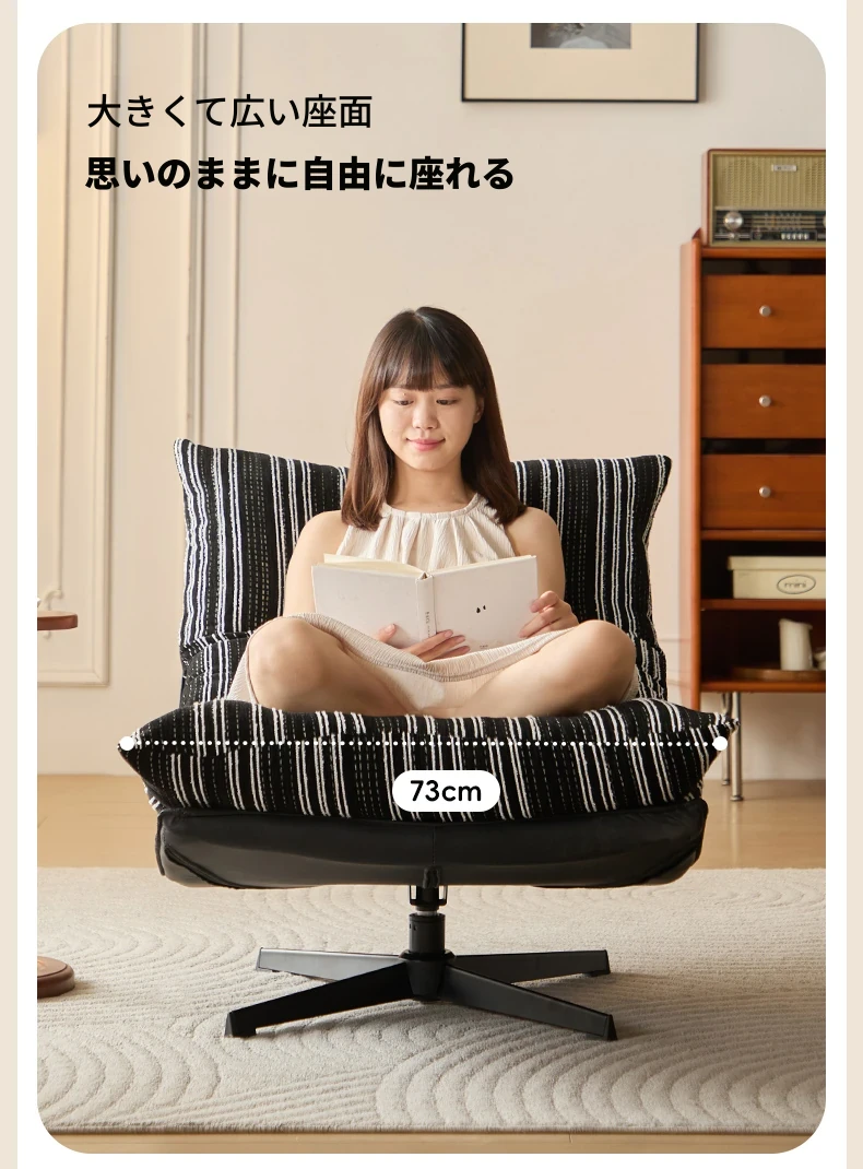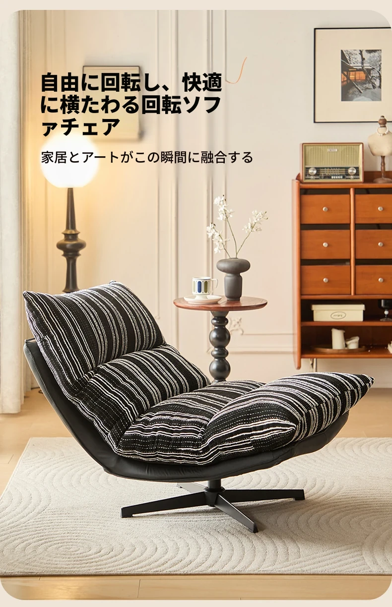 リラックスできる回転式ソファチェア - 寝室やリビングに最適な快適なレイジーチェア!一人掛けの背もたれ付きで、くつろぎのひとときを提供します。お家でのリラックス空間を演出!