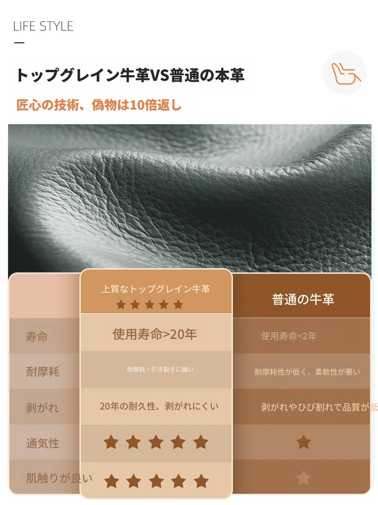 四人用-非電動機能付き-トップグレード牛革【偽物は十倍返し】