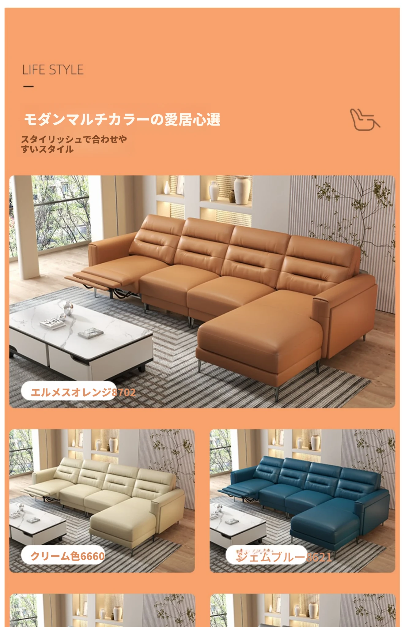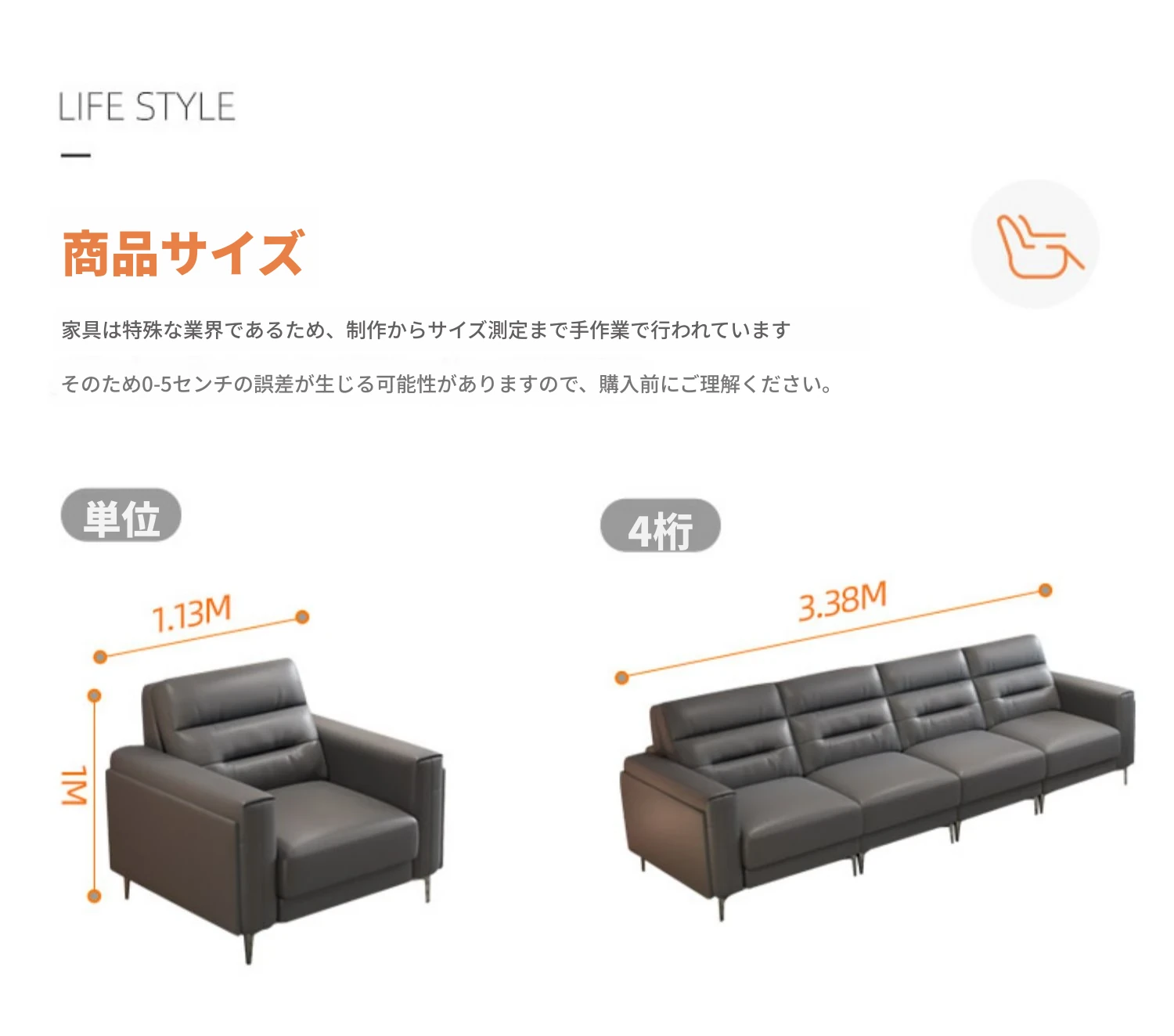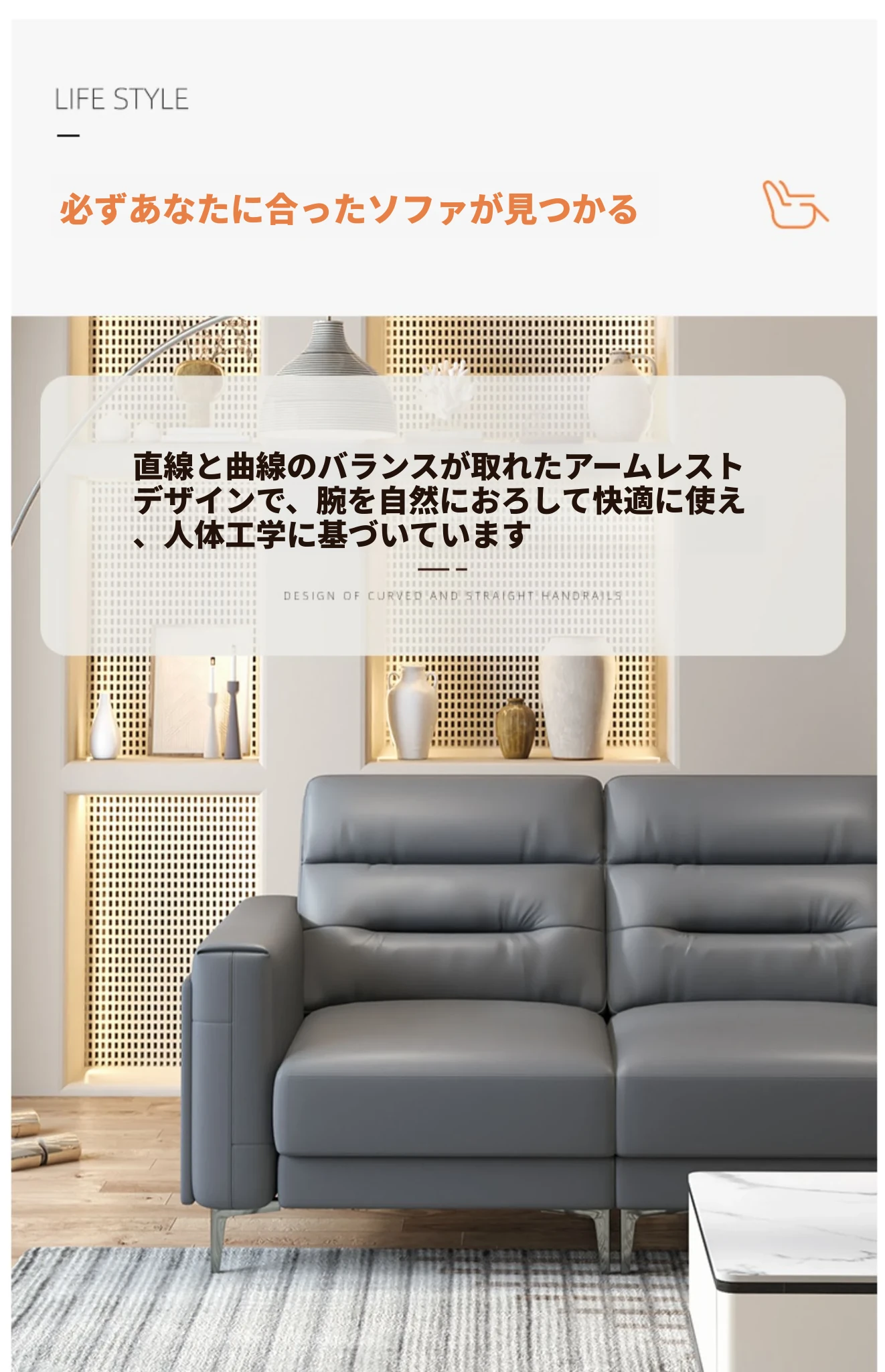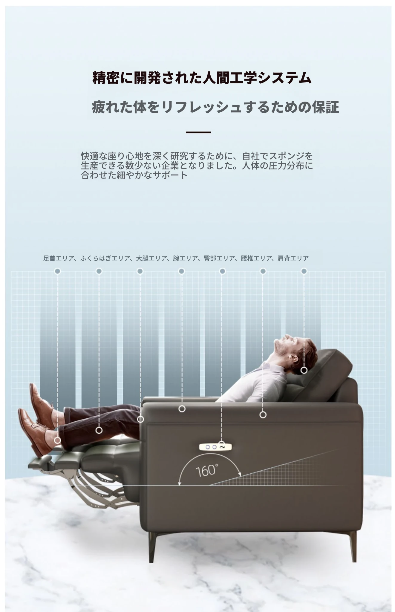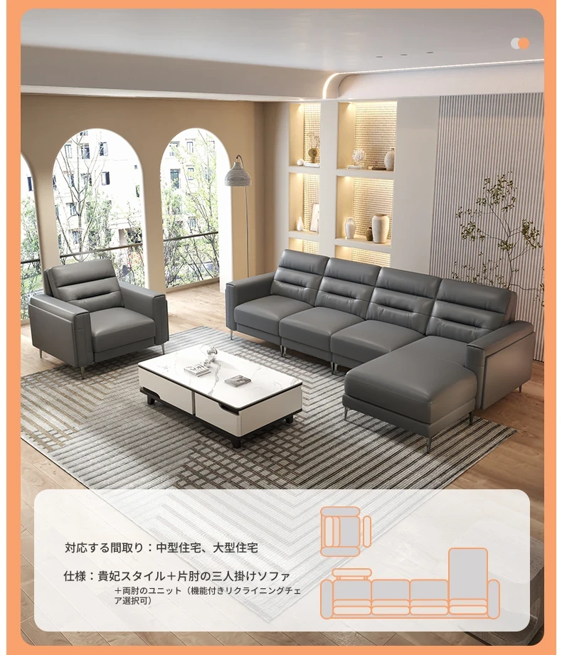 ラグジュアリーなリビングにぴったり!電動多機能ファーストクラスソファー、上質な本革(牛革)使用。どんなサイズのお部屋にも対応可能なスタイリッシュなデザインで、快適なひとときをお届けします。