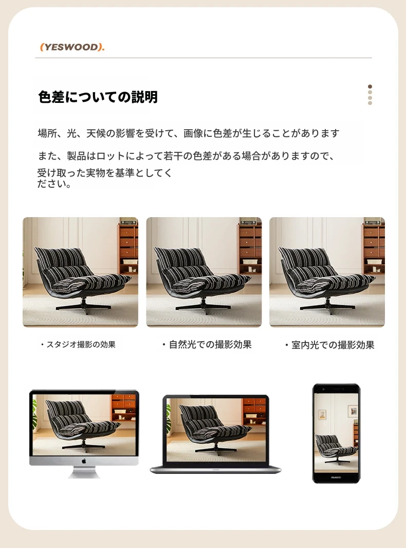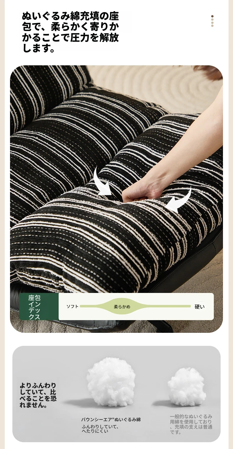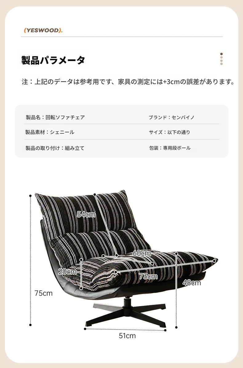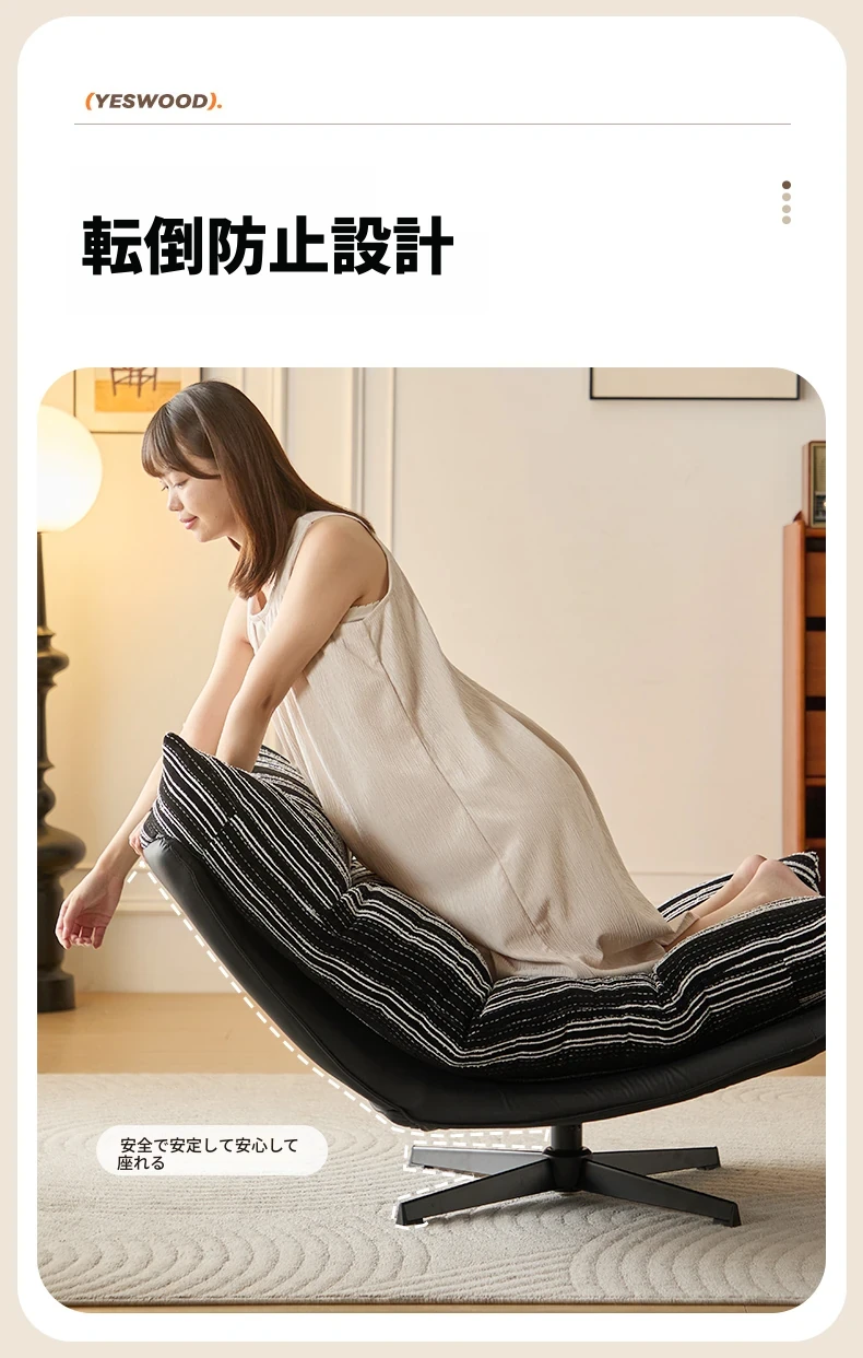 おしゃれで快適な回転式ソファチェア - リビングやバルコニーにぴったりな軽奢な一人掛け椅子。リラックスできる背もたれ付き、寝転がれるラウンジチェアで、あなたの居住空間をより魅力的に演出します。
