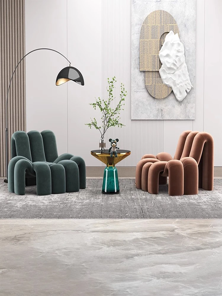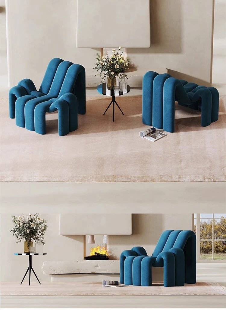 シンプルでユニークなデザインのリラックスソファ!北欧スタイルのスパイダーチェアは、客間やホテルの受付にも最適。クリエイティブな布製椅子で、快適なくつろぎの時間を提供します。