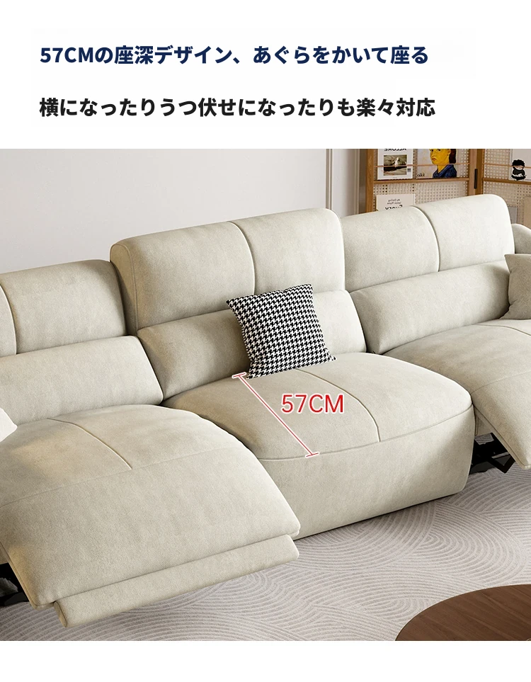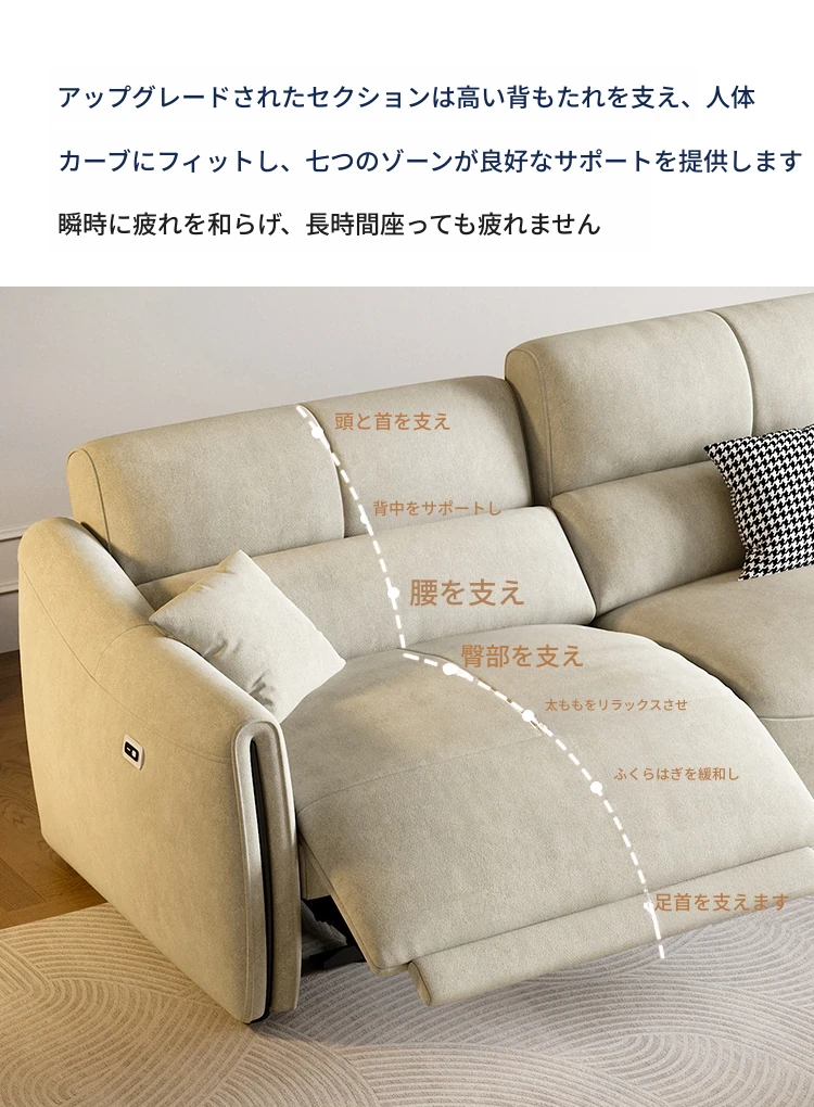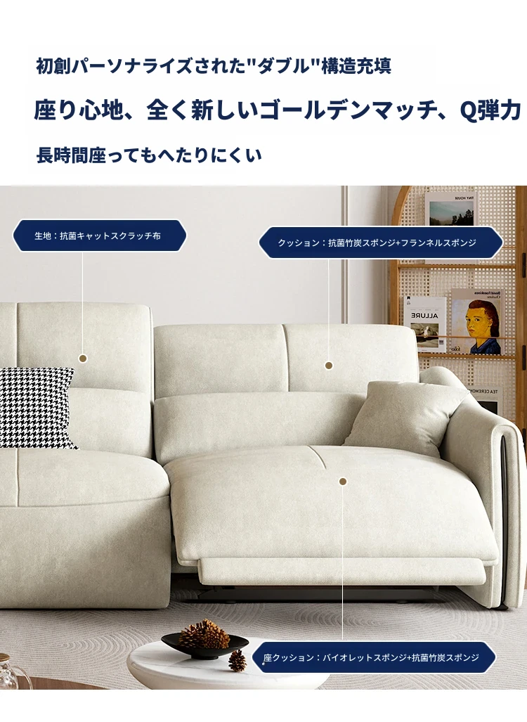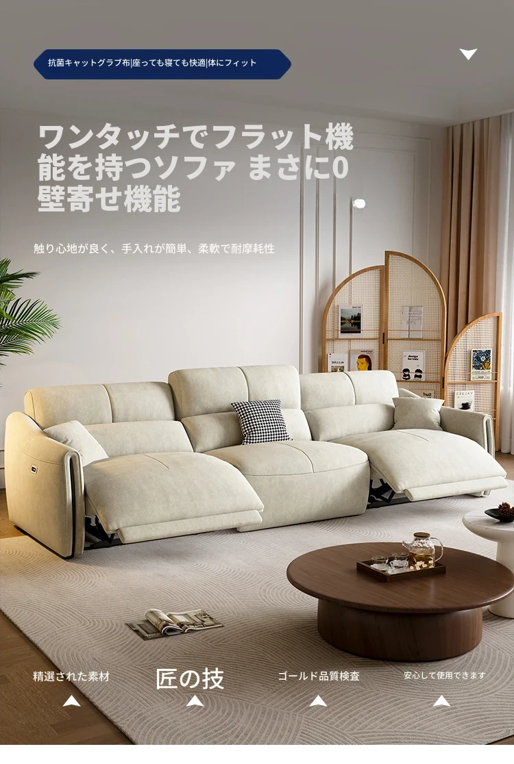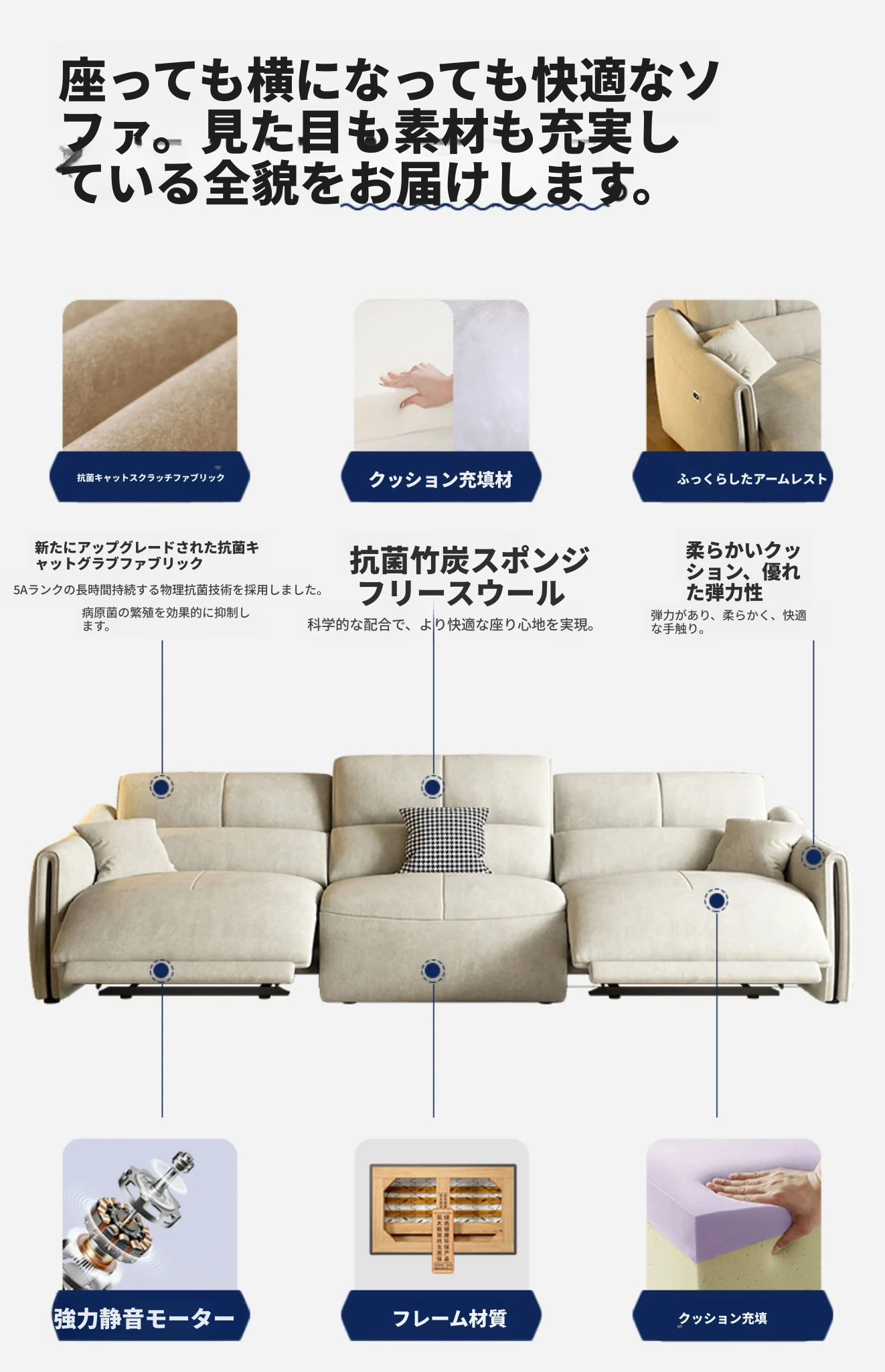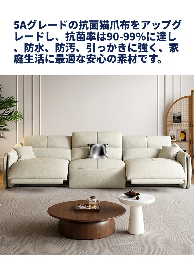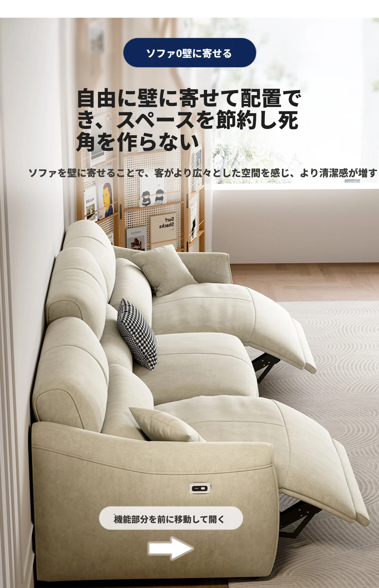 壁に寄せない電動機能付きソファ!モダンでシンプルなデザイン、小さなリビングにもピッタリ。調整可能なキャットクライミングファブリックを使用した快適なソファで、あなたのリビングをおしゃれに演出!