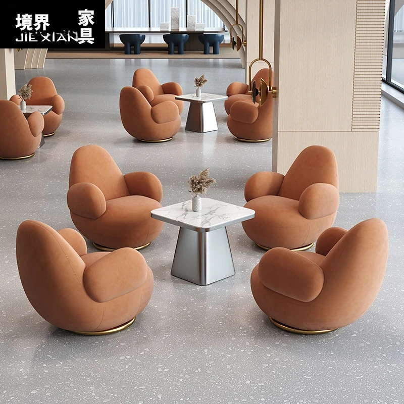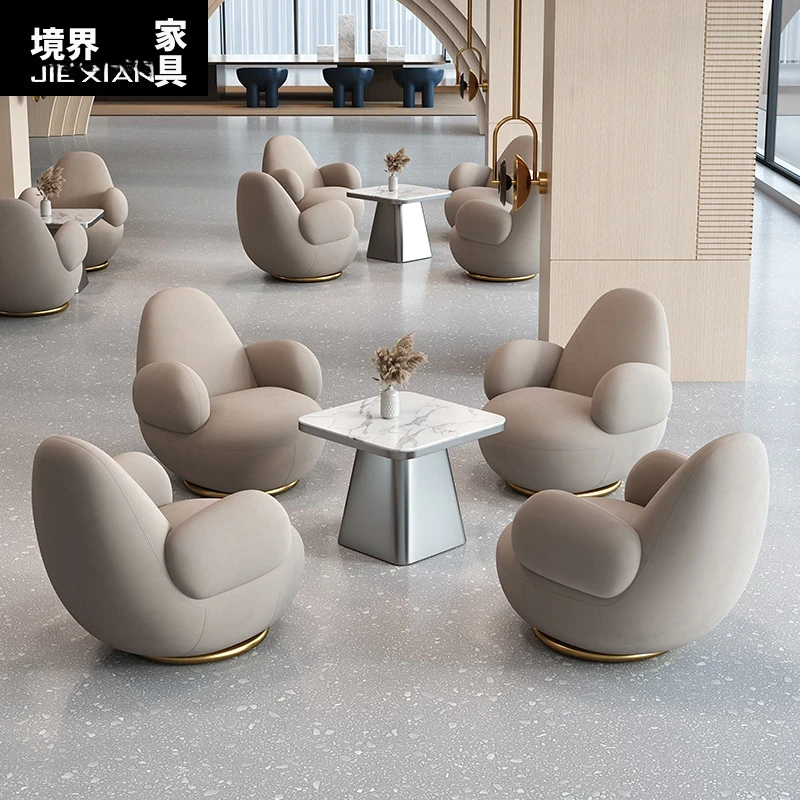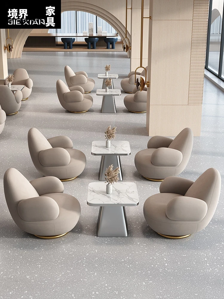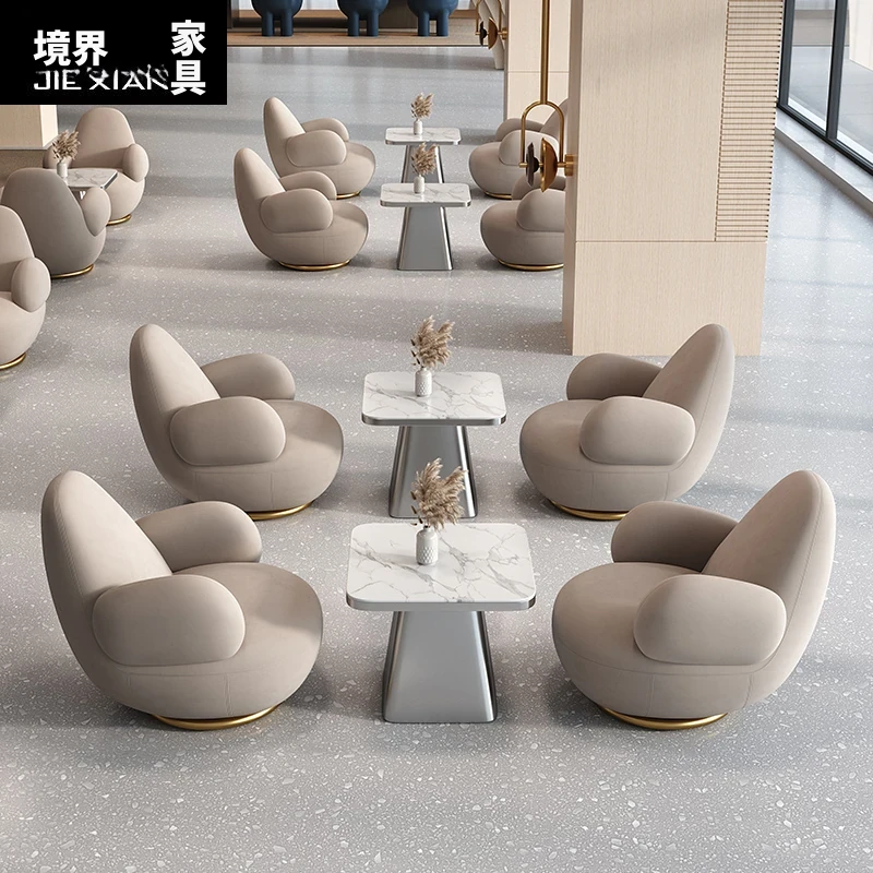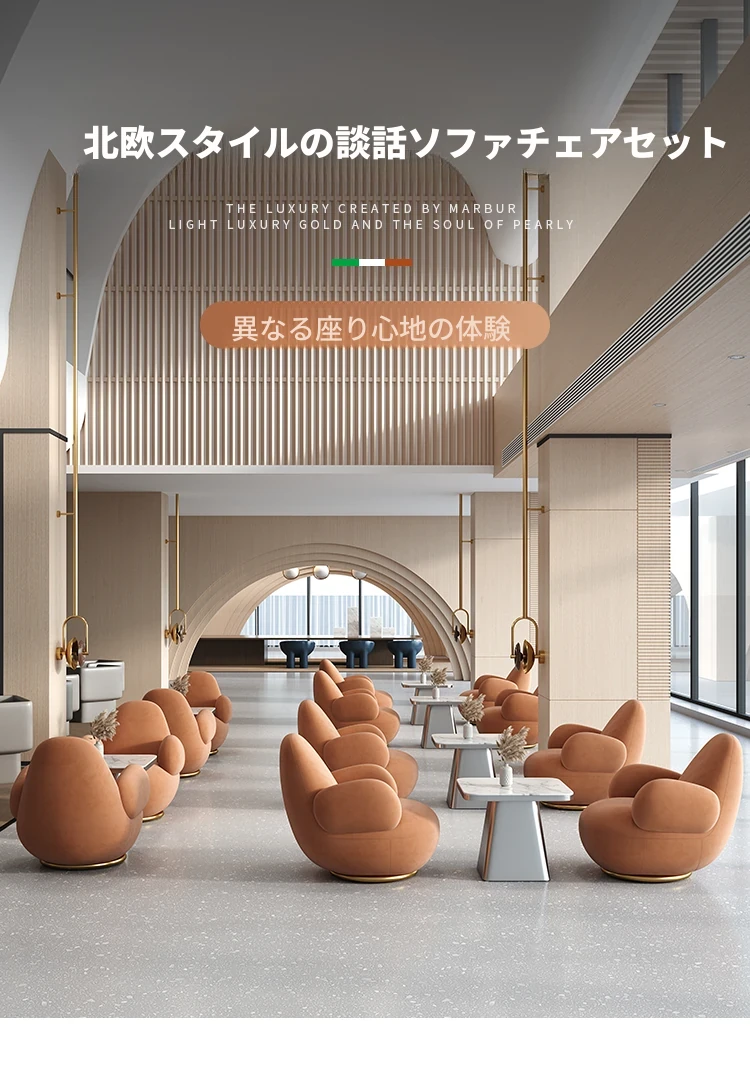 モダンでラグジュアリーなカジュアル談話スペースに最適!美容院や不動産オフィスにぴったりのテーブルと4脚の椅子のセット。おしゃれで快適な空間を演出し、商談やリラックスしたひとときを提供します。