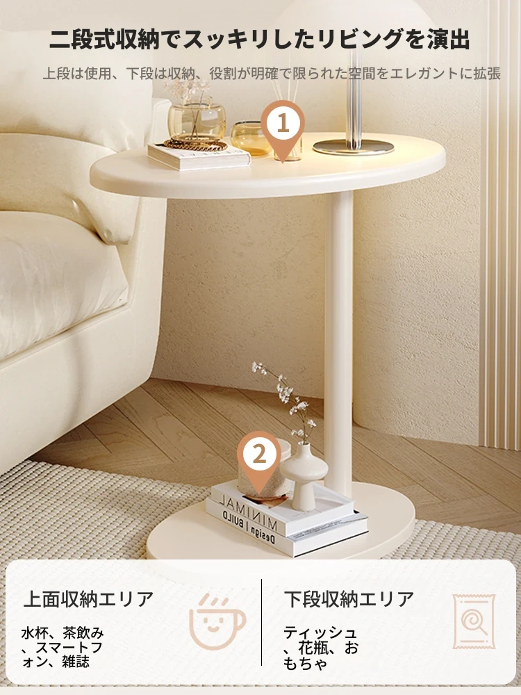 クリーム風ソファサイドキャビネット・リビングルーム用ミニテーブル・シンプルモダンなコーナーテーブル・ベッドサイドの小さなテーブルで、スタイリッシュな空間を演出!快適な暮らしを実現するおしゃれなアイテムです。