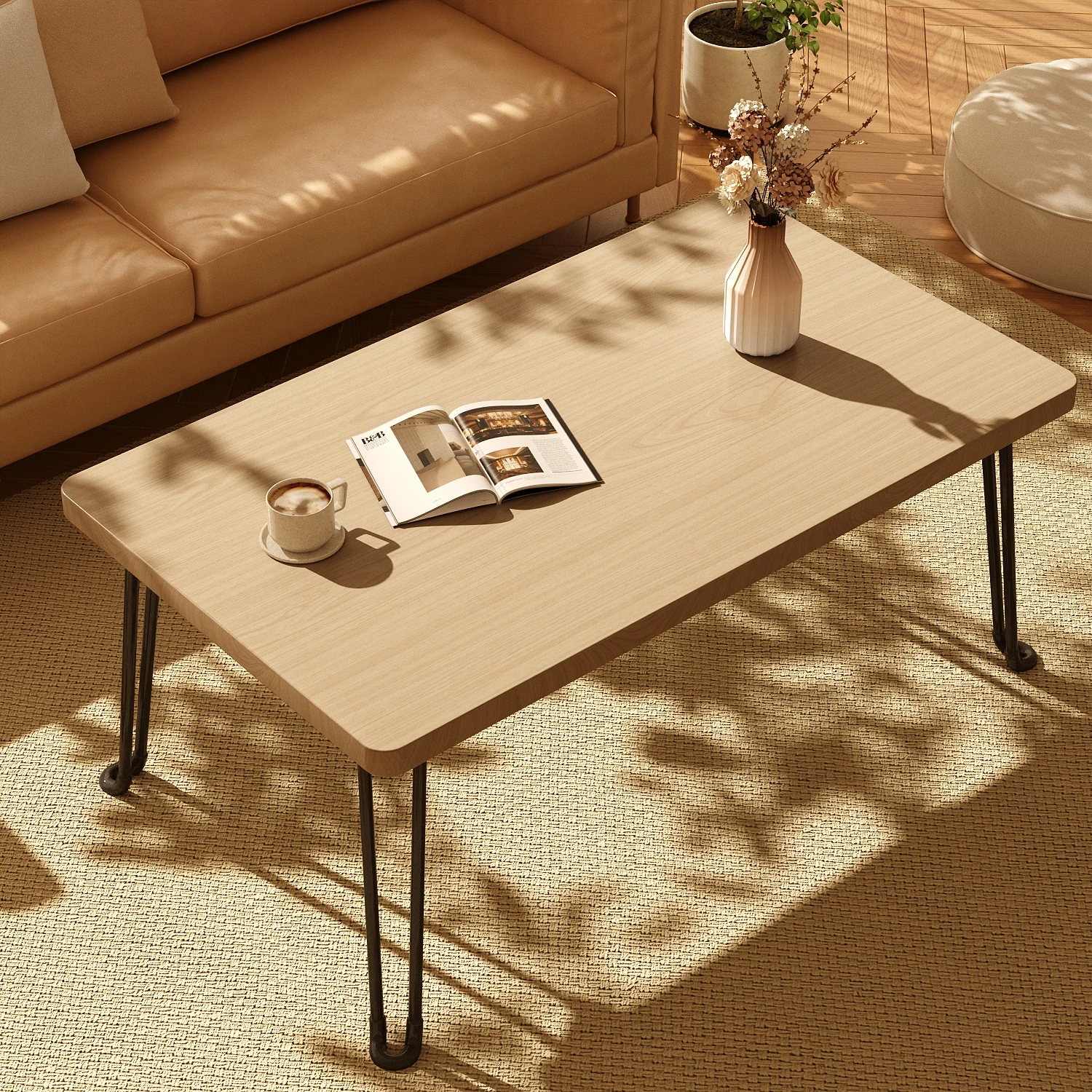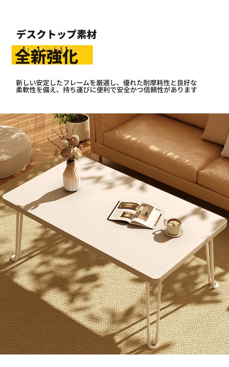 折りたたみ式モダン長方形テーブル - 小スペース向けの便利なリビング用コーヒーテーブル、持ち運び可能な新型ダイニングテーブル!おしゃれで実用的なデザインで、あなたの生活空間をより快適に!