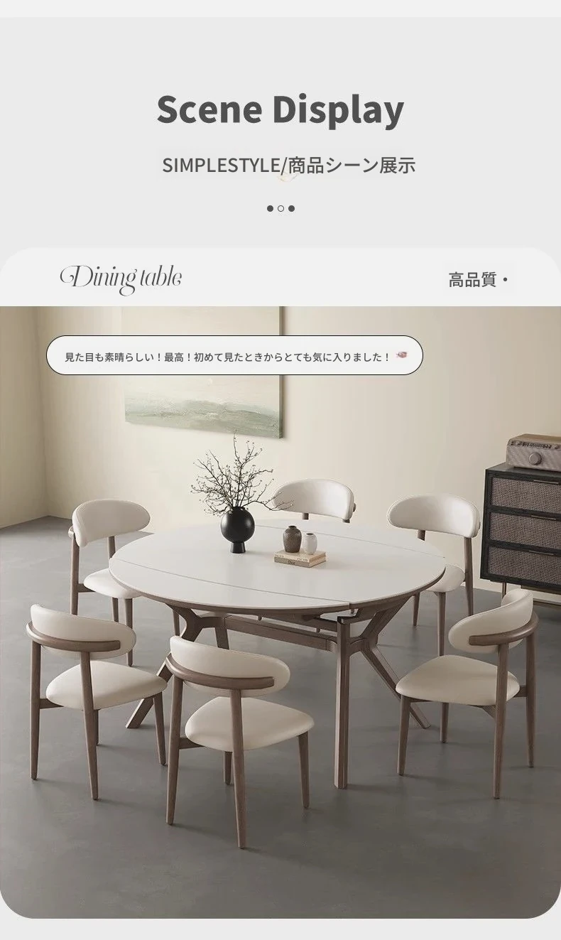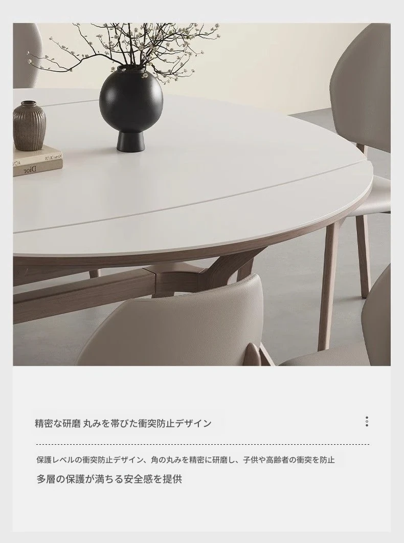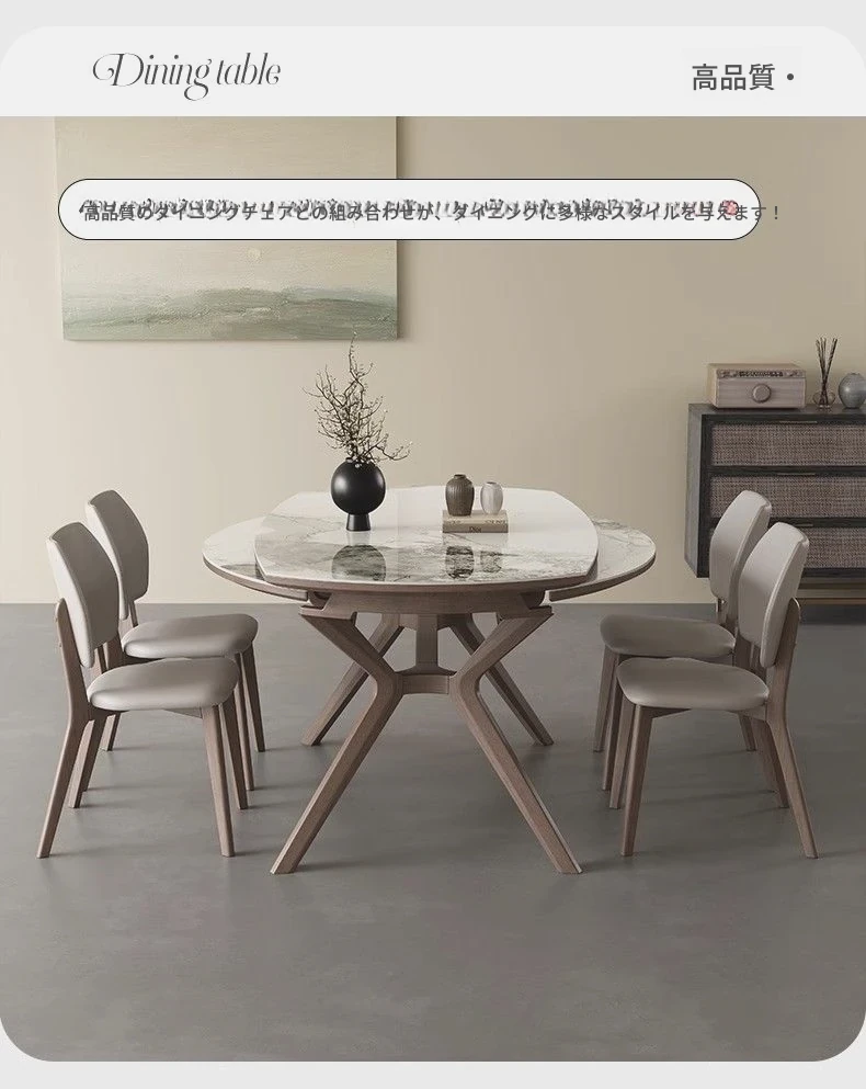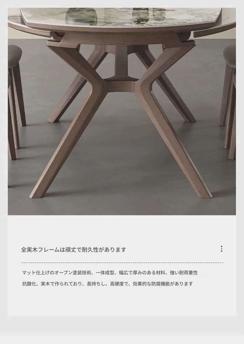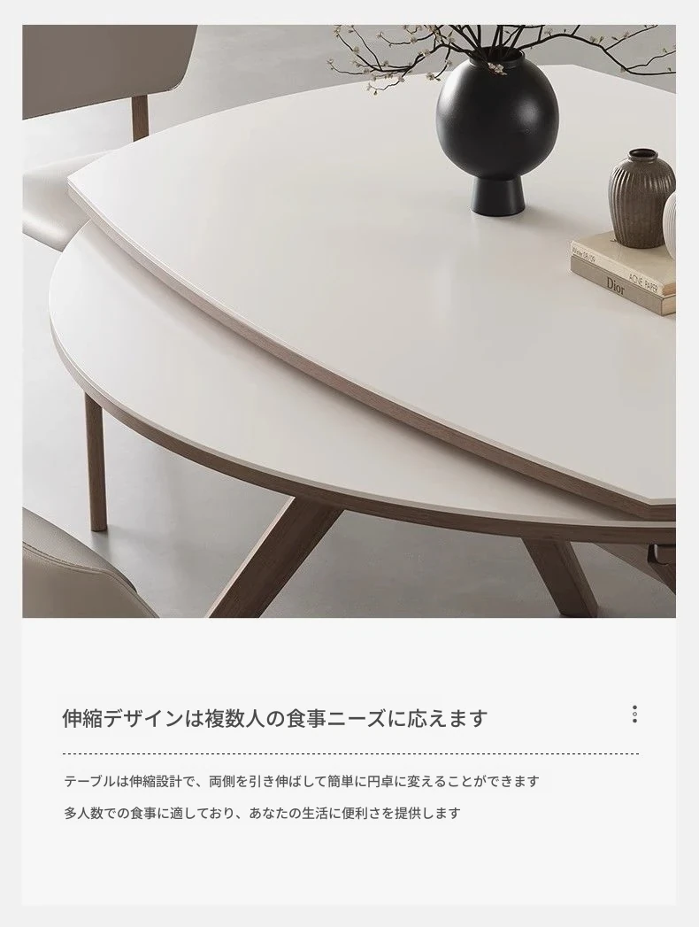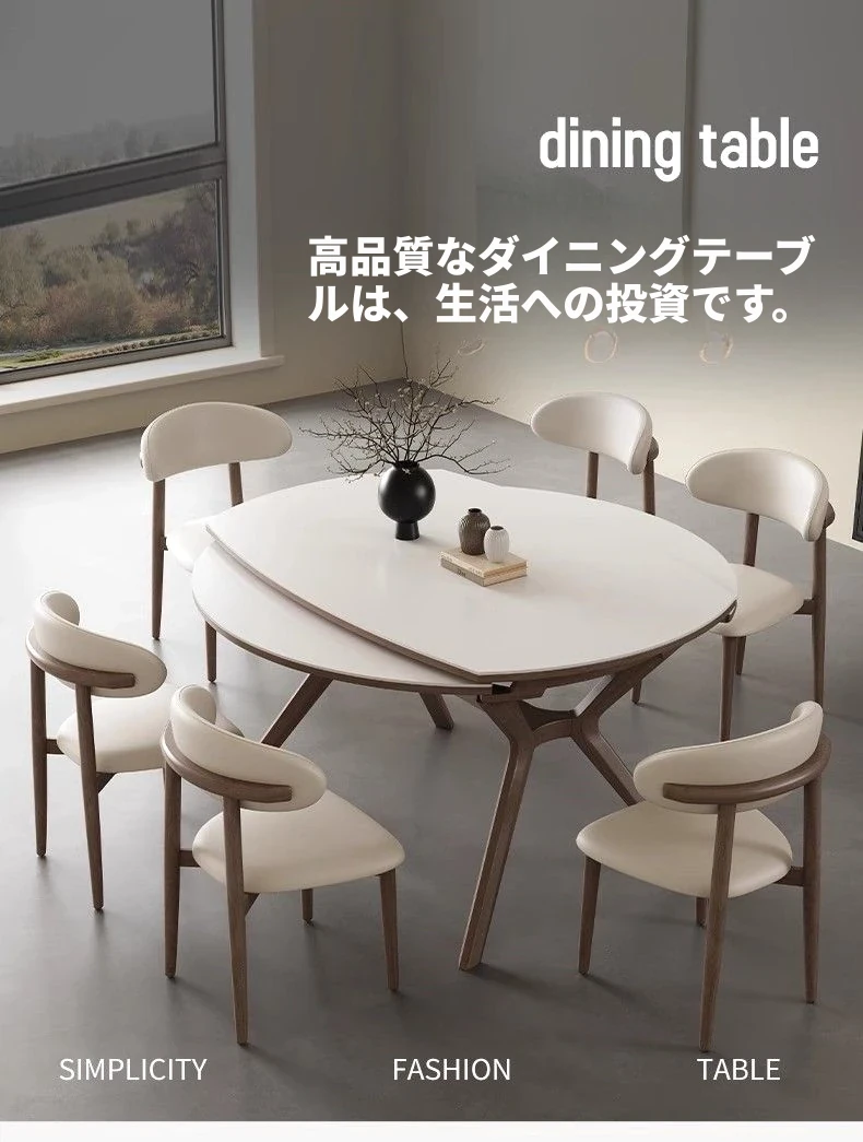 モダンミニマリストデザインの岩板ダイニングテーブルセット - 小型スペースに最適!伸縮式・折りたたみ可能で、四角と丸の2wayデザインの無垢木製テーブル。おしゃれで機能的な食卓をあなたの家に!