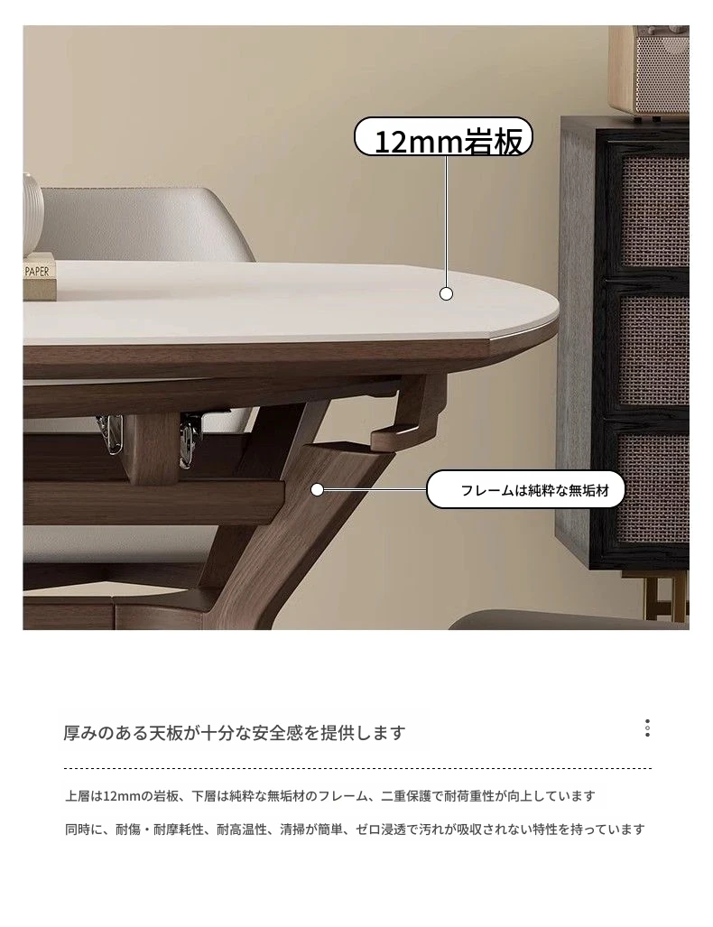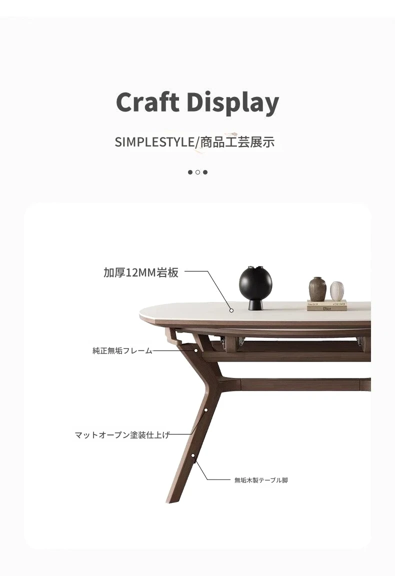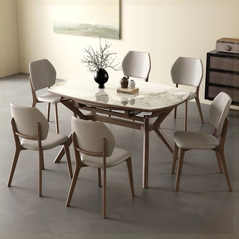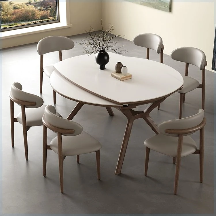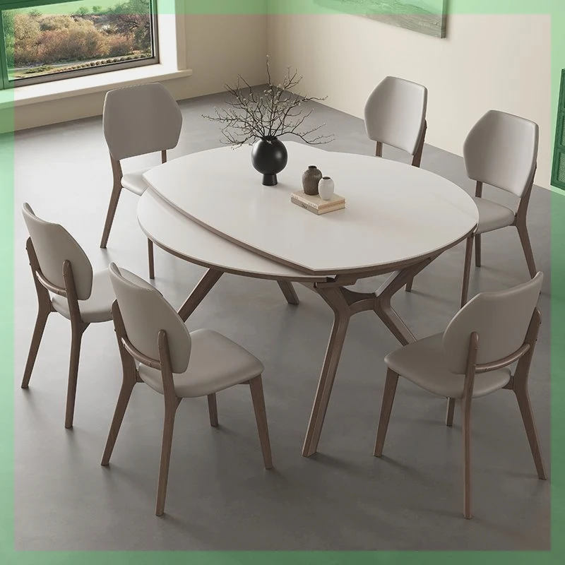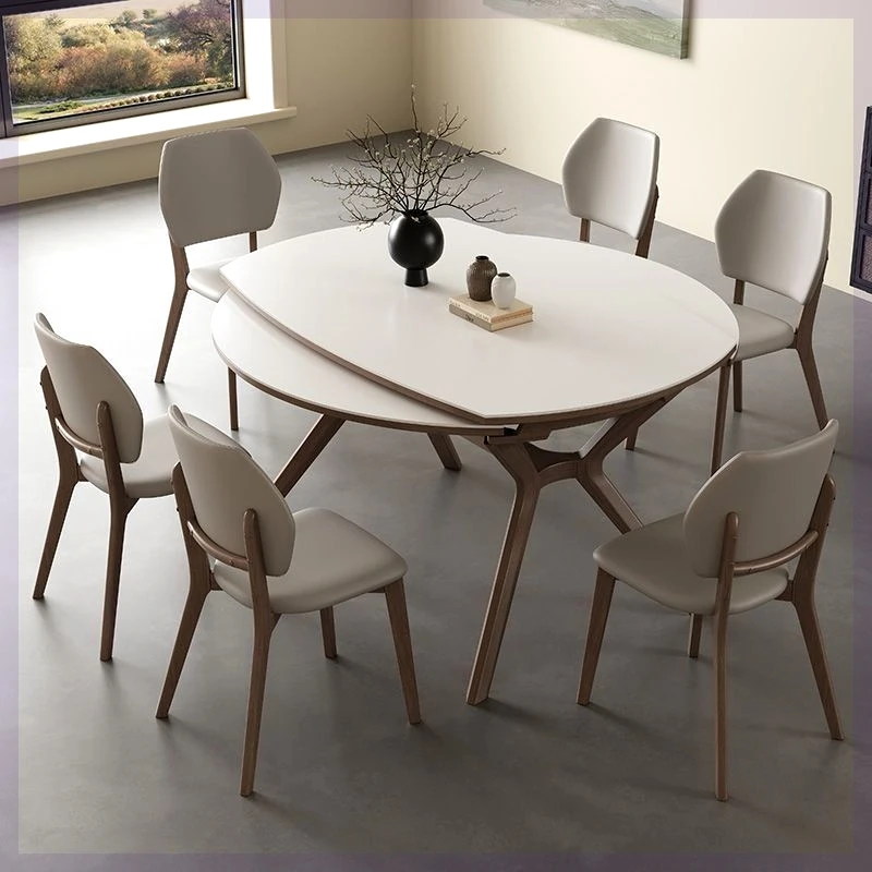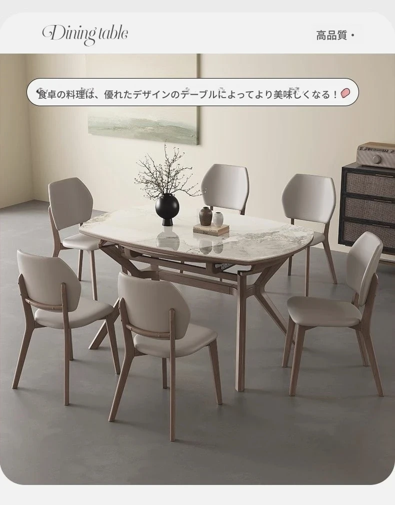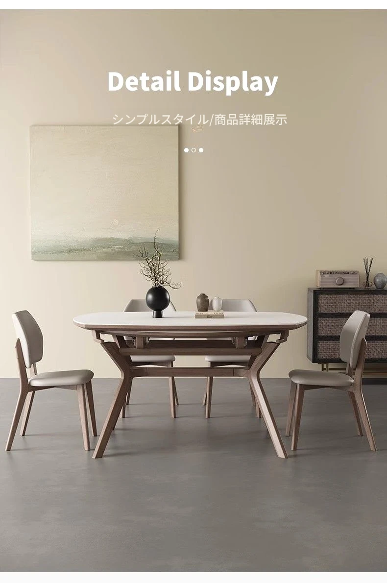 モダンミニマリストデザインの岩板ダイニングテーブルセット - 小型スペースに最適!伸縮式・折りたたみ可能で、四角と丸の2wayデザインの無垢木製テーブル。おしゃれで機能的な食卓をあなたの家に!