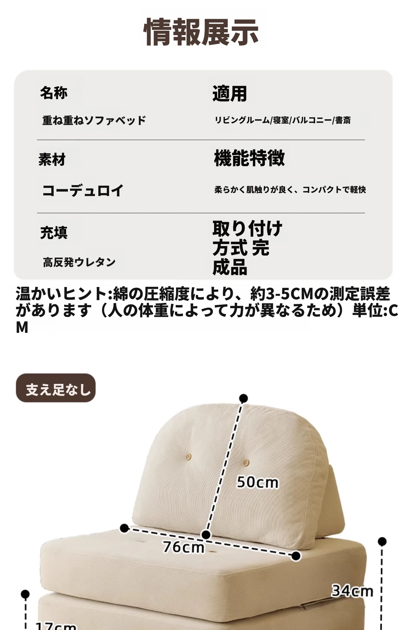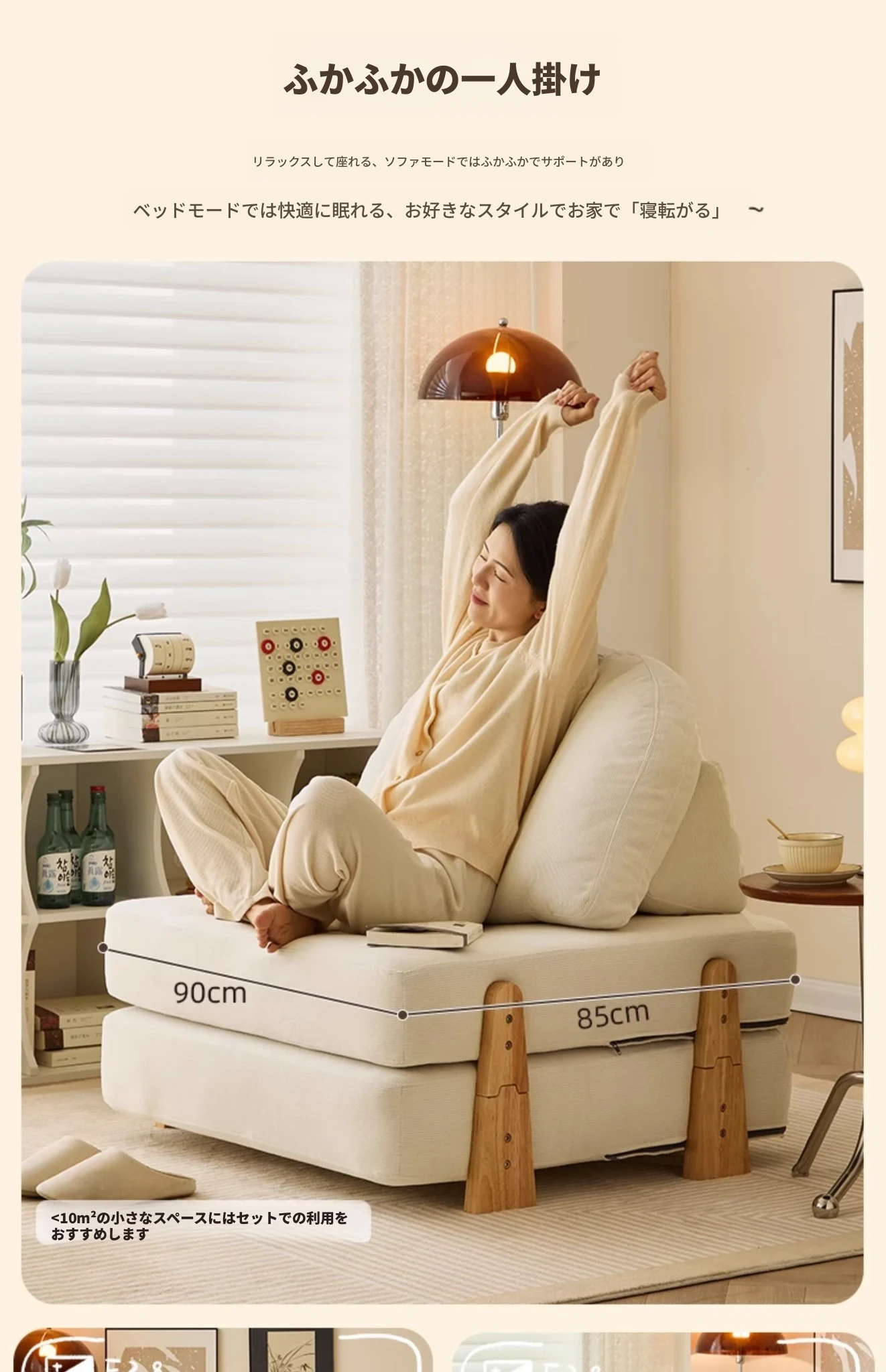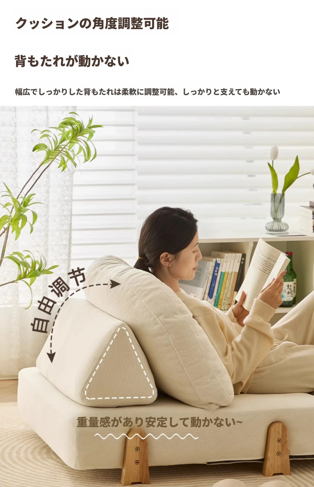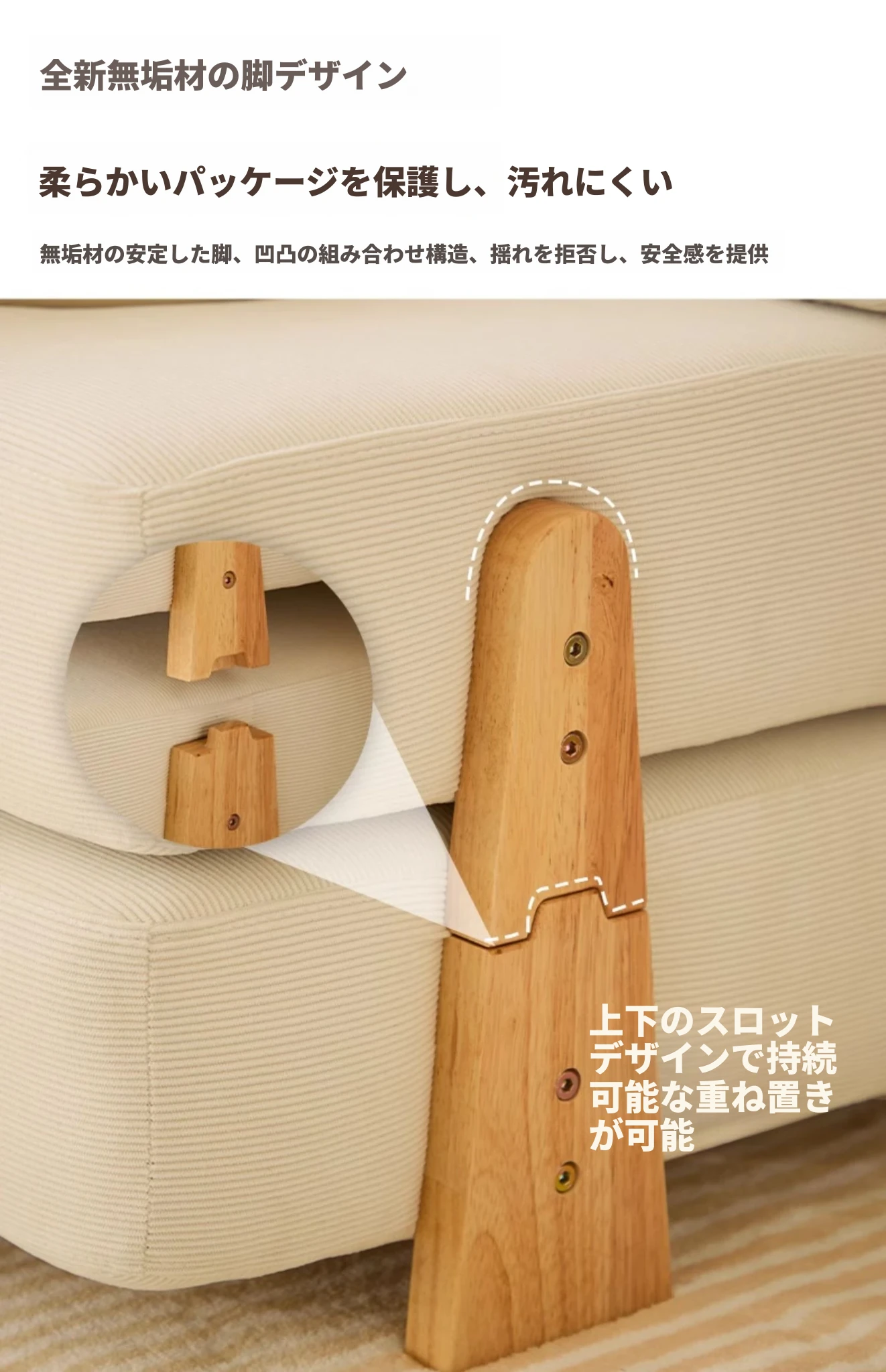 【アイボリー】-無垢材支え脚(ナチュラルカラー)