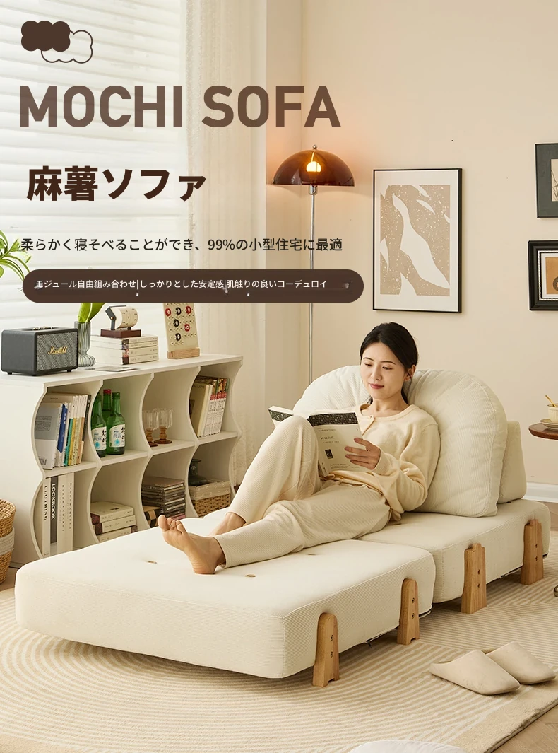 モダンでシンプルな布製ソファセット - 小さなスペースにぴったりな豆腐ブロックデザイン。リビングに最適な二人掛けソファとリラックスできるラウンジチェアで、心地よいひとときをお楽しみください!