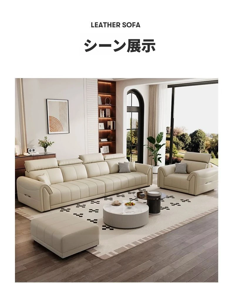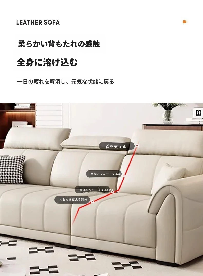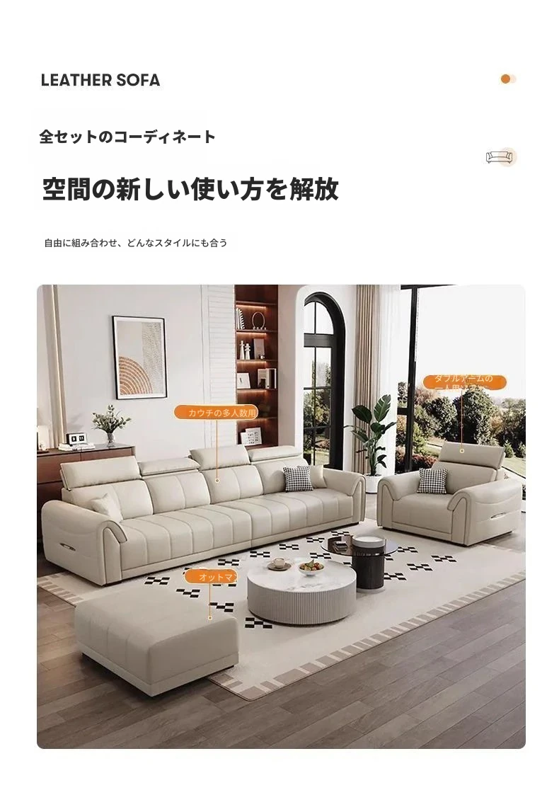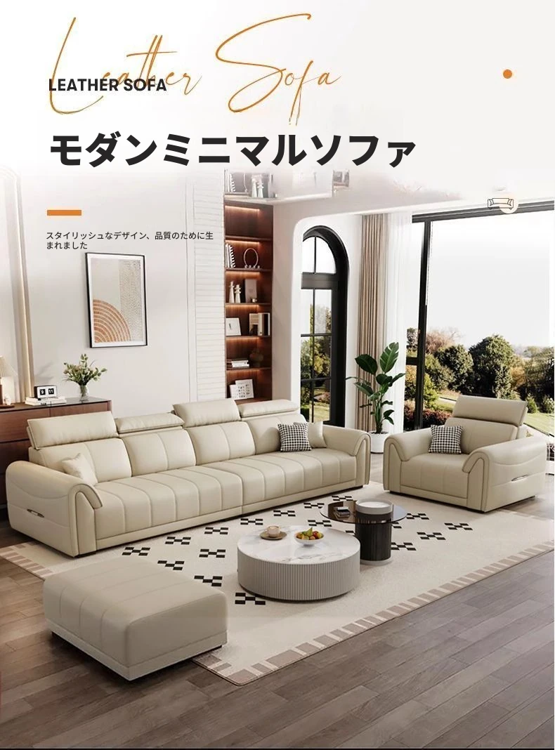 本革製モダンミニマリストソファ|小型リビングに最適なデザイン|大きな象の耳のようなユニークな形状|ピアノキー風ソファセット|スタイリッシュで快適な居住空間を演出!