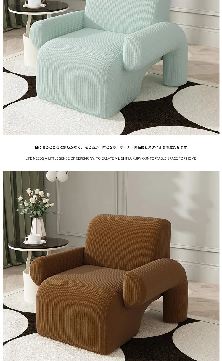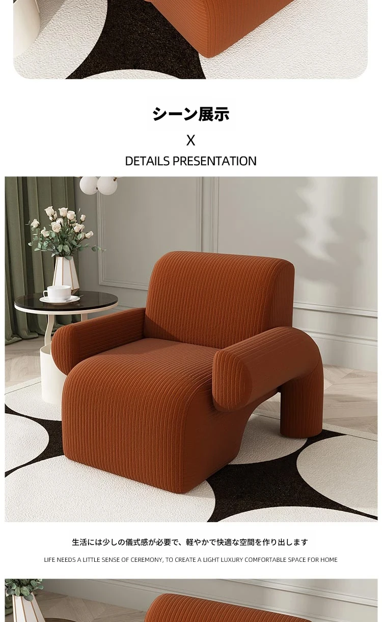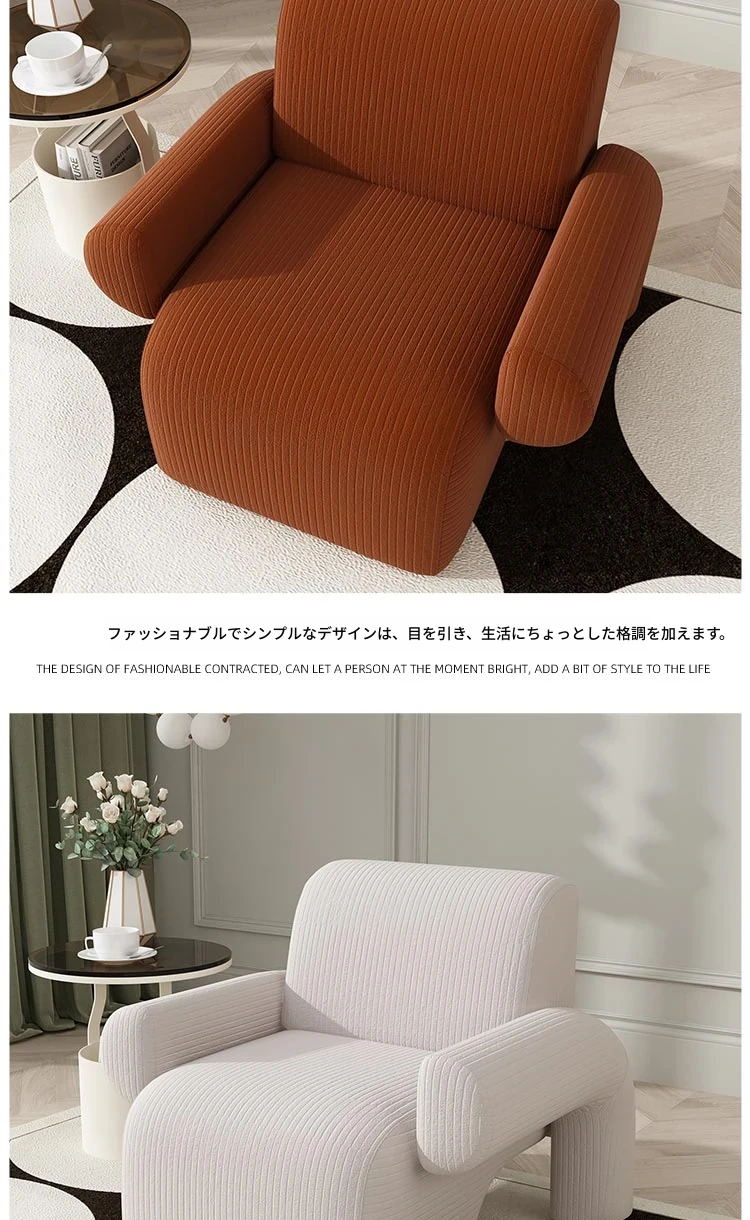 現代的ラグジュアリーなリラックスチェア - シンプルでスタイリッシュな一人掛けソファ。狭い空間にもぴったりなデザインで、インスタ映え間違いなし!あなたのリビングをおしゃれに演出します。