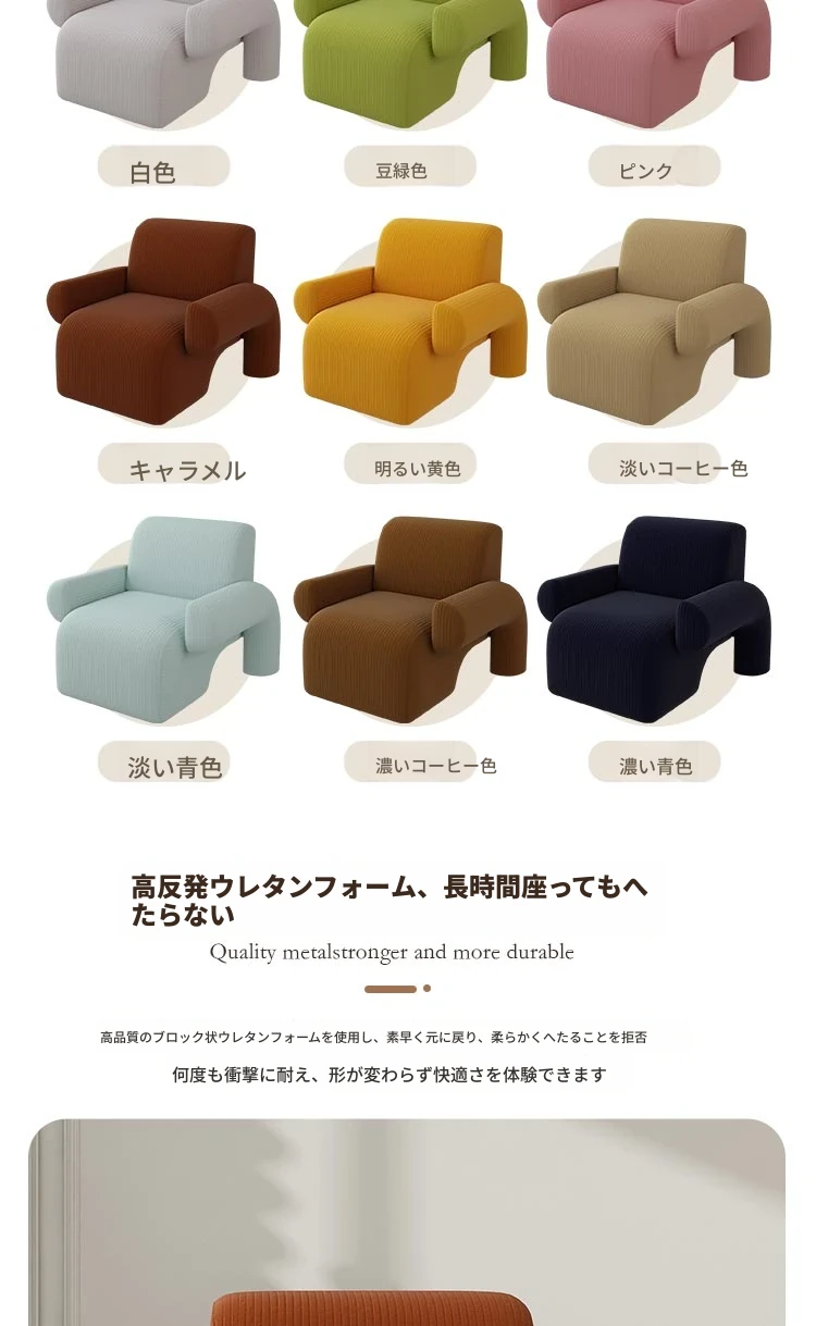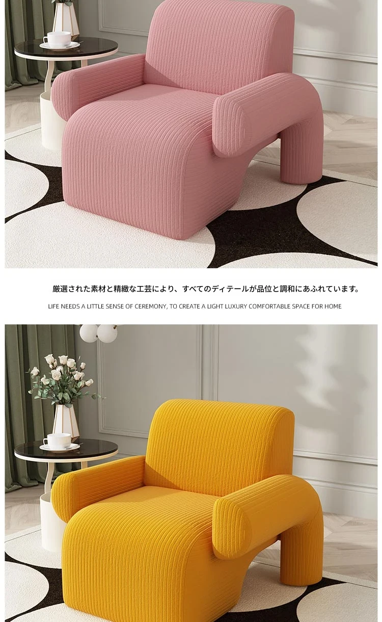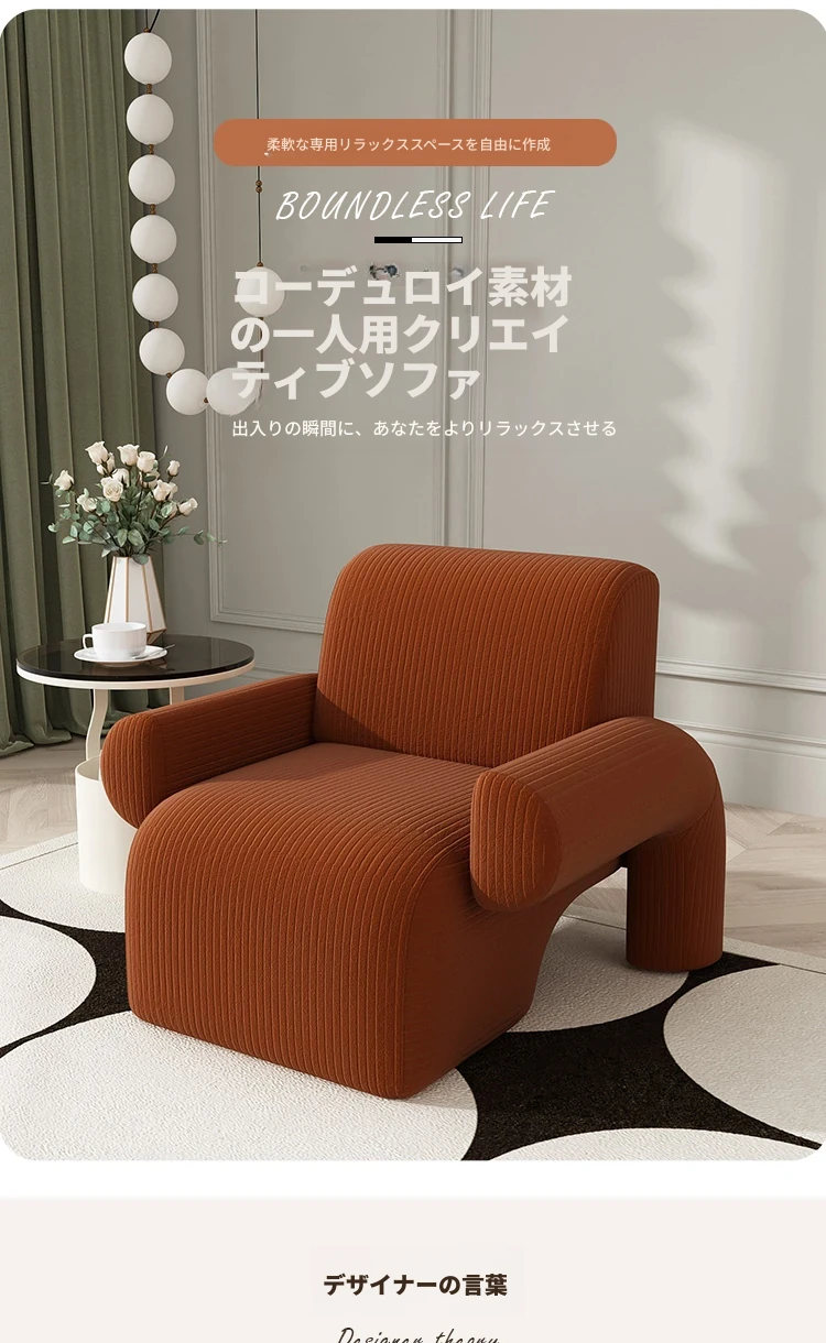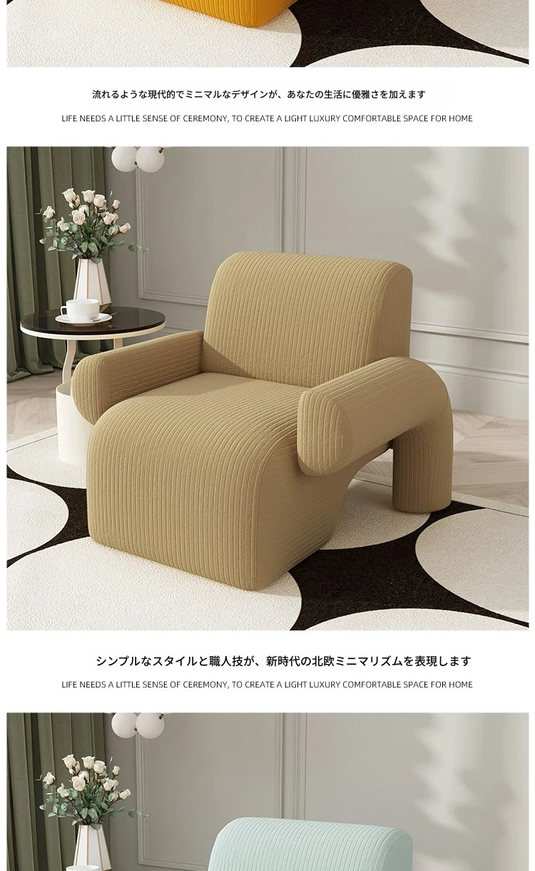 現代的ラグジュアリーなリラックスチェア - シンプルでスタイリッシュな一人掛けソファ。狭い空間にもぴったりなデザインで、インスタ映え間違いなし!あなたのリビングをおしゃれに演出します。