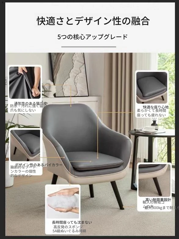 モダンミニマリスト一人掛けチェア - 小型住宅向け、リビングやベッドルームに最適な軽奢スタイルのバルコニー用リラックススツール。快適さとスタイリッシュなデザインで、あなたの空間を彩ります!