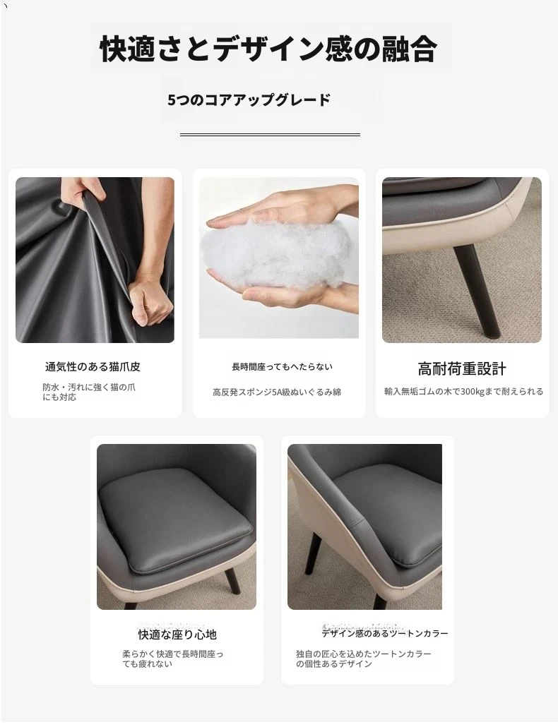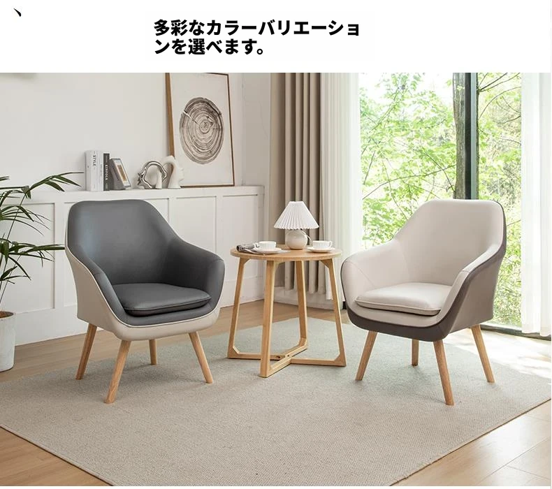 テクノロジー布内側がグレー、外側がホワイト(原木色の脚)クッション付き