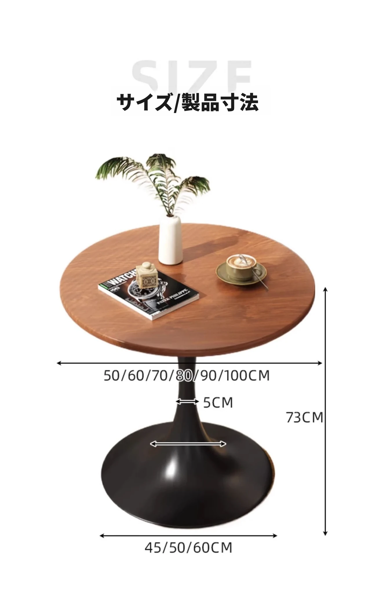 チューリップ小丸テーブル ジェントルマンブラック 100*100*73