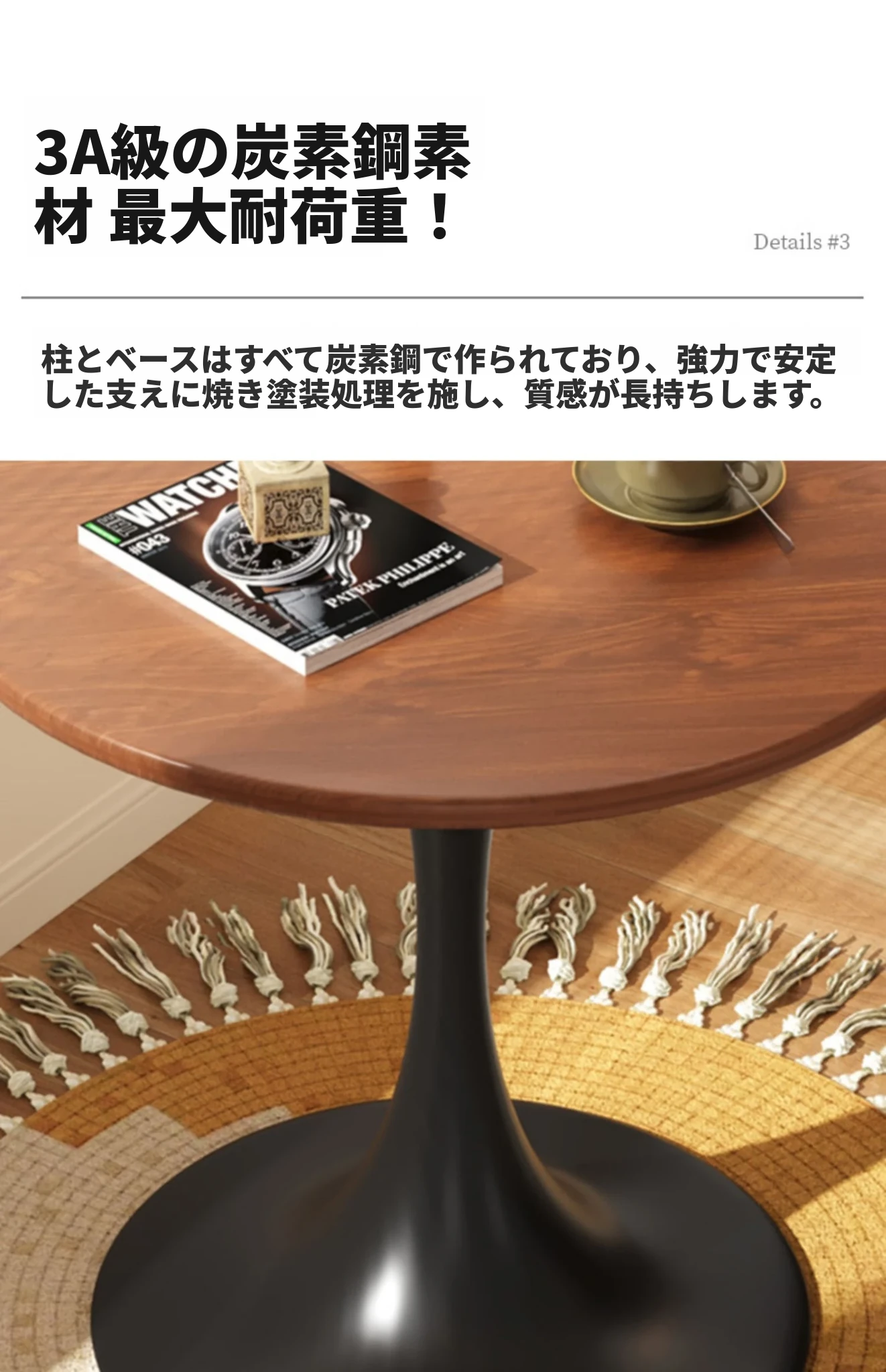 チューリップ小丸テーブル ジェントルマンブラック 90*90*73
