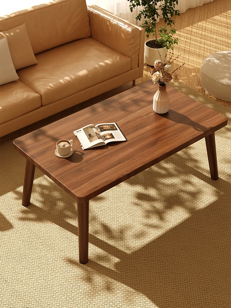 中サイズのディープウォルナット正方形テーブル-70*50*30高(無垢材の脚)