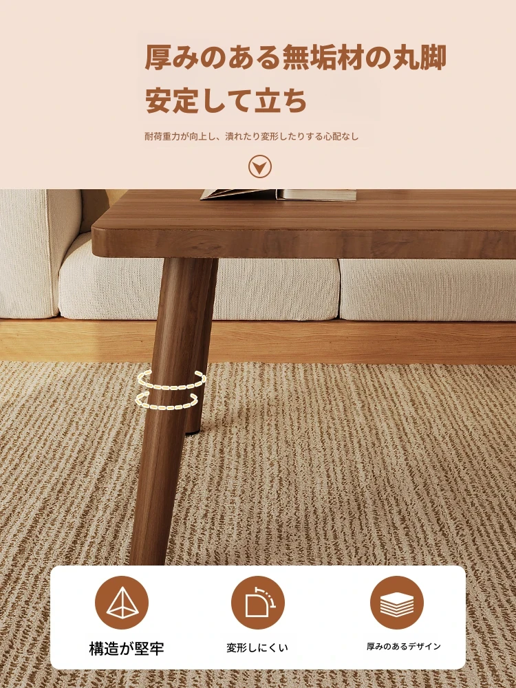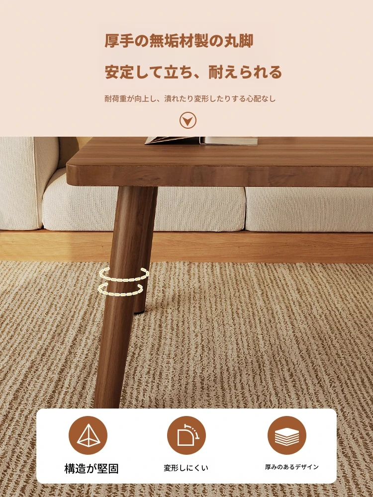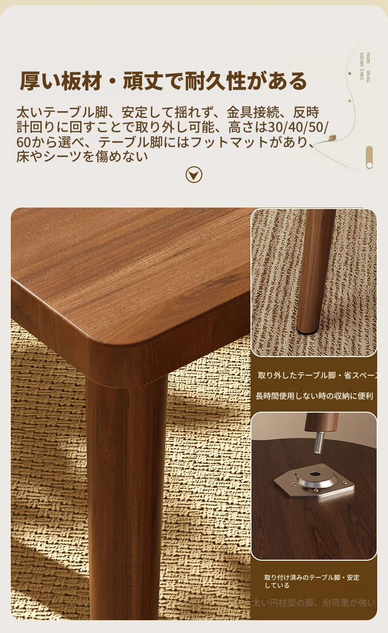 大サイズのディープウォルナット正方形テーブル-80*50*30高(無垢材の脚)