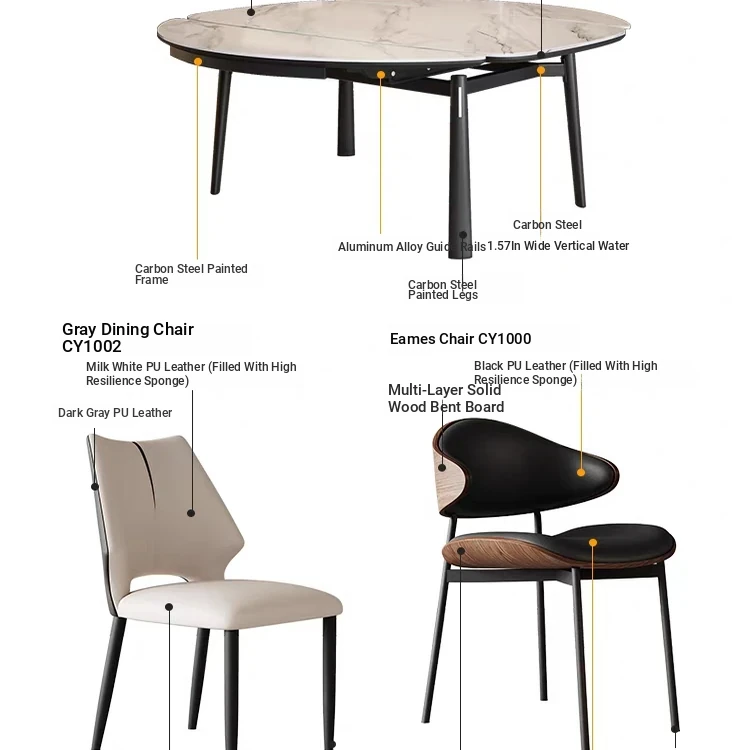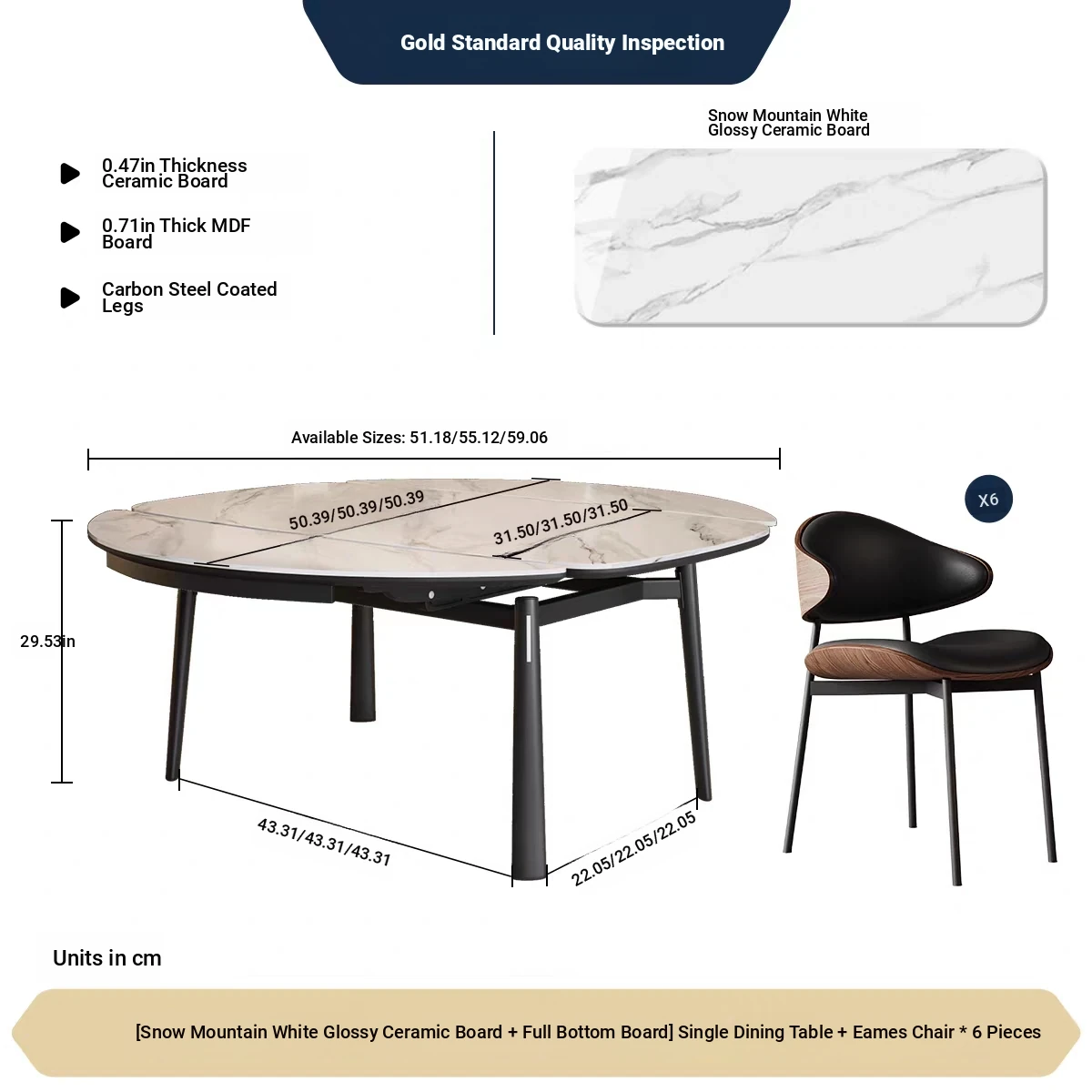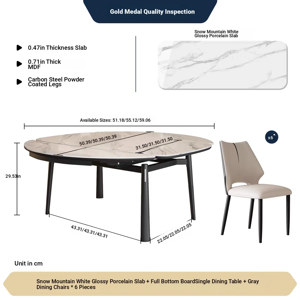 Single dining table + gray dining chair * 6(Snow mountain white bright rock plate + full support base plate)
