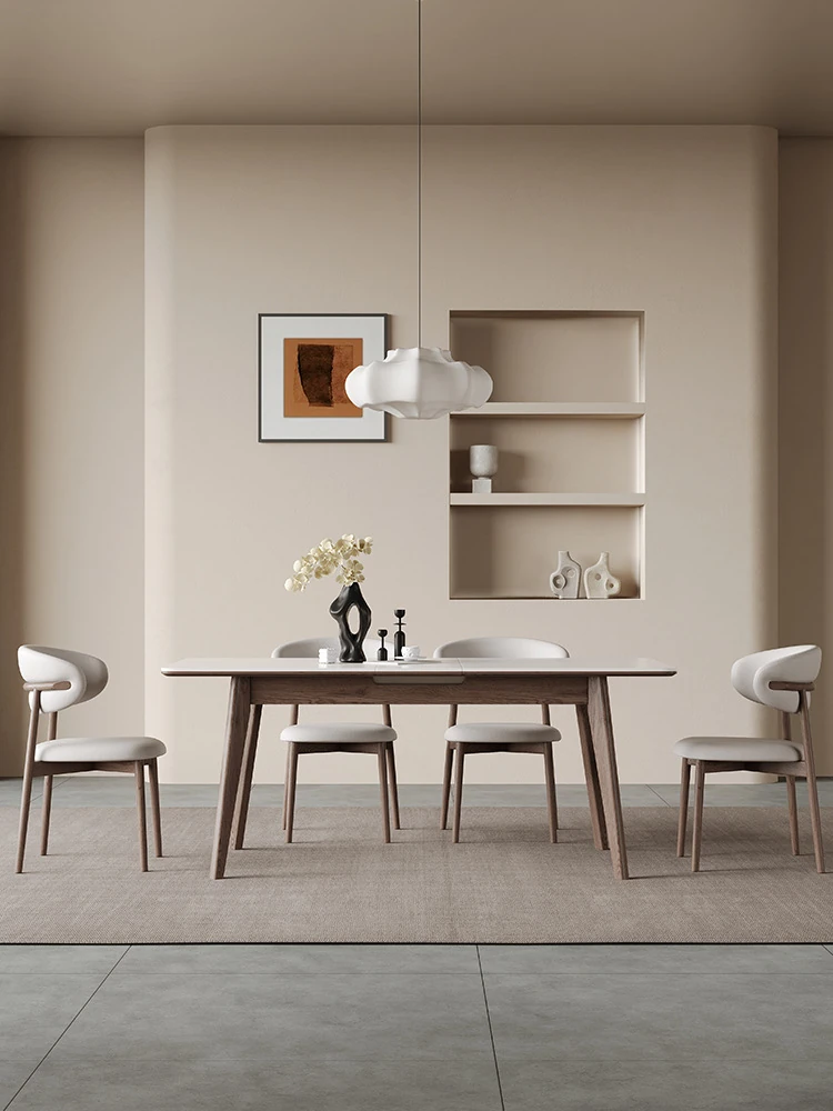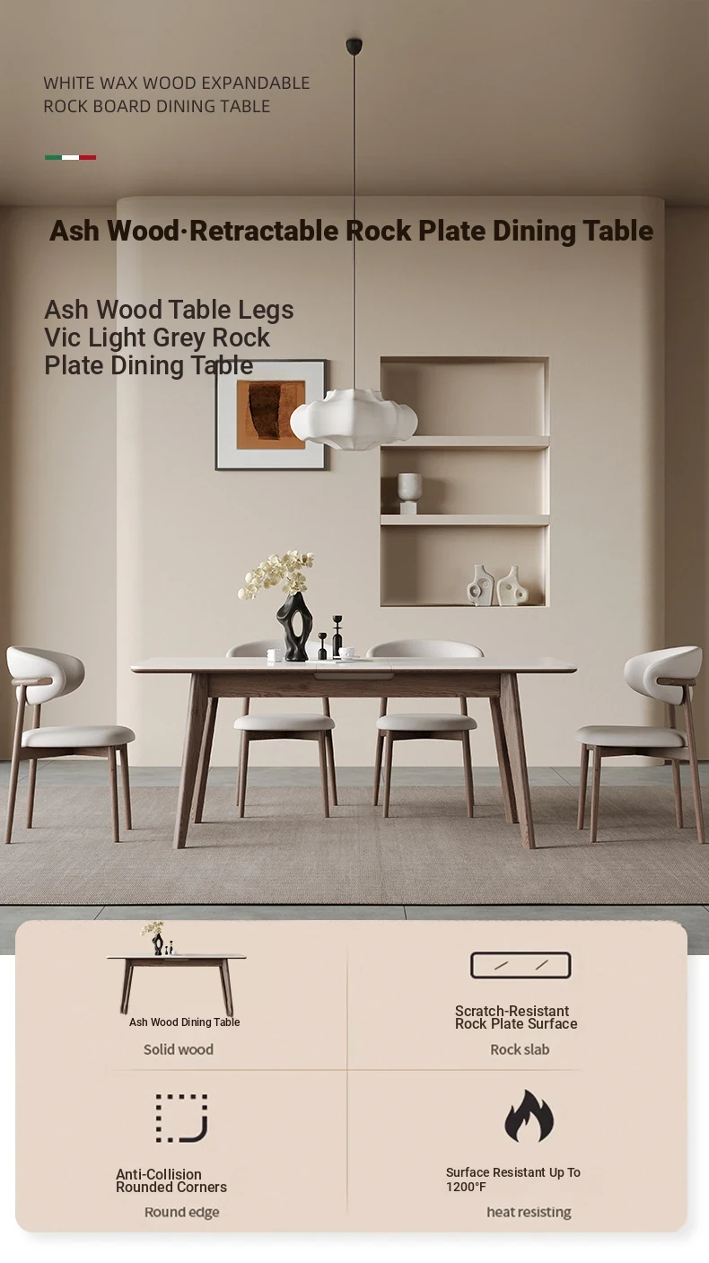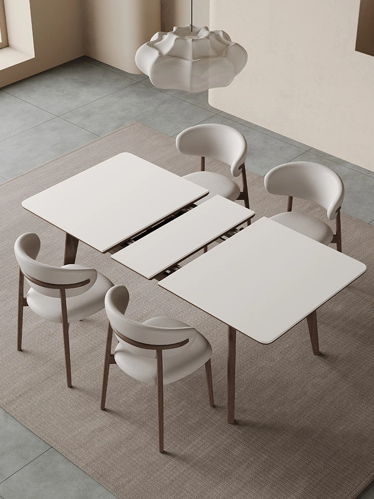 Modern Nordic Style White Ash Wood Expandable Folding Dining Table for Small Homes - Rectangular Solid Wood Table Perfect for Cozy Spaces