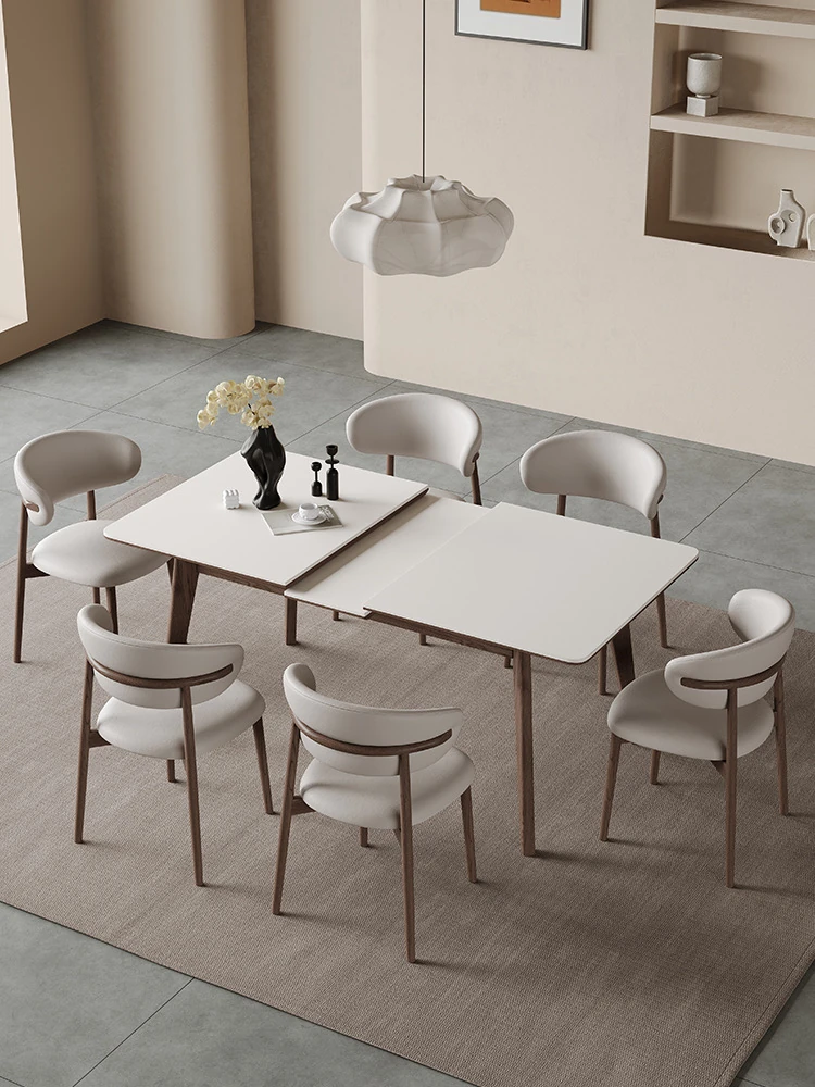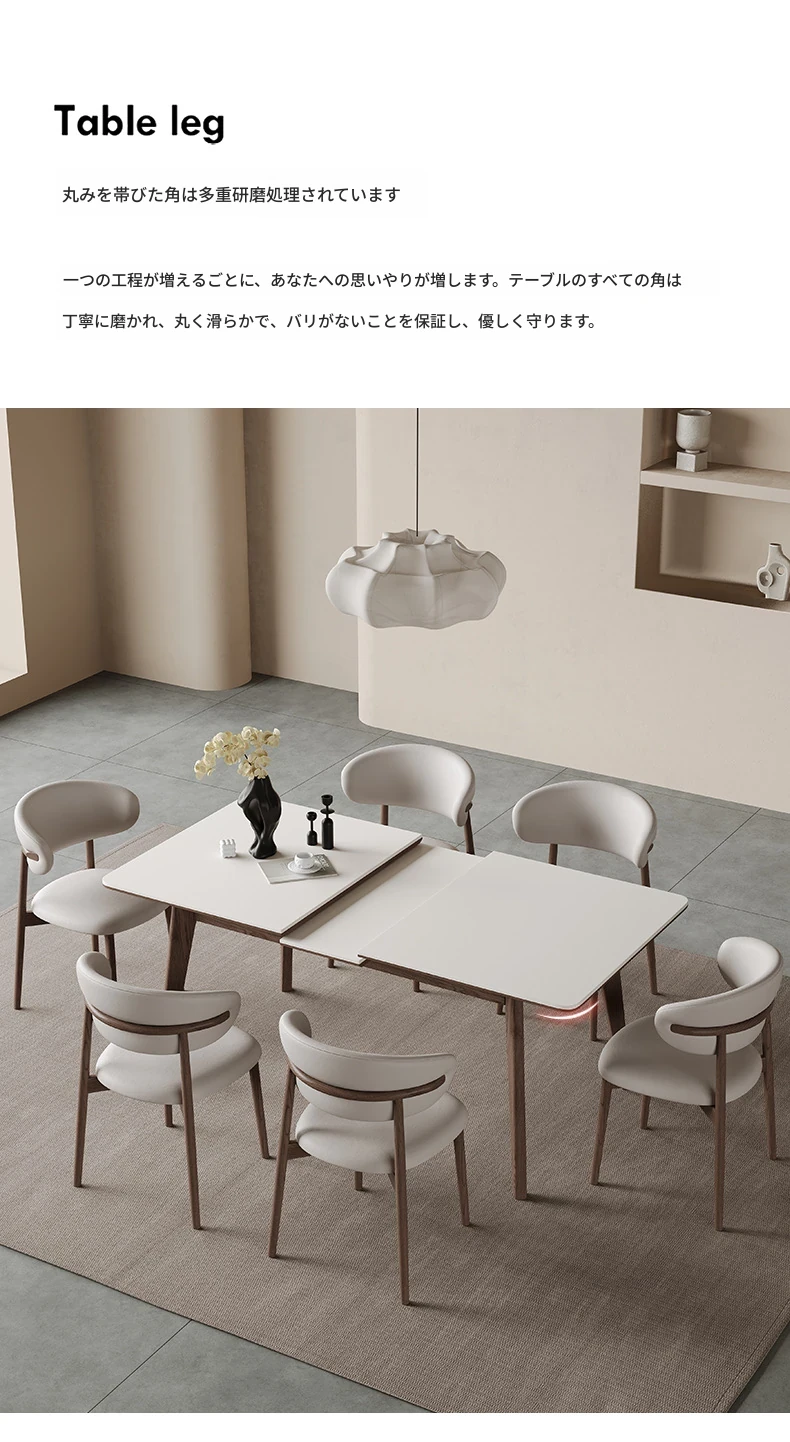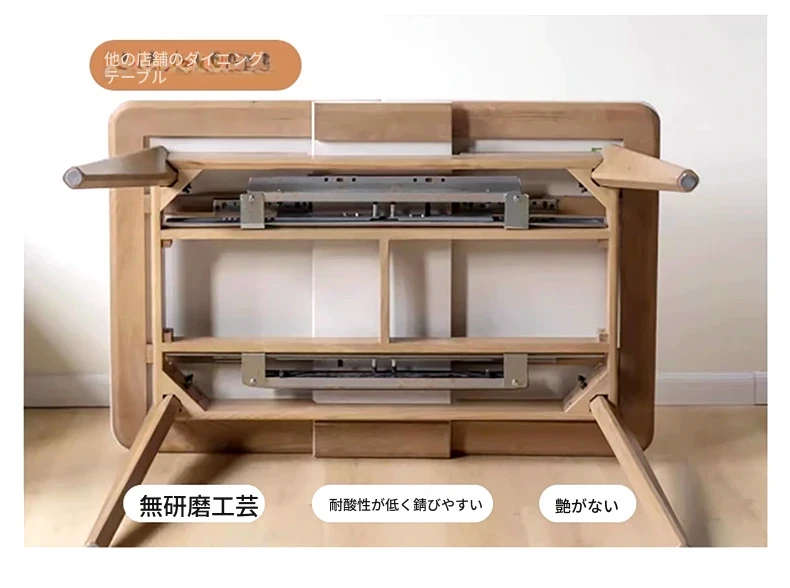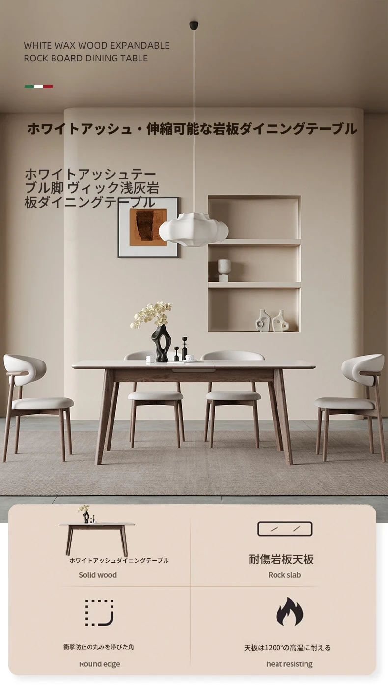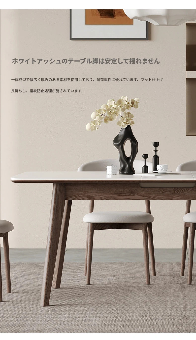 白蜡木製の伸縮式ダイニングテーブル - 小さな家に最適!モダンな北欧デザイン、長方形で折りたたみ可能、実用的でスタイリッシュな天然木製テーブル。スペースを有効活用し、家族や友人との楽しい食事を演出します。