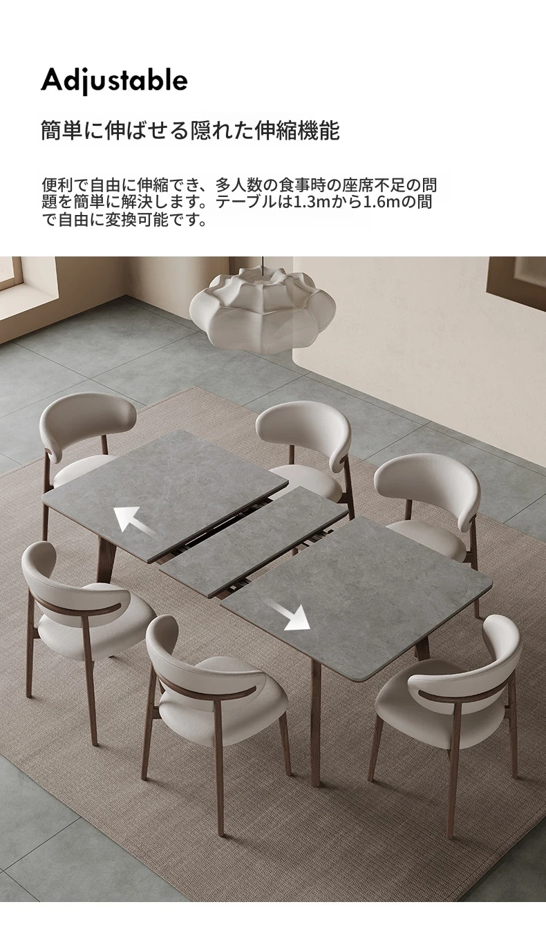 1.3メートルから1.6メートルに伸びる【単一テーブル】