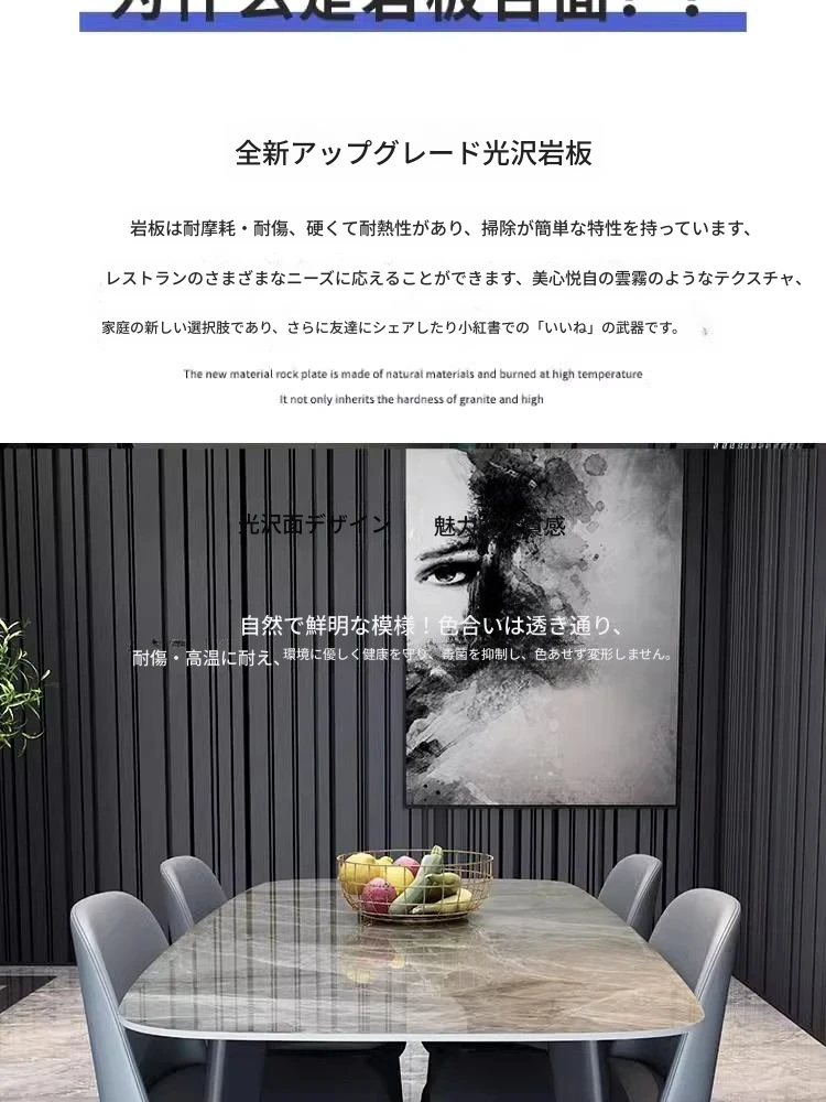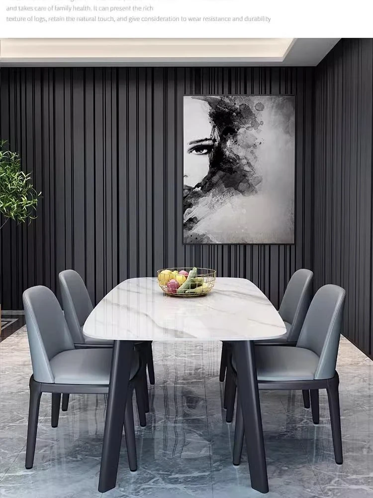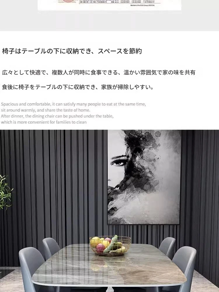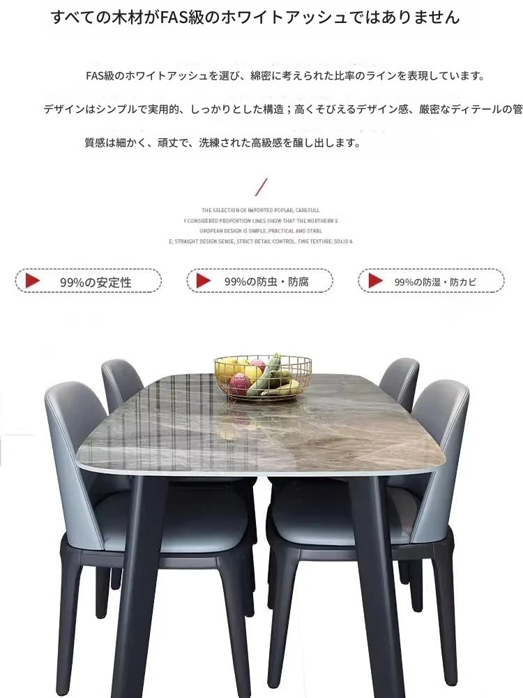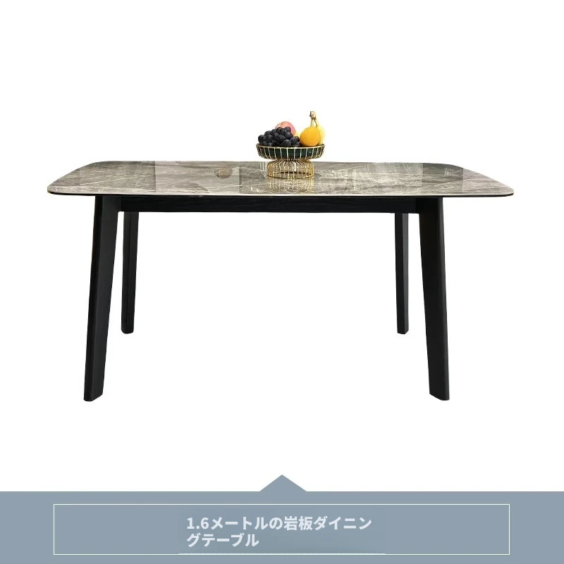 高級感あふれるモダンな長方形岩板テーブル&チェアセット - シンプルで洗練されたデザイン、小さなスペースにもぴったりな実木製ダイニングテーブル。食事を楽しむための理想的な選択です!