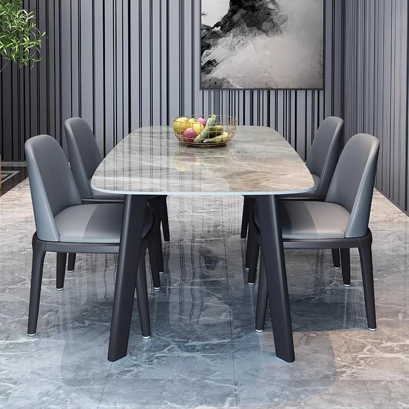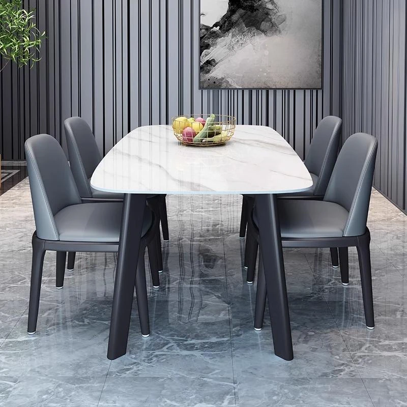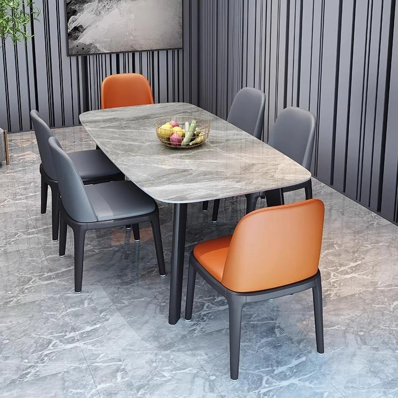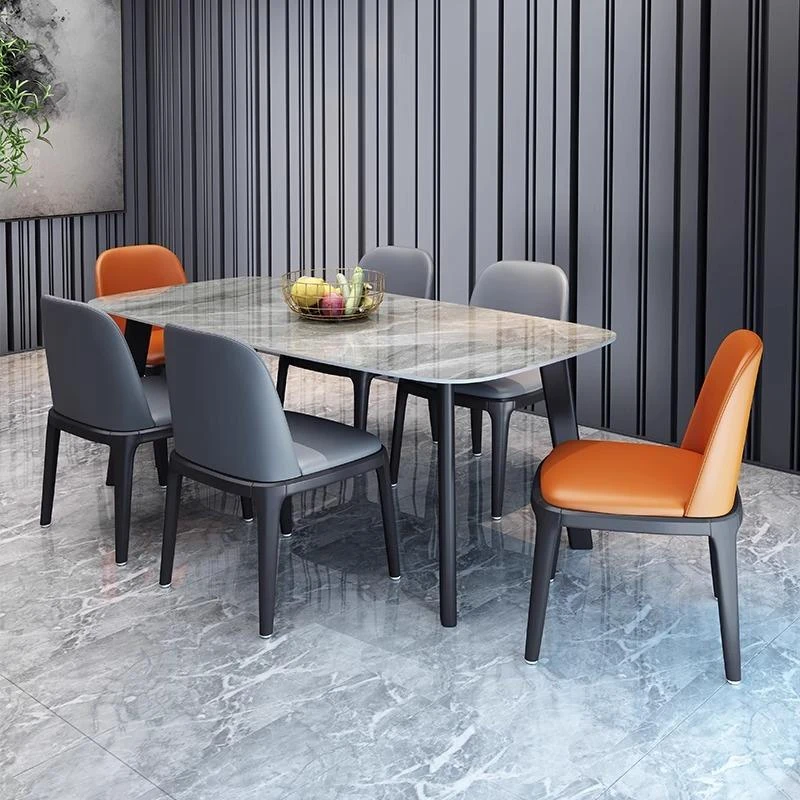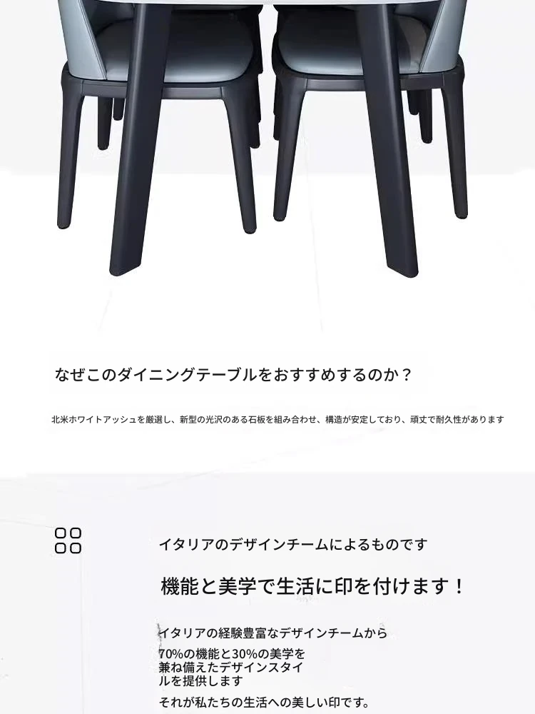 高級感あふれるモダンな長方形岩板テーブル&チェアセット - シンプルで洗練されたデザイン、小さなスペースにもぴったりな実木製ダイニングテーブル。食事を楽しむための理想的な選択です!