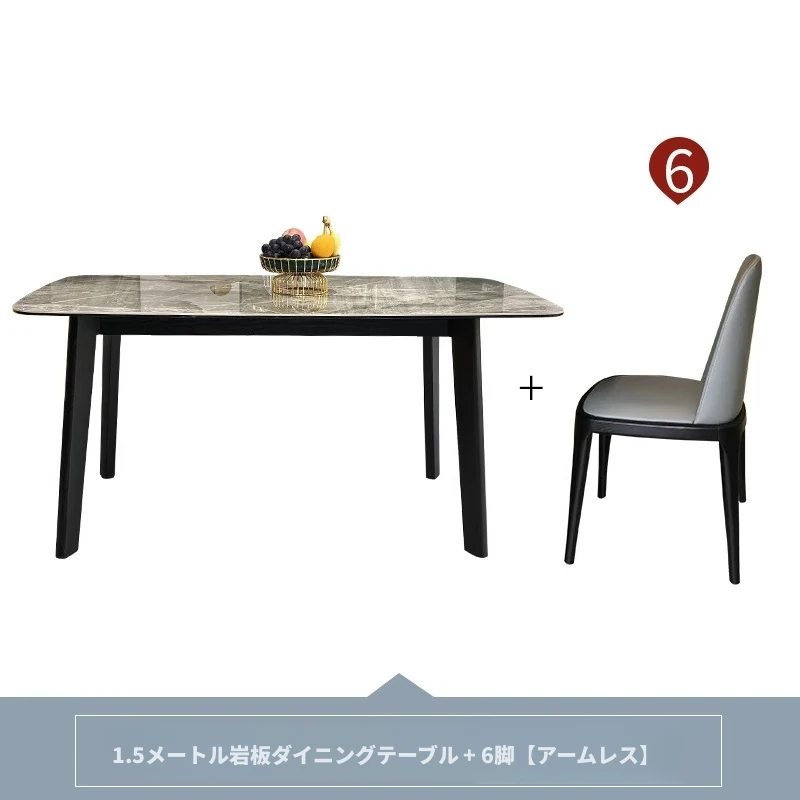1.5メートル 岩板テーブル【イタリアングレー】+6椅子