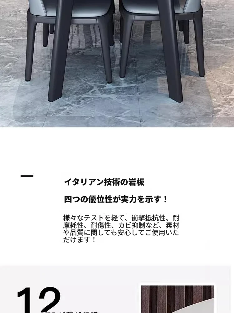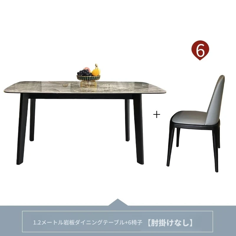1.2メートル 岩板テーブル【イタリアングレー】+6椅子