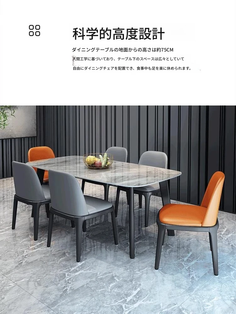 1.8メートル 岩板テーブル【イタリアングレー】+6椅子