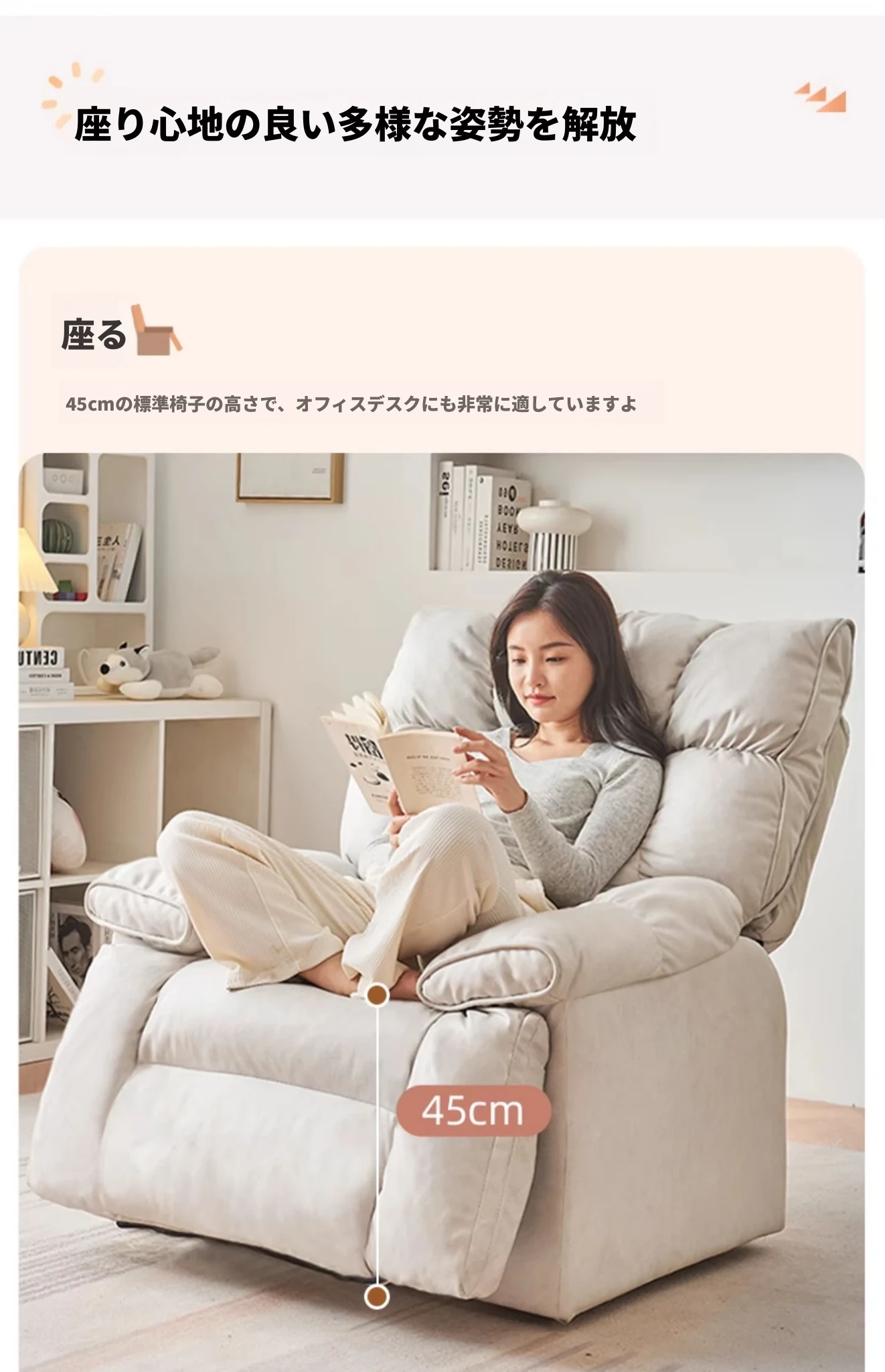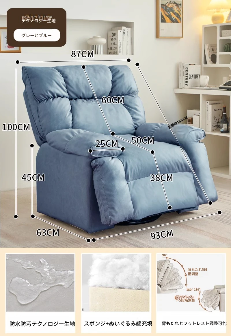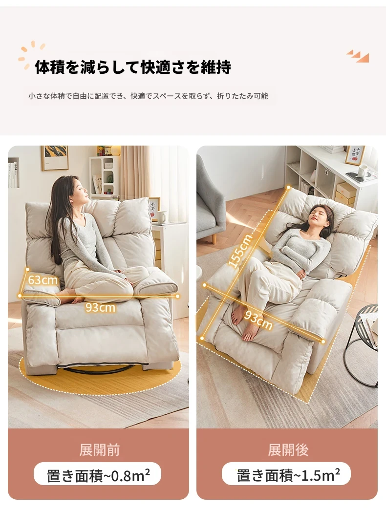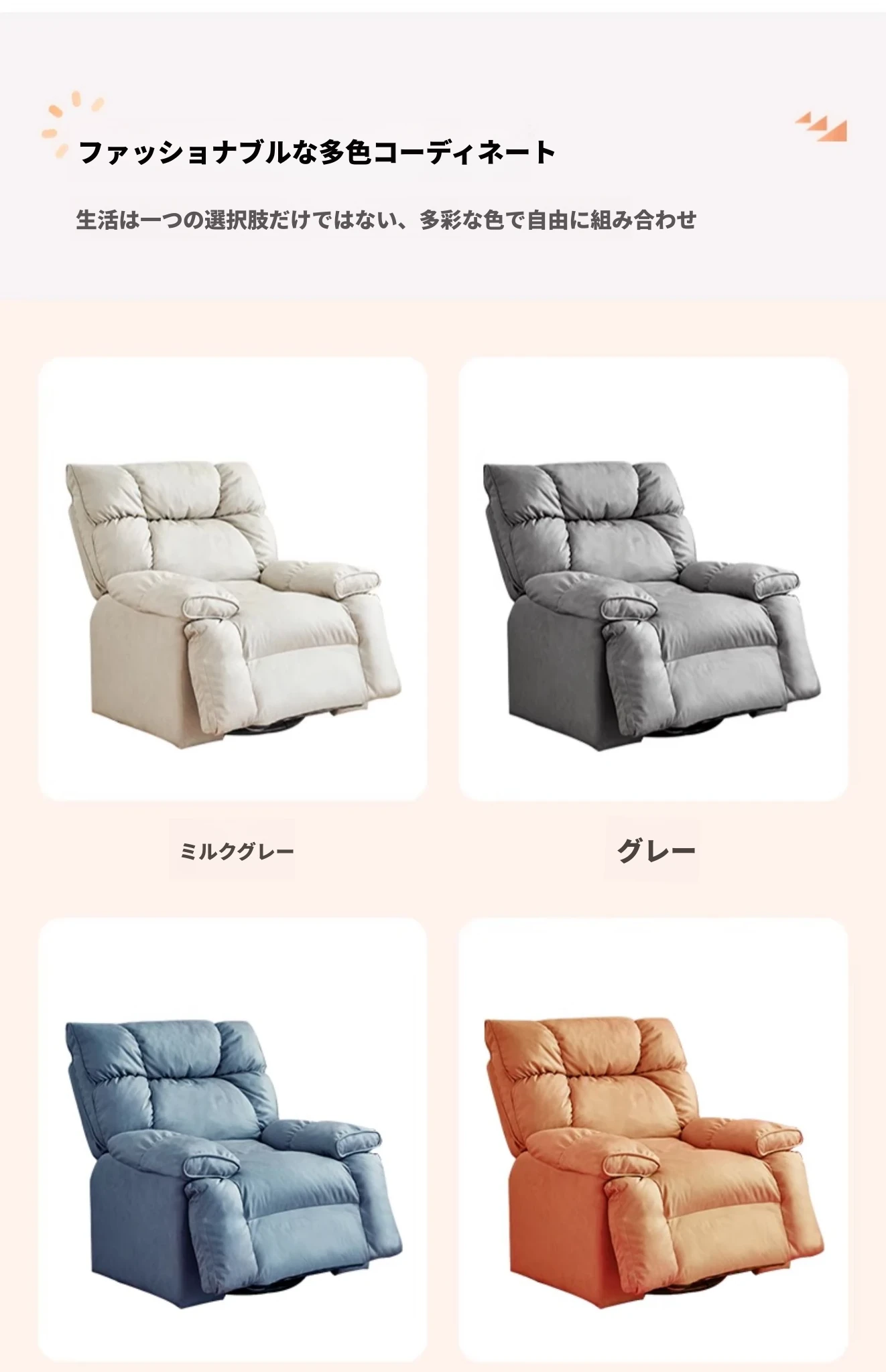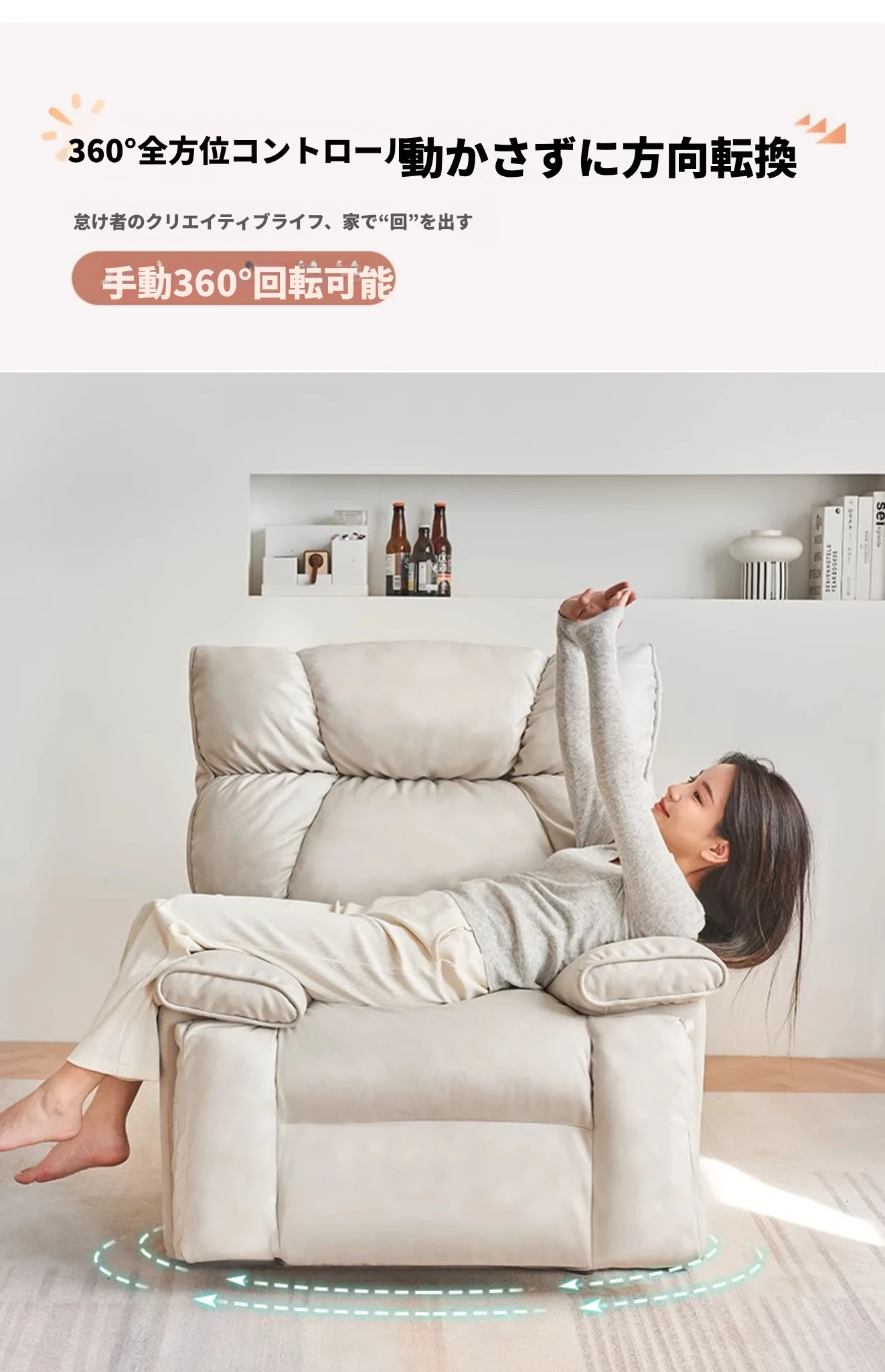 リラックスできる多機能ソファ|寝転び・リクライニング可能|揺れる椅子と回転機能付き|家庭用スペースソファ|一人用|快適な休息をお届けします!