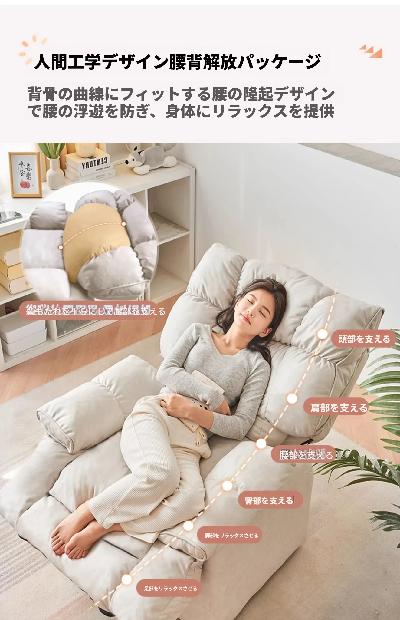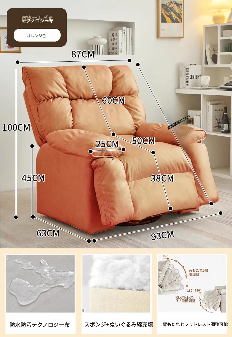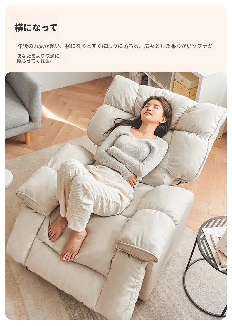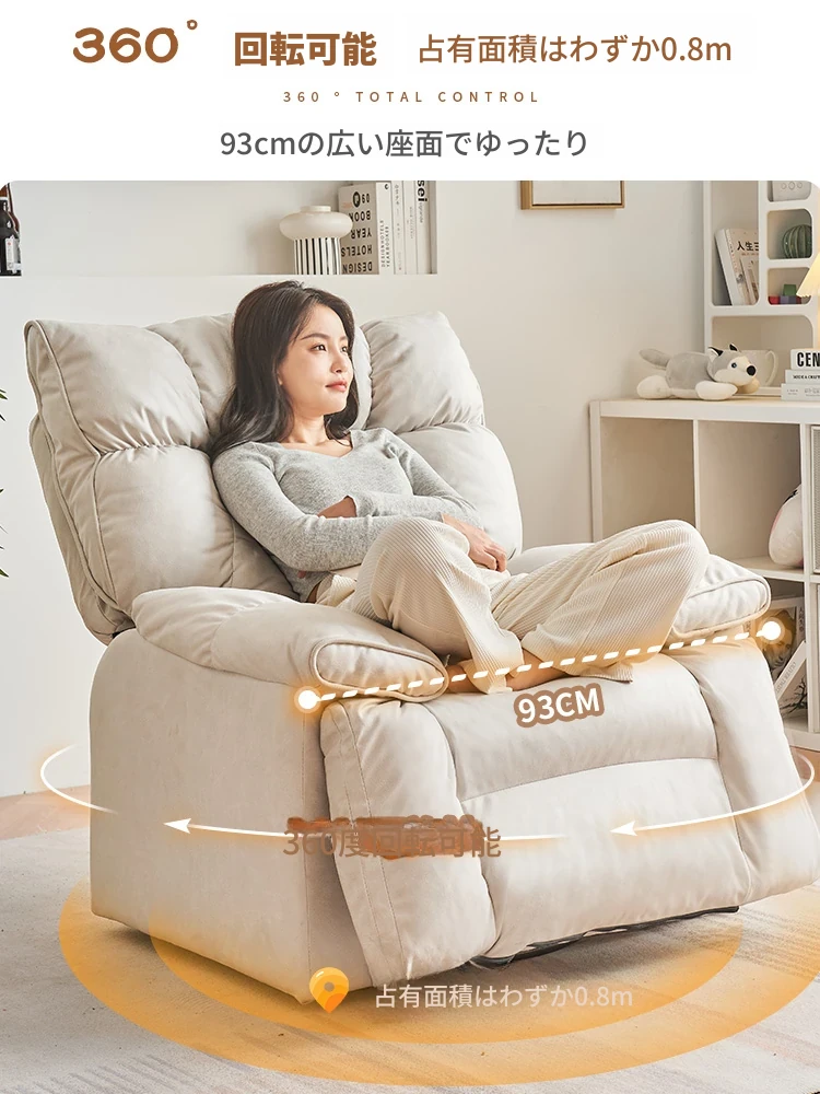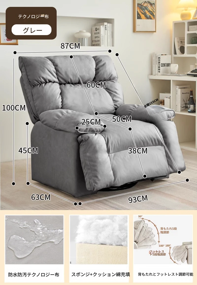 リラックスできる多機能ソファ|寝転び・リクライニング可能|揺れる椅子と回転機能付き|家庭用スペースソファ|一人用|快適な休息をお届けします!