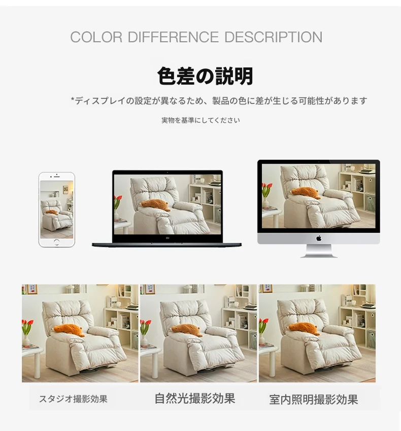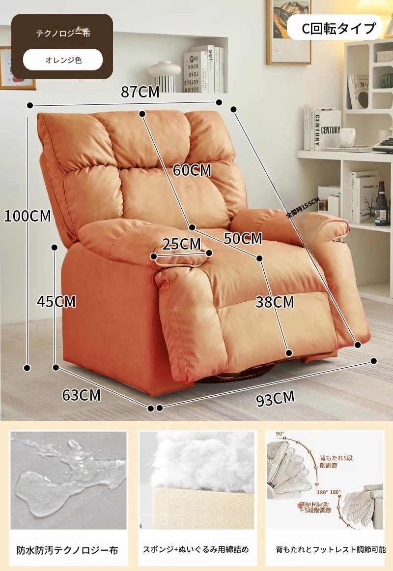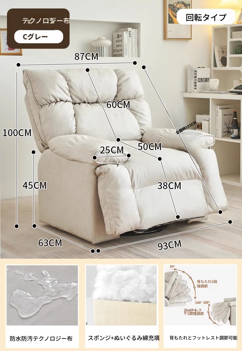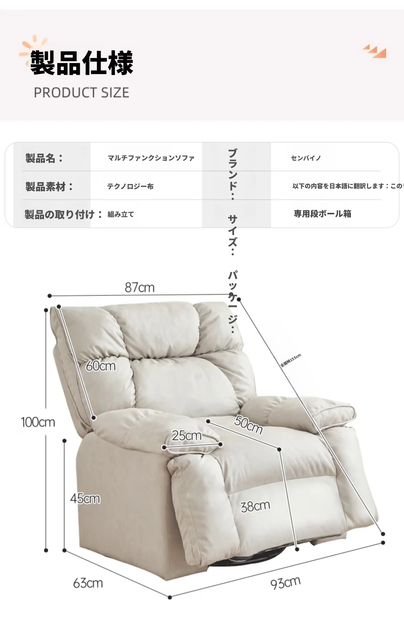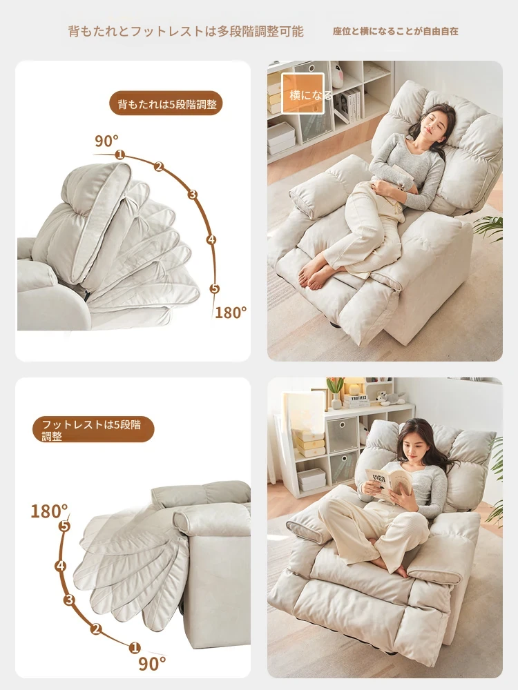 リラックスできる多機能ソファ|寝転び・リクライニング可能|揺れる椅子と回転機能付き|家庭用スペースソファ|一人用|快適な休息をお届けします!