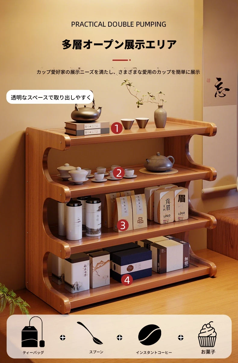 オフィスやキッチンに最適!多層ティーカップスタンド - テーブルやカウンターの整理整頓に最適な収納ラック。美しいデザインで、あなたの茶具をスタイリッシュにディスプレイ!