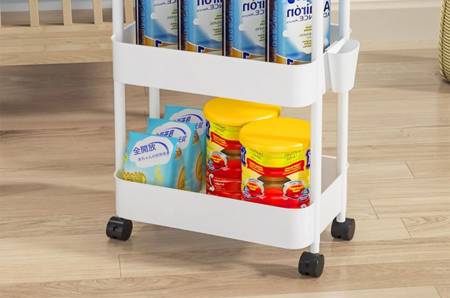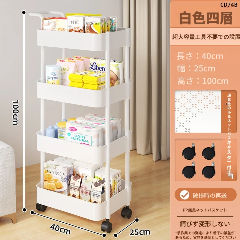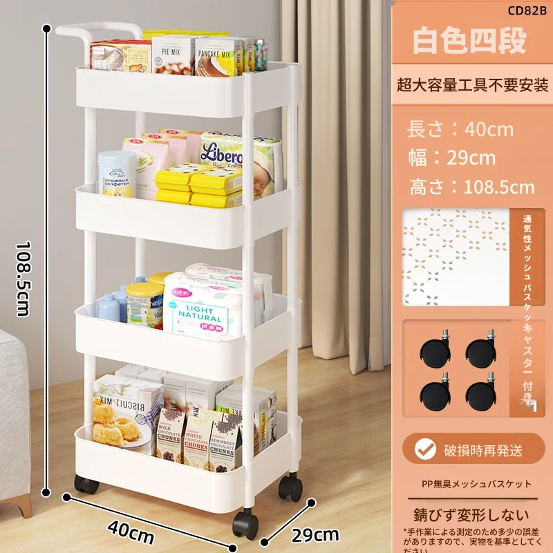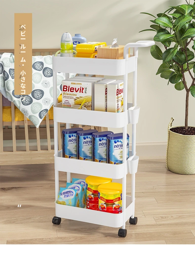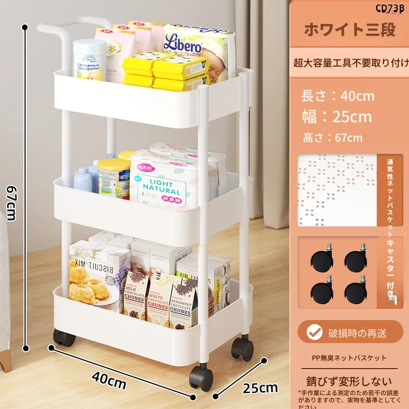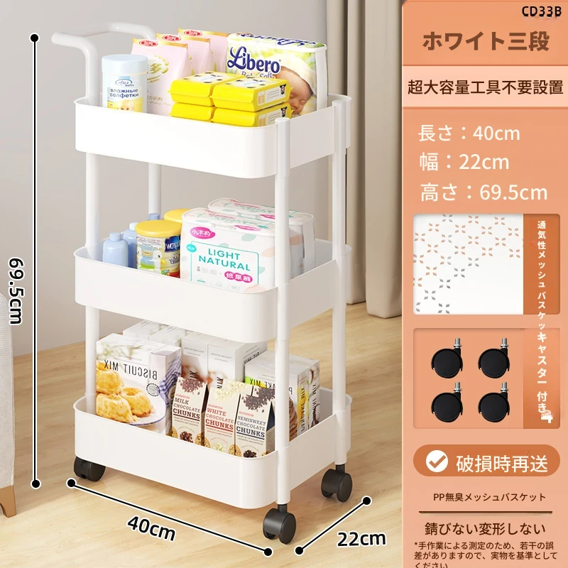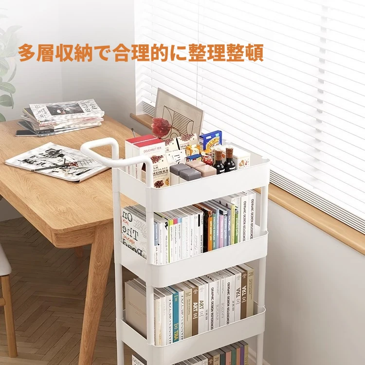 デスク下収納バスケット - オフィスに最適な移動式スナックカート!多段収納で、便利なキャスター付き。おしゃれで機能的な整理整頓を実現!