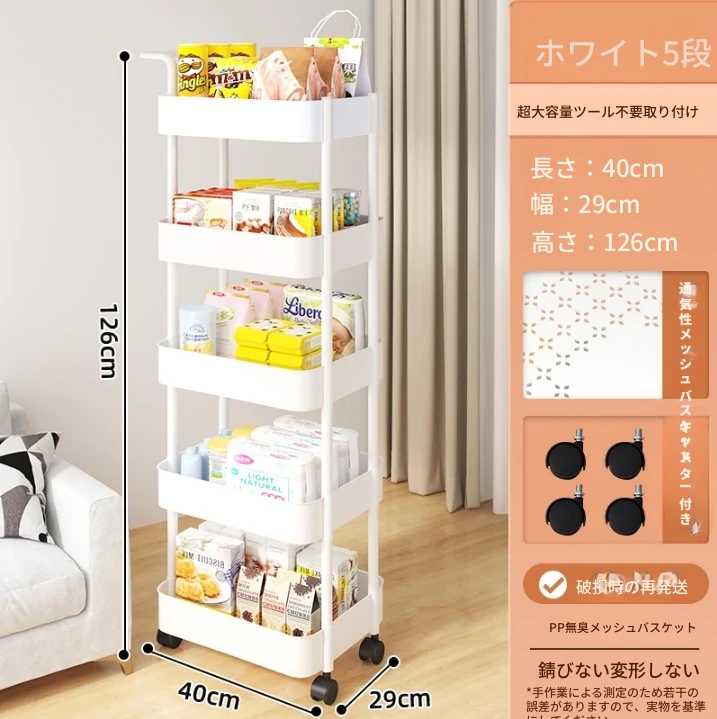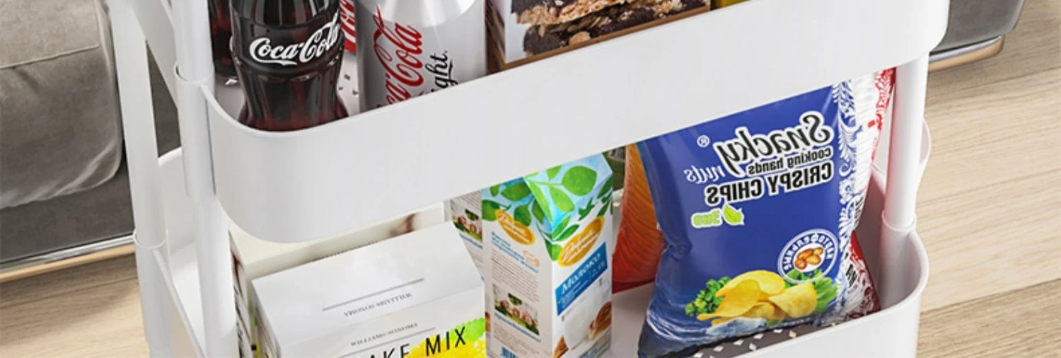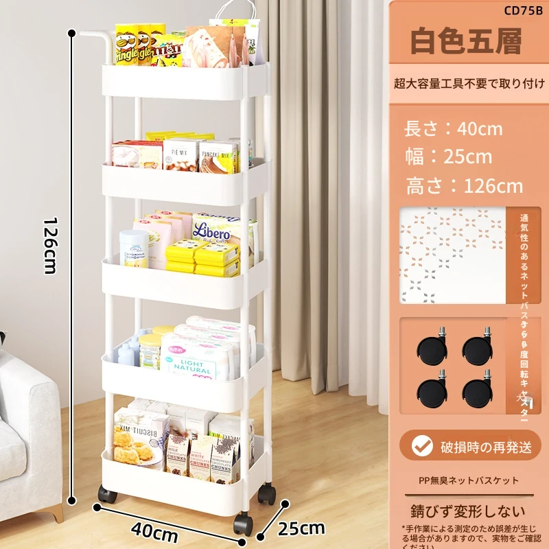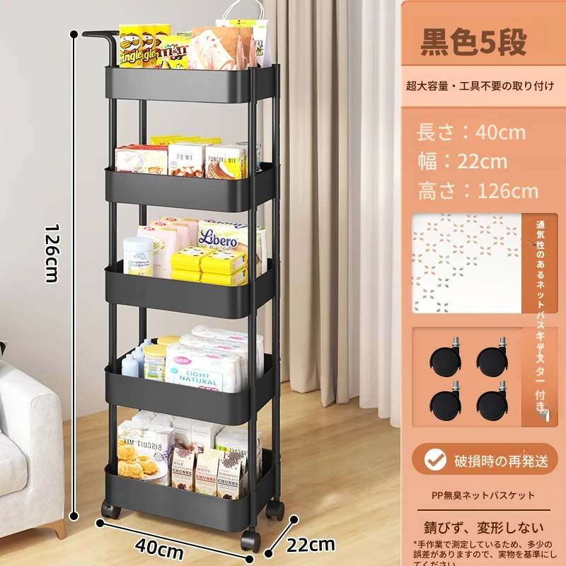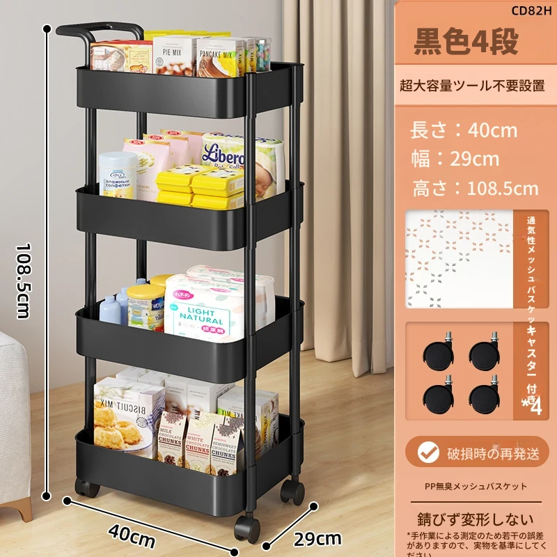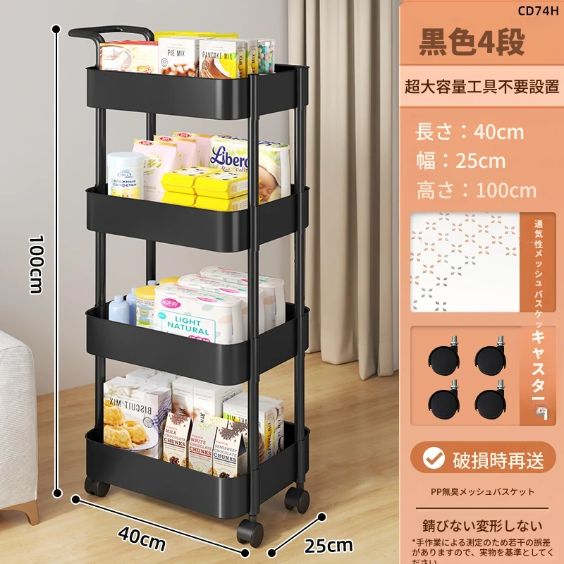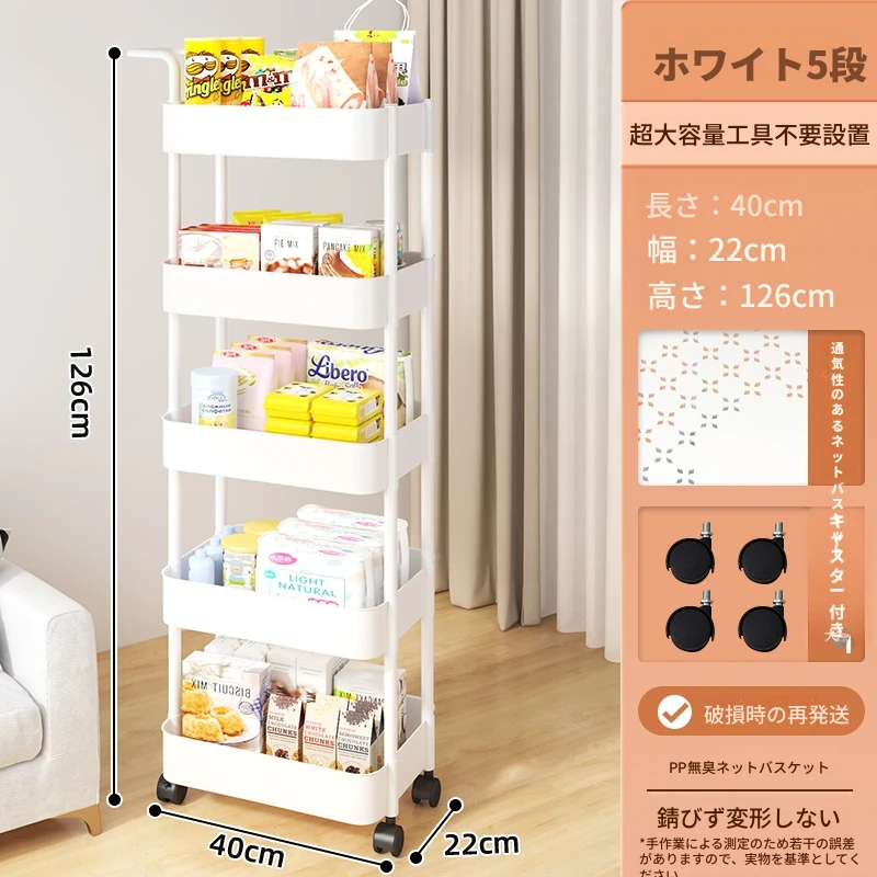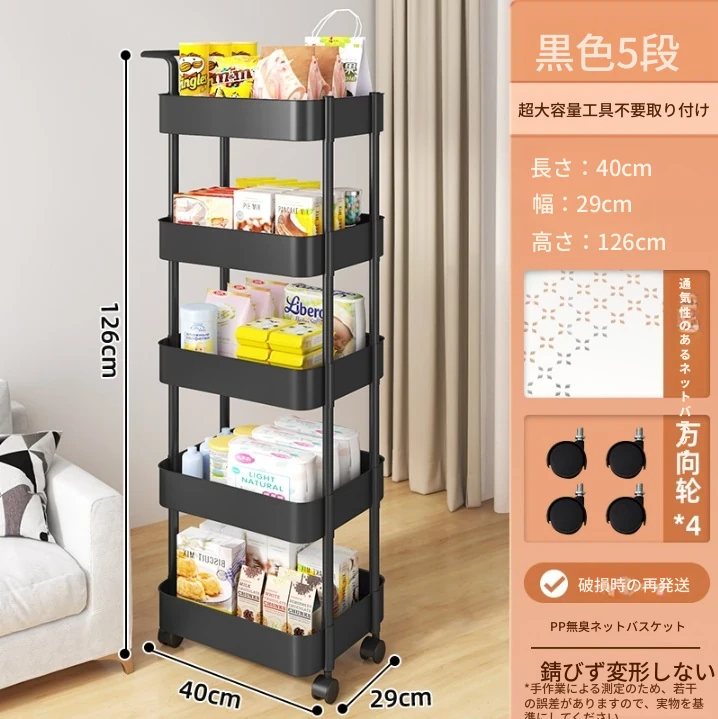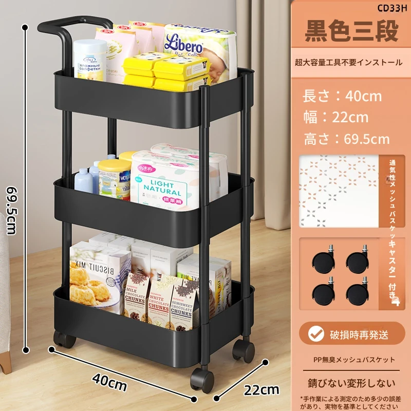デスク下収納バスケット - オフィスに最適な移動式スナックカート!多段収納で、便利なキャスター付き。おしゃれで機能的な整理整頓を実現!