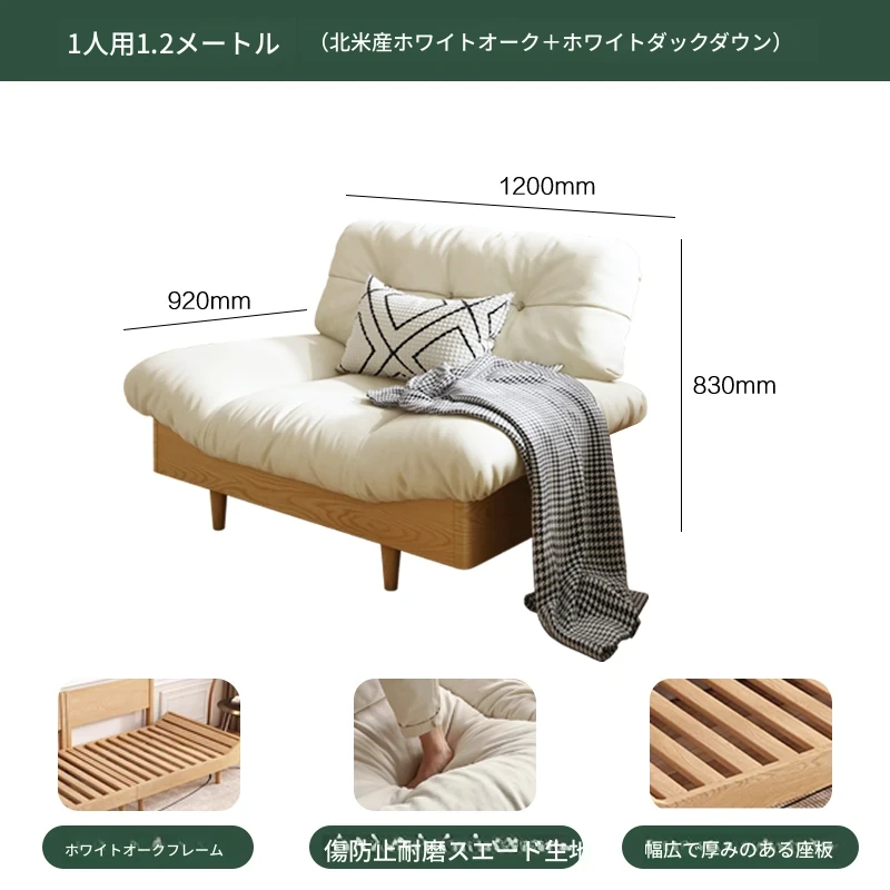 雲のソファ1人用1.2メートル【ホワイトオーク+ホワイトダウン】