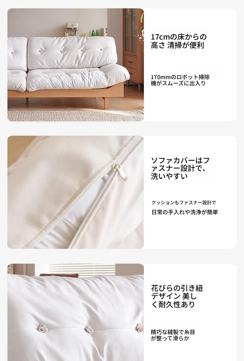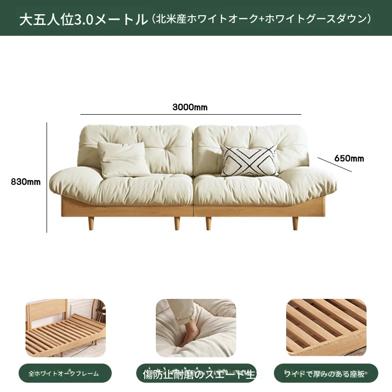 雲のソファ3人用2.1メートル【ホワイトオーク+ホワイトダウン】