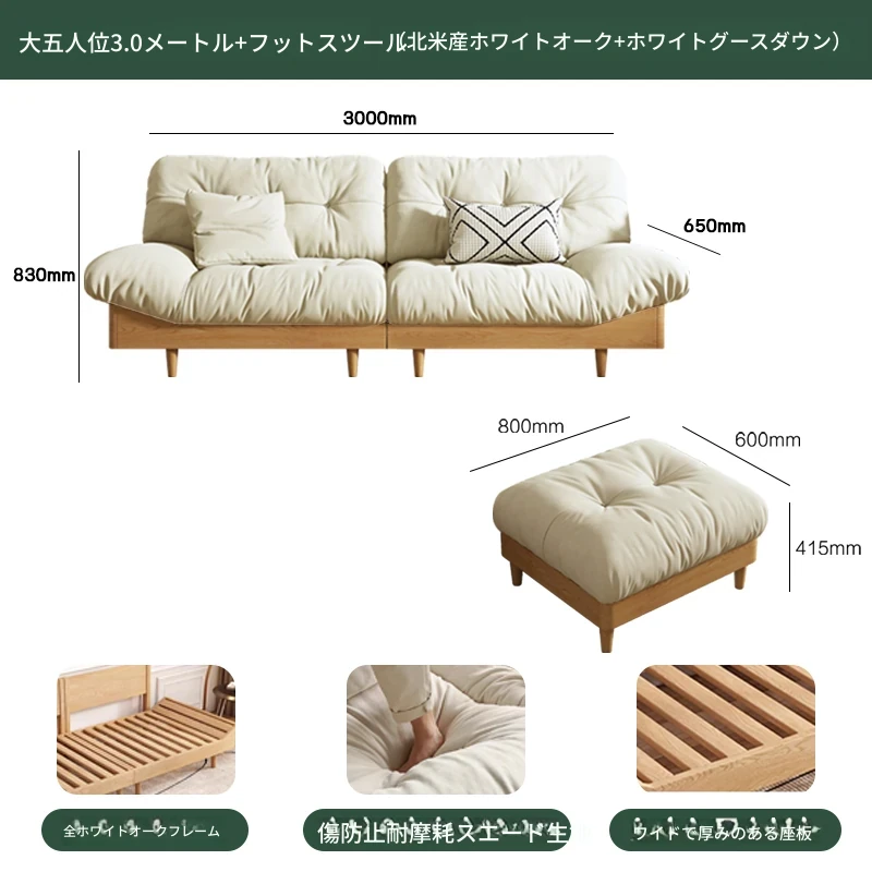 雲のソファ3人用2.1メートル+オットマン【ホワイトオーク+ホワイトダウン】