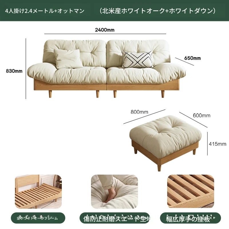 雲のソファ4人用2.4メートル+オットマン【ホワイトオーク+ホワイトダウン】