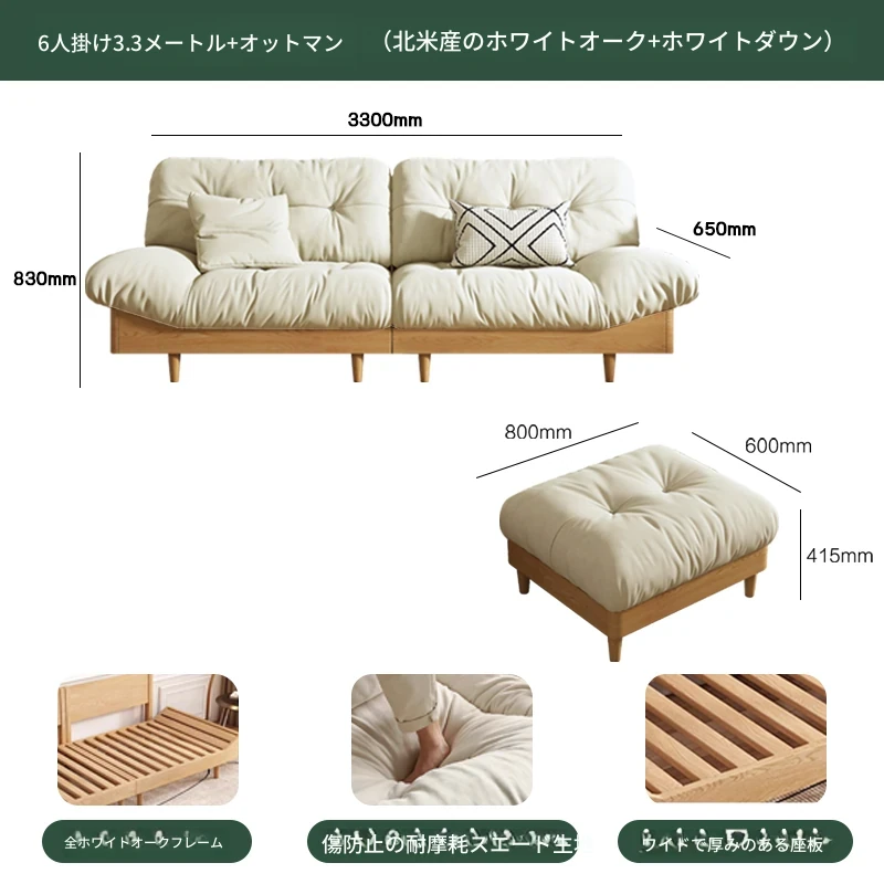 雲のソファ6人用3.3メートル+オットマン【ホワイトオーク+ホワイトダウン】