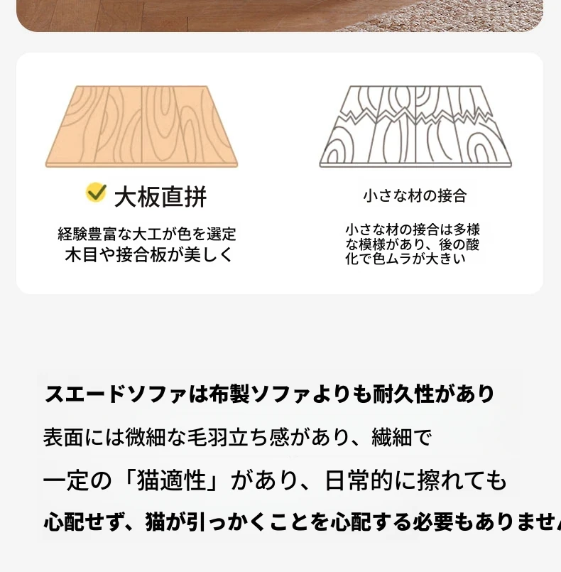 雲のソファの脚部は2.1メートルを超えると分割式で入居が便利です