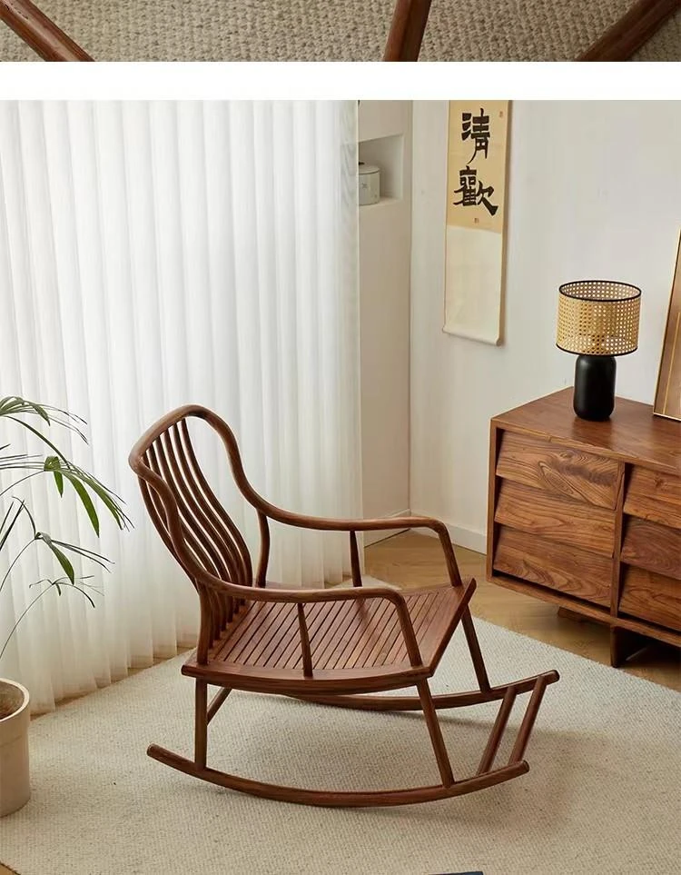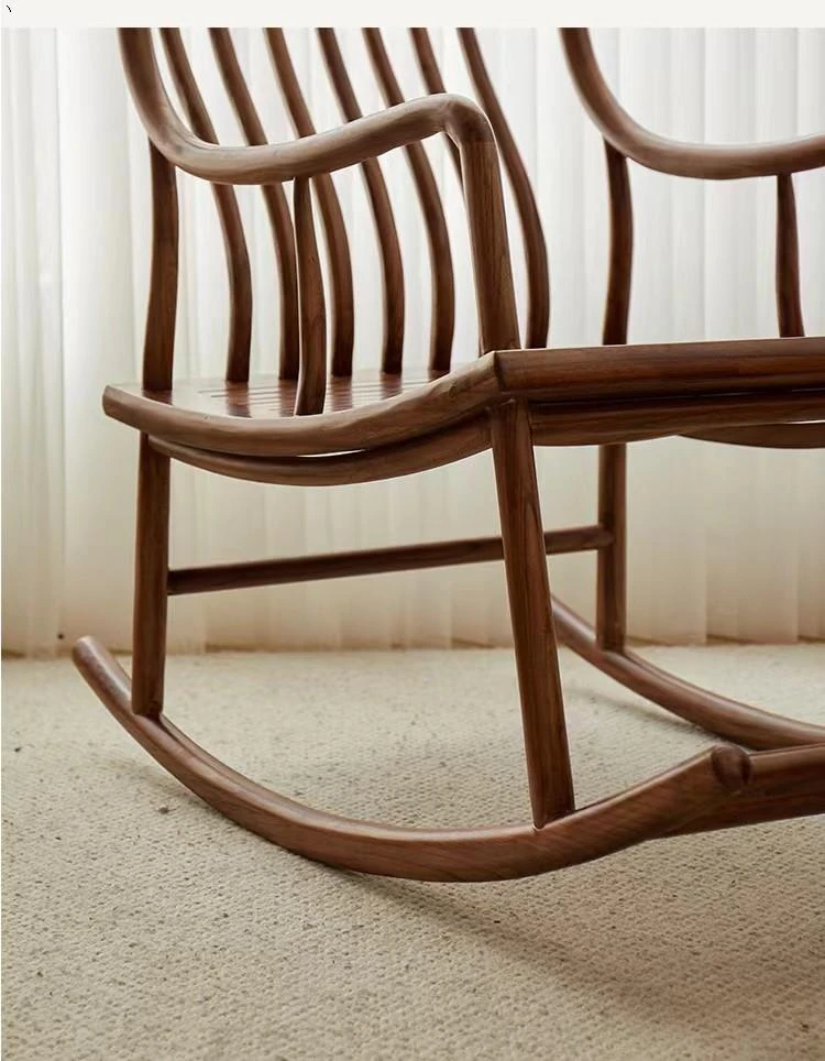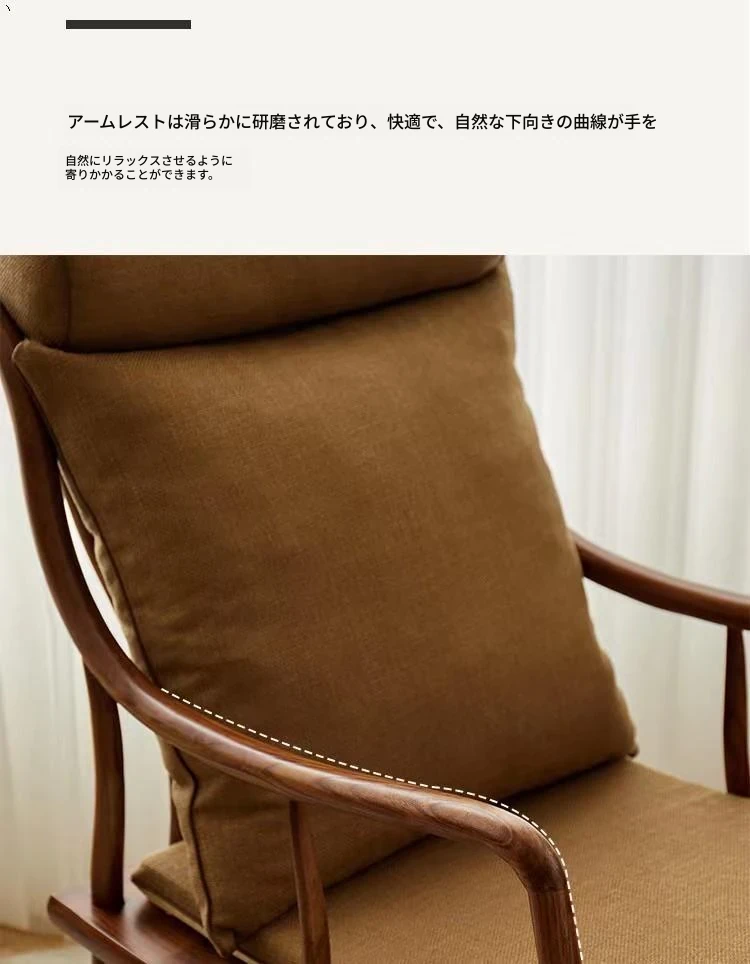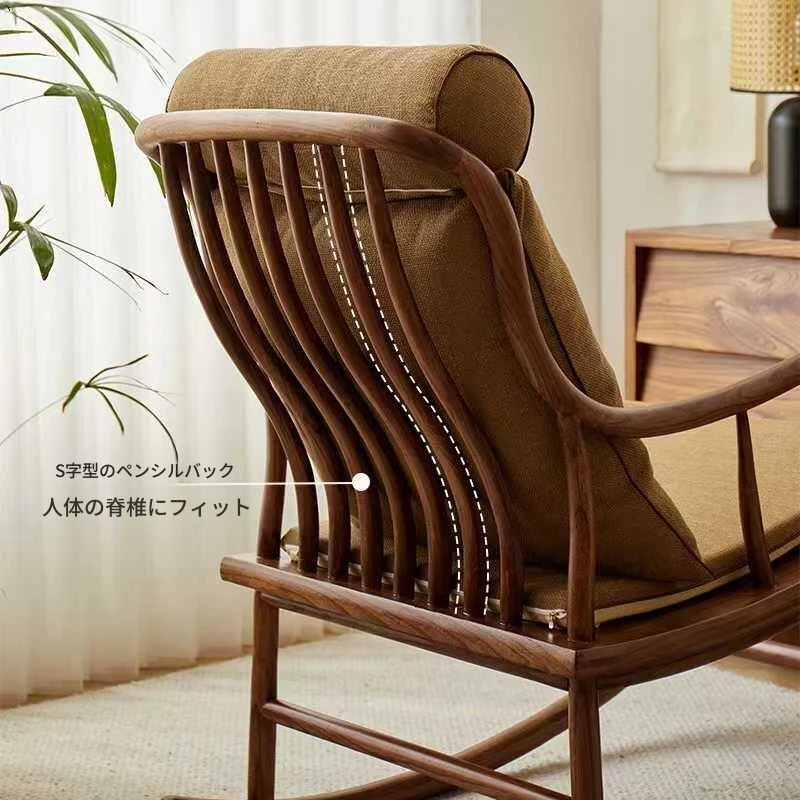 新中式デザインの無垢楡のウィングバックチェア - バルコニーやリビングルームに最適な、くつろぎのひとときを提供するソファ兼リクライニングチェア。民宿にもぴったりな贅沢なラウンジチェアで、昼寝やリラックスタイムをお楽しみください。