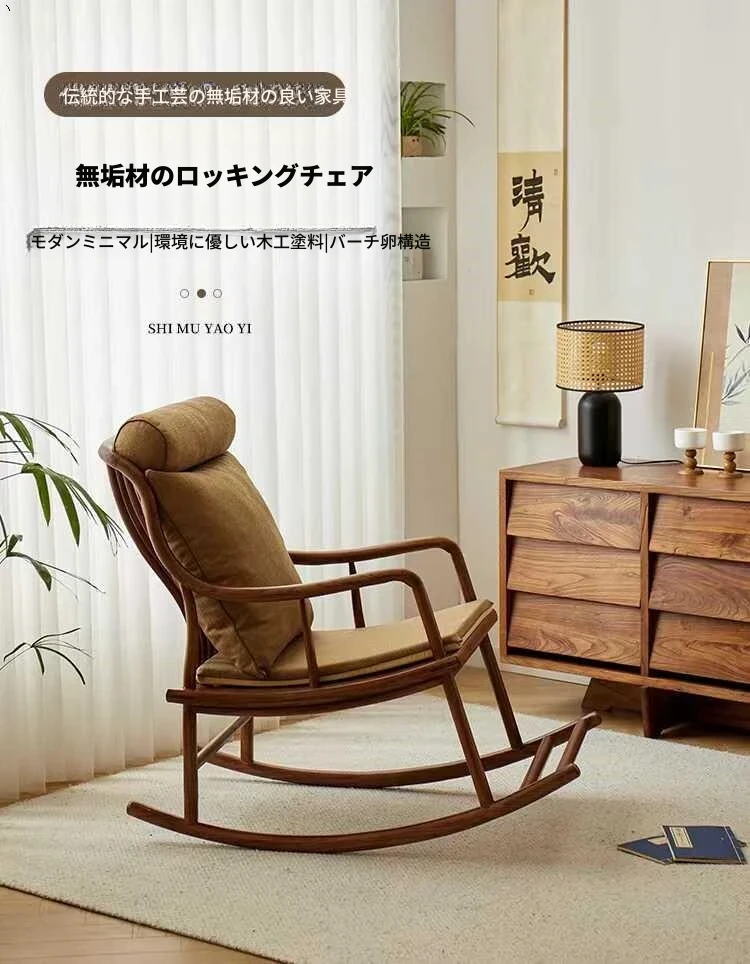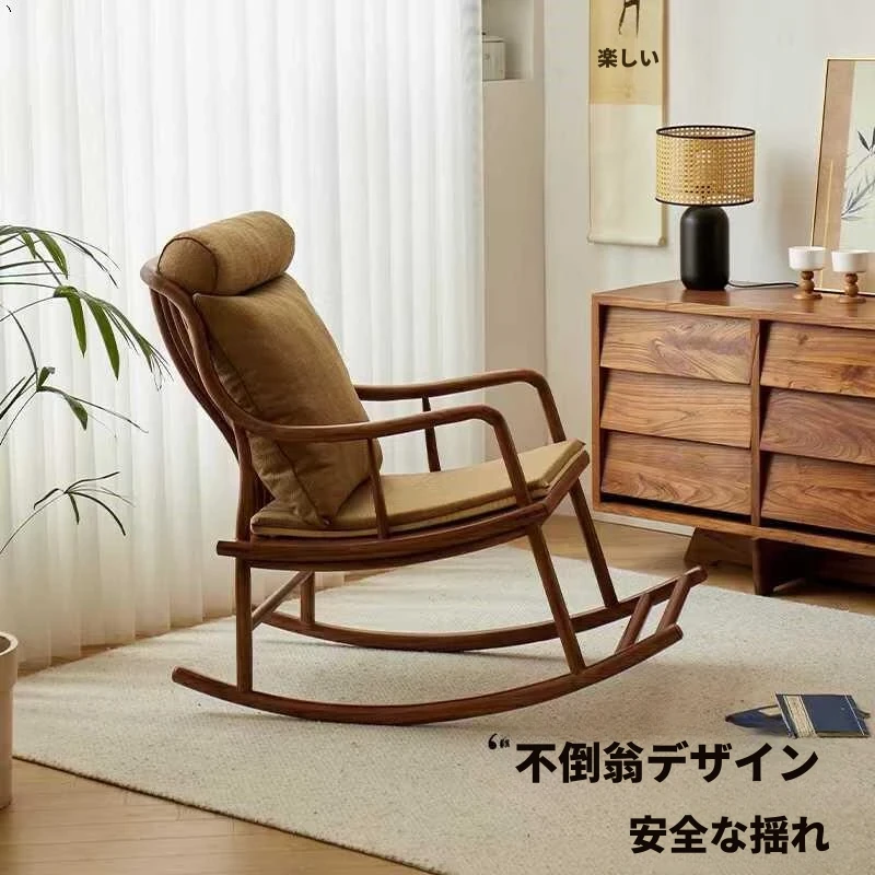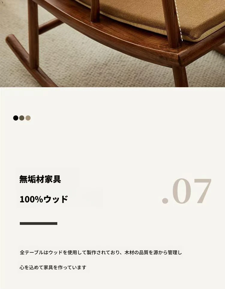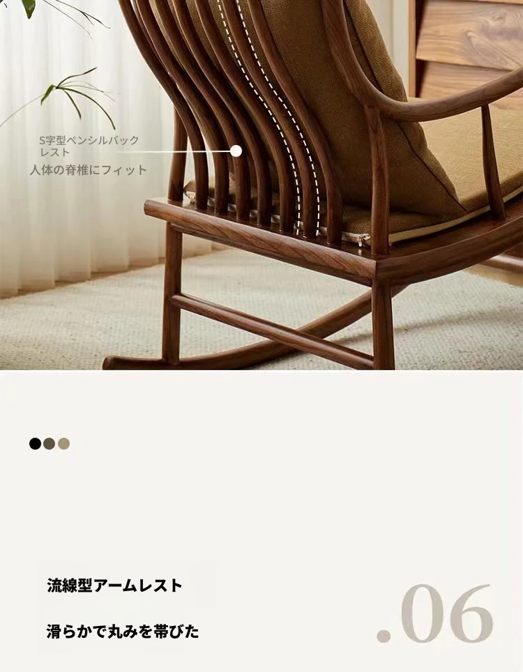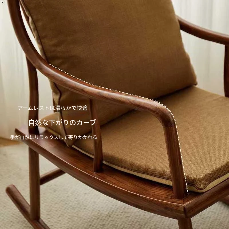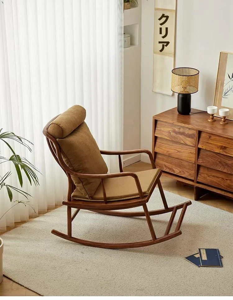 ウルキン材ウォールナット色のロッキングチェア+コーヒー色クッション