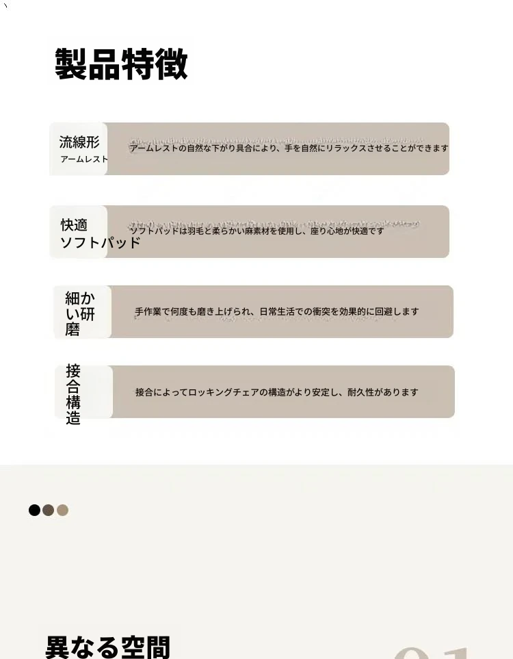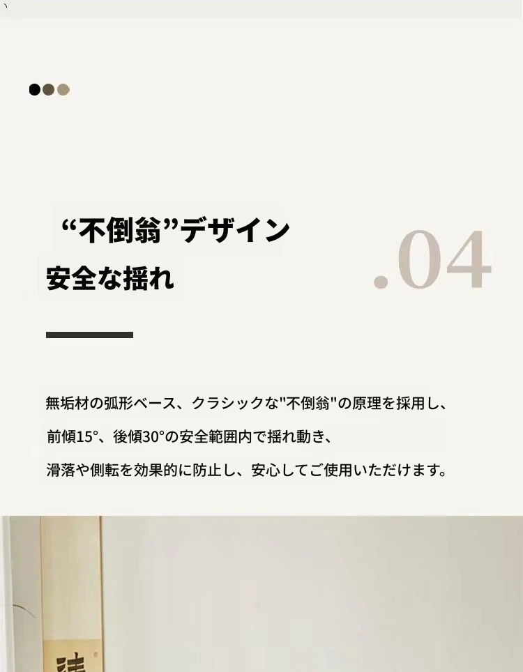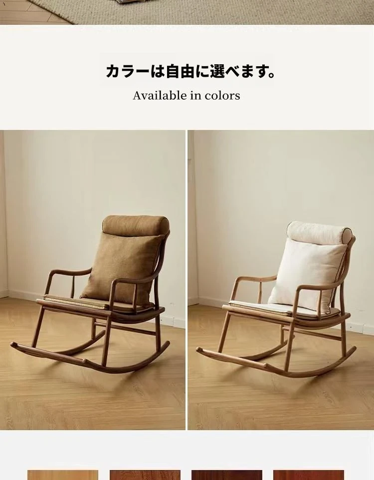 ウルキン材ナチュラル色のロッキングチェア+アイボリー色クッション