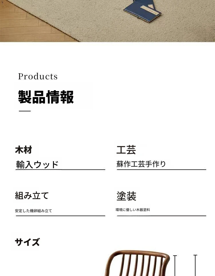 ウルキン材ナチュラル色のロッキングチェア(クッションなし)