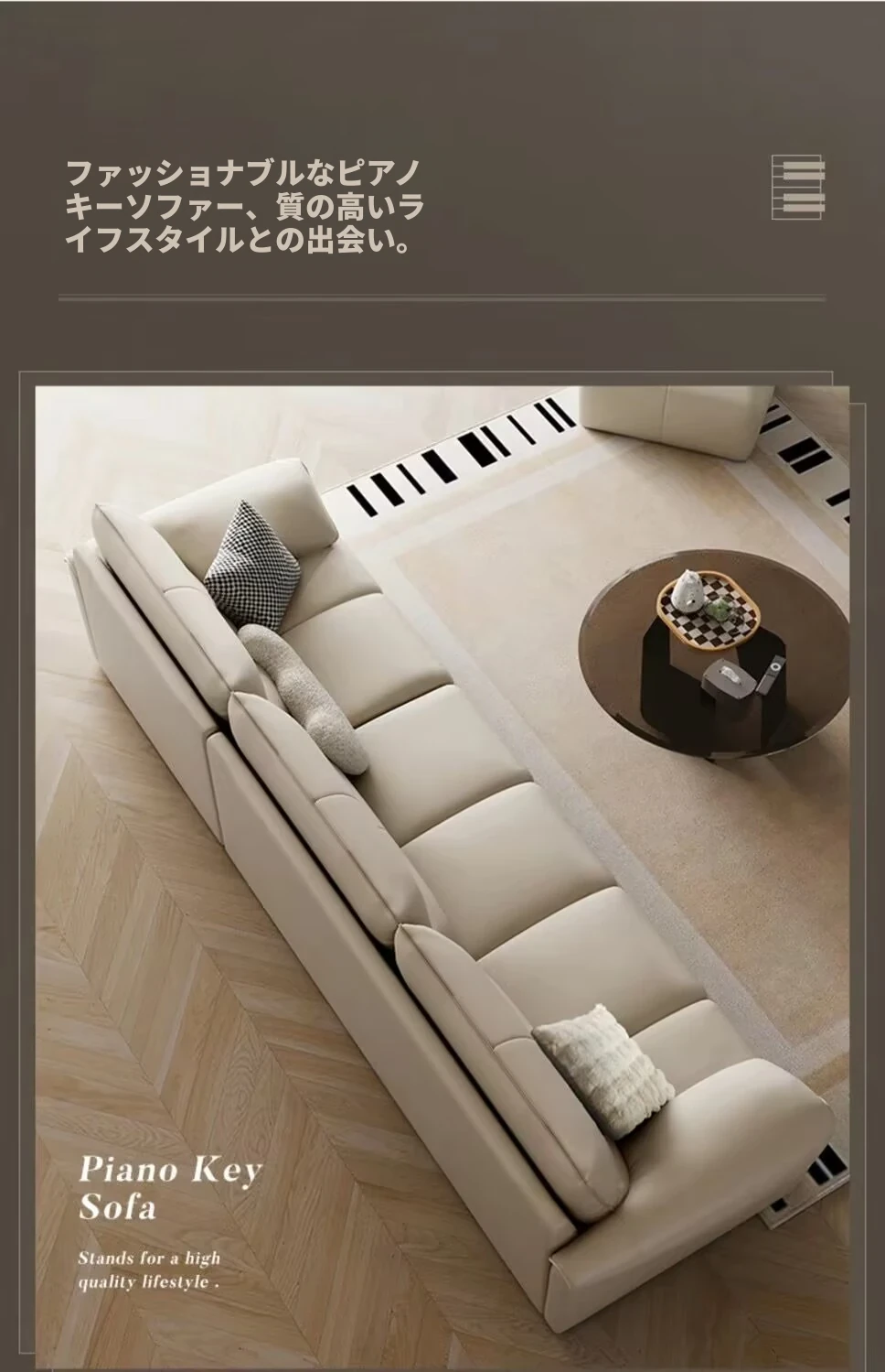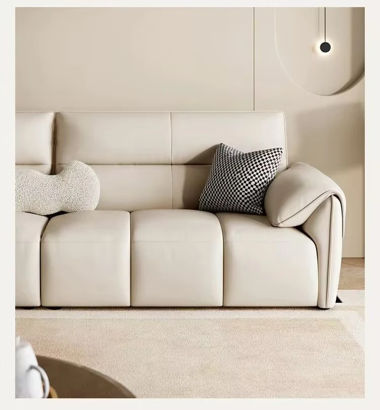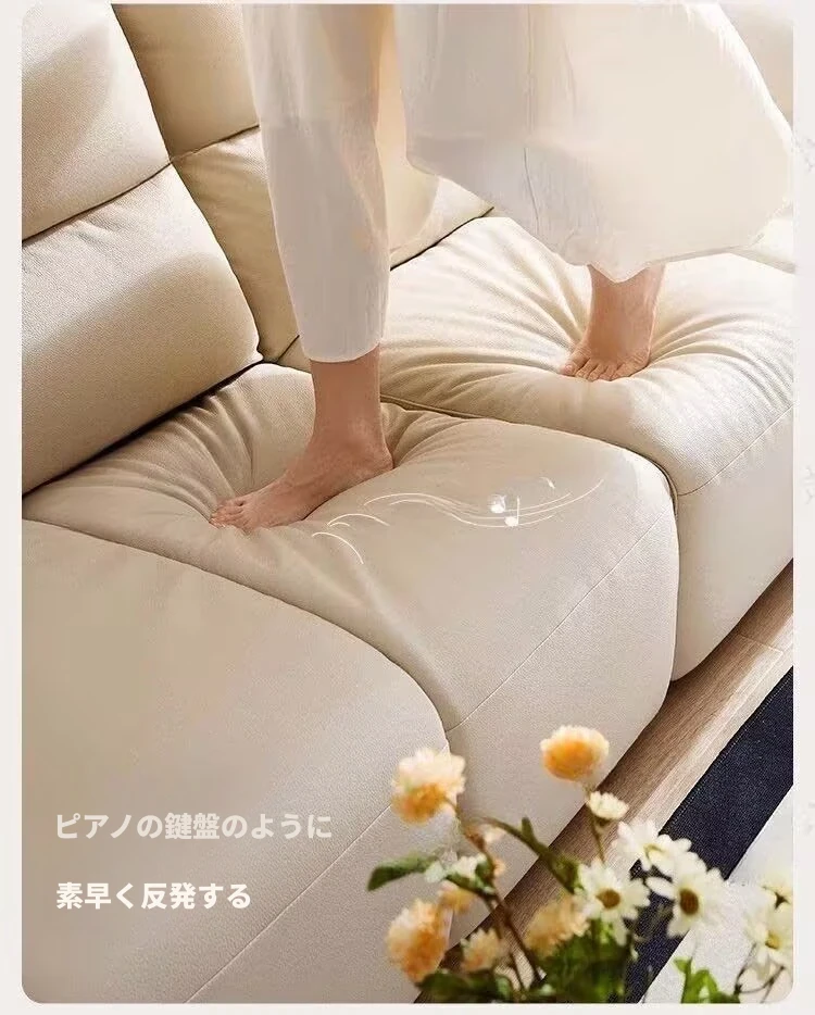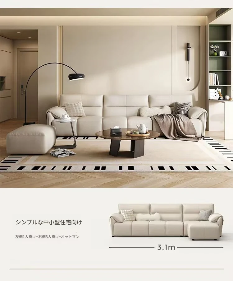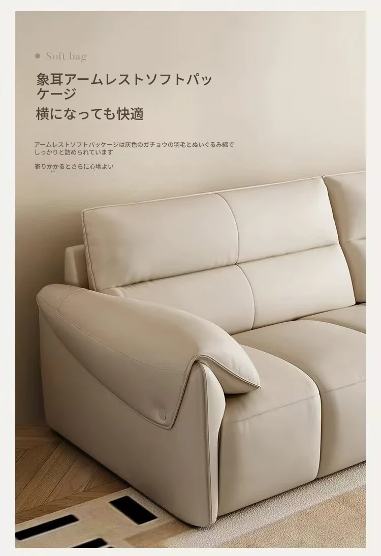 新作!溶剤不使用のリアルレザー製エレファントイヤーソファ - シンプルでおしゃれなリビング向け、クリーム風の小型ピアノキーソファ!快適さとスタイルを兼ね備えたあなたの理想の空間を演出します。