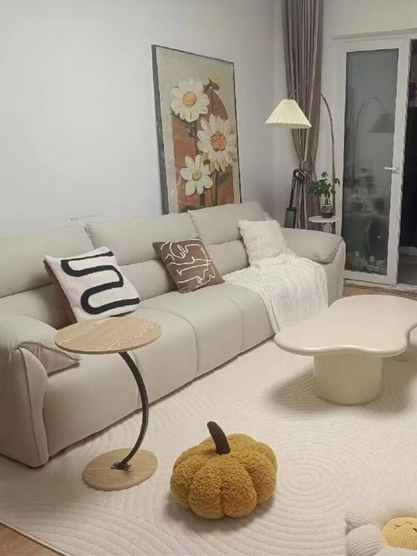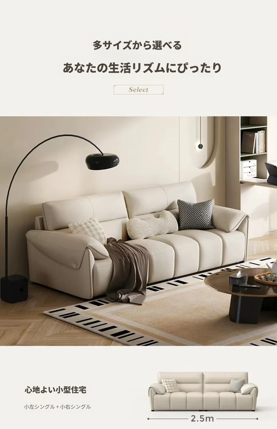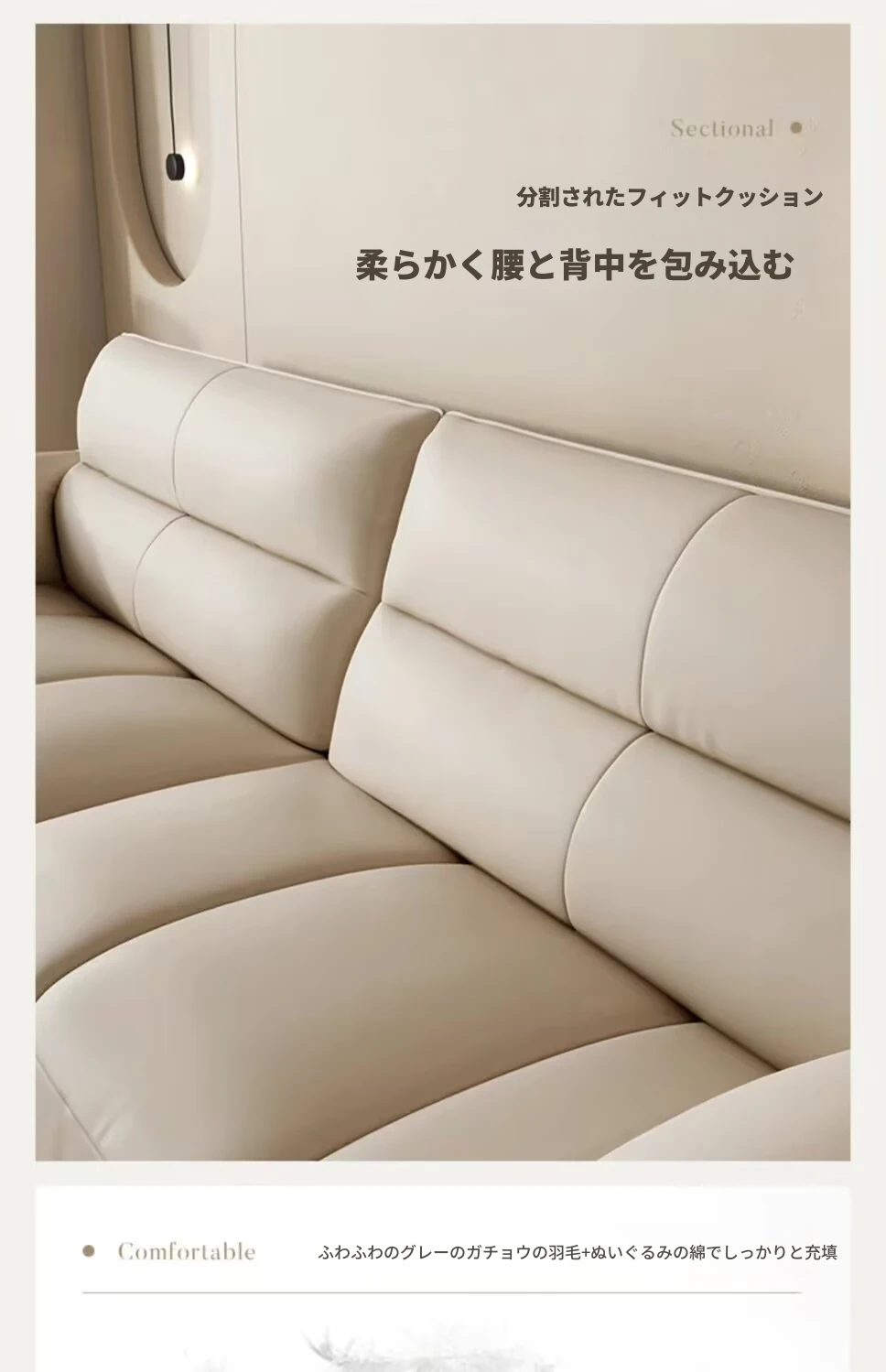 新作!溶剤不使用のリアルレザー製エレファントイヤーソファ - シンプルでおしゃれなリビング向け、クリーム風の小型ピアノキーソファ!快適さとスタイルを兼ね備えたあなたの理想の空間を演出します。