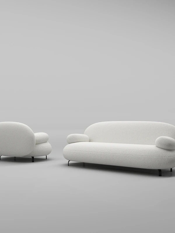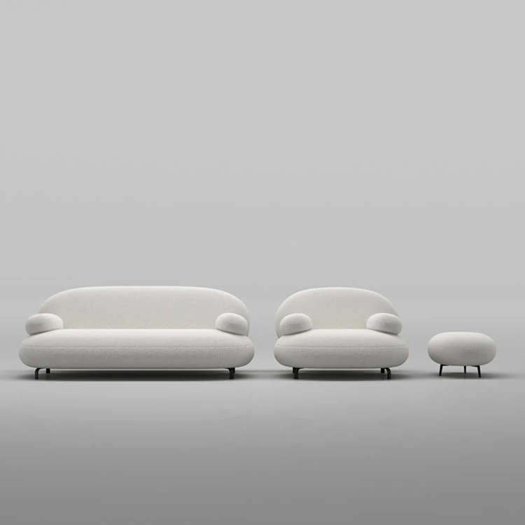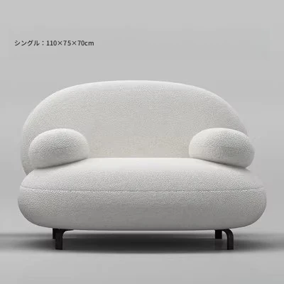 シングルミルクホワイトのラムウールソファ110cm+スツール